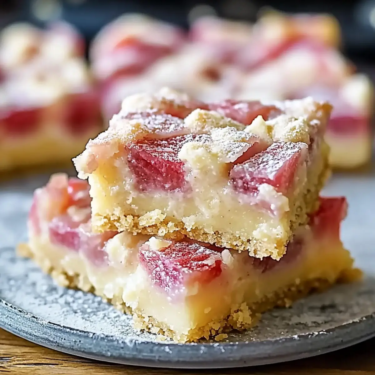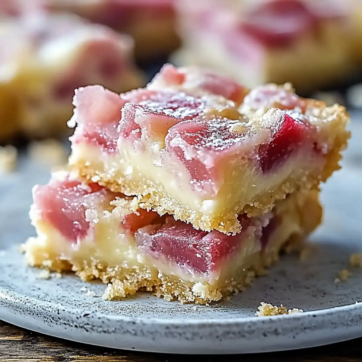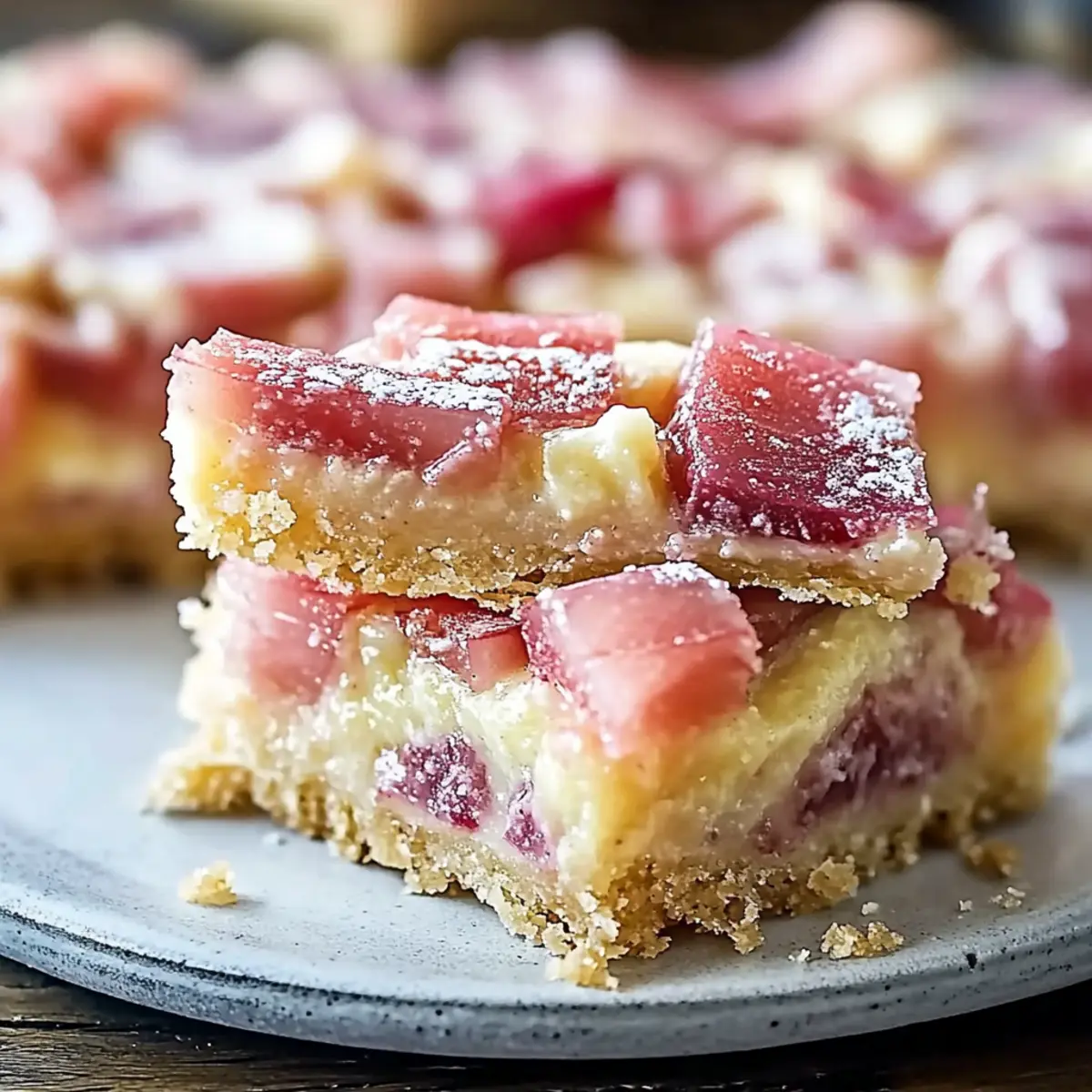 As I lifted the tart, vibrant rhubarb from the garden, the sun warmed my back, and I couldn’t help but feel a surge of inspiration. This ingredient is the star of my Easy Rhubarb Custard Bars! Combining a creamy custard filling with a buttery, crumbly crust, these divine bars are truly a summer delight. Best of all, they come together effortlessly, making them the perfect quick dessert for any occasion, whether it’s a busy weeknight or a delightful gathering with friends. Customizable and make-ahead friendly, you can even use frozen rhubarb if fresh isn’t available. Ready to make something unforgettable? Keep reading to explore all the delicious possibilities! Why You’ll Crave This Recipe? Simplicity, these Rhubarb Custard Bars come together in no time, perfect for busy bakers or those new to the kitchen. Customizable, you can effortlessly adapt this recipe with your favorite fruits or spices, making each batch uniquely yours. Make-Ahead Magic allows you to prepare them a day early, deepening the flavors for a truly delightful treat. Versatile Ingredients mean you can substitute with frozen rhubarb or even enjoy a vegan version, ensuring everyone can indulge. Crowd-Pleasing Flavor combines tangy rhubarb with rich custard, creating a dessert that’s sure to impress at any gathering. If you’re looking for a sweet escape, try these Rhubarb Custard Bars! Rhubarb Custard Bars Ingredients For the Crust • Unsalted Butter – adds richness and flavor to the crust; can substitute with margarine for a dairy-free option. • All-Purpose Flour – binds the crust and filling together; essential for structure. • Granulated Sugar – lightly sweetens the crust; a pinch elevates the flavor. For the Filling • Fresh Rhubarb – delivers a tart kick that balances the creamy custard; frozen rhubarb works well too when thawed. • Granulated Sugar – sweetens the filling and custard; adjust by adding 1/4 cup for a sweeter touch. • Ground Cinnamon – adds warmth and depth to the filling; optional if you prefer a cleaner flavor. • Salt – enhances the overall taste and balances sweetness. For the Custard • Large Eggs – provide richness and structure to the custard; substitute with flax eggs for a vegan version. • Whole Milk – creates a creamy texture in the custard; can swap with almond milk if needed. • Vanilla Extract – infuses lovely flavor into the custard; using vanilla bean intensifies the taste. For the Finishing Touch • Powdered Sugar – for a light dusting over the bars before serving, adding a touch of sweetness; optional but lovely for presentation. These Rhubarb Custard Bars ingredients come together to create a dessert that’s not just delicious, but also customizable! Step‑by‑Step Instructions for Rhubarb Custard Bars Step 1: Preheat and Prepare the Baking Dish Begin by preheating your oven to 350°F (175°C). While the oven warms up, generously grease a 9×13-inch baking dish with butter or cooking spray. This ensures your Rhubarb Custard Bars won’t stick, allowing for easy removal after baking. Step 2: Prepare the Rhubarb Filling In a medium bowl, combine the chopped fresh rhubarb with 1/2 cup of granulated sugar, 1/4 cup of flour, a pinch of salt, and ground cinnamon. Mix these ingredients thoroughly, letting the rhubarb sit while it draws out its natural juices—about 10 minutes. This step enhances the bar’s flavor and texture. Step 3: Whisk the Custard Mixture In a separate mixing bowl, whisk together 1 cup of whole milk, 3 large eggs, the remaining 1/2 cup of granulated sugar, and vanilla extract until smooth and creamy. This custard mixture will provide a rich, velvety filling for your Rhubarb Custard Bars. Set this aside after mixing. Step 4: Make the Crust For the crust, mix 1 cup of all-purpose flour with melted unsalted butter until the mixture resembles coarse crumbs. Press this crumbly dough evenly into the prepared baking dish, forming a solid base for the bars. Make sure it covers the bottom evenly and firmly—this should take about 5 minutes. Step 5: Assemble the Bars Spread the prepared rhubarb mixture evenly over the crust in the baking dish. Then, gently pour the custard mixture over the rhubarb layer, ensuring it settles well. This creates a beautiful layered effect for your Rhubarb Custard Bars that bakes to perfection, so take care to distribute it evenly. Step 6: Bake to Perfection Place the baking dish in the preheated oven and bake for 40 to 45 minutes. The bars are done when the custard is set and the top is lightly golden brown. Keep an eye on them towards the end of the baking time to prevent overcooking. You’re looking for a slight jiggle in the center when done. Step 7: Cool and Serve Once baked, remove the Rhubarb Custard Bars from the oven and allow them to cool completely in the pan on a wire rack. This cooling period is crucial for firming up the bars, making them easier to slice into squares. Patience will yield beautiful results when you’re ready to serve! How to Store and Freeze Rhubarb Custard Bars Fridge: Store your Rhubarb Custard Bars in an airtight container in the refrigerator for up to 3 days to maintain freshness. Freezer: For longer storage, wrap the bars tightly in plastic wrap and then in aluminum foil; they will keep well in the freezer for up to 2 months. Reheating: Thaw the bars in the fridge overnight, then reheat in a 350°F (175°C) oven for about 10 minutes for that fresh-out-of-the-oven experience. Serving Tip: Dust with powdered sugar just before serving for an elegant touch. Rhubarb Custard Bars Variations & Substitutions Feel free to unleash your creativity with these delightful Rhubarb Custard Bars! Each variation offers a unique twist to help you craft a dessert that’s truly your own. Lemon Zest: Add a teaspoon of lemon zest to the custard for a refreshing citrusy brightness that elevates the flavors beautifully. The zest perfectly complements the tartness of the rhubarb. Berry Bo