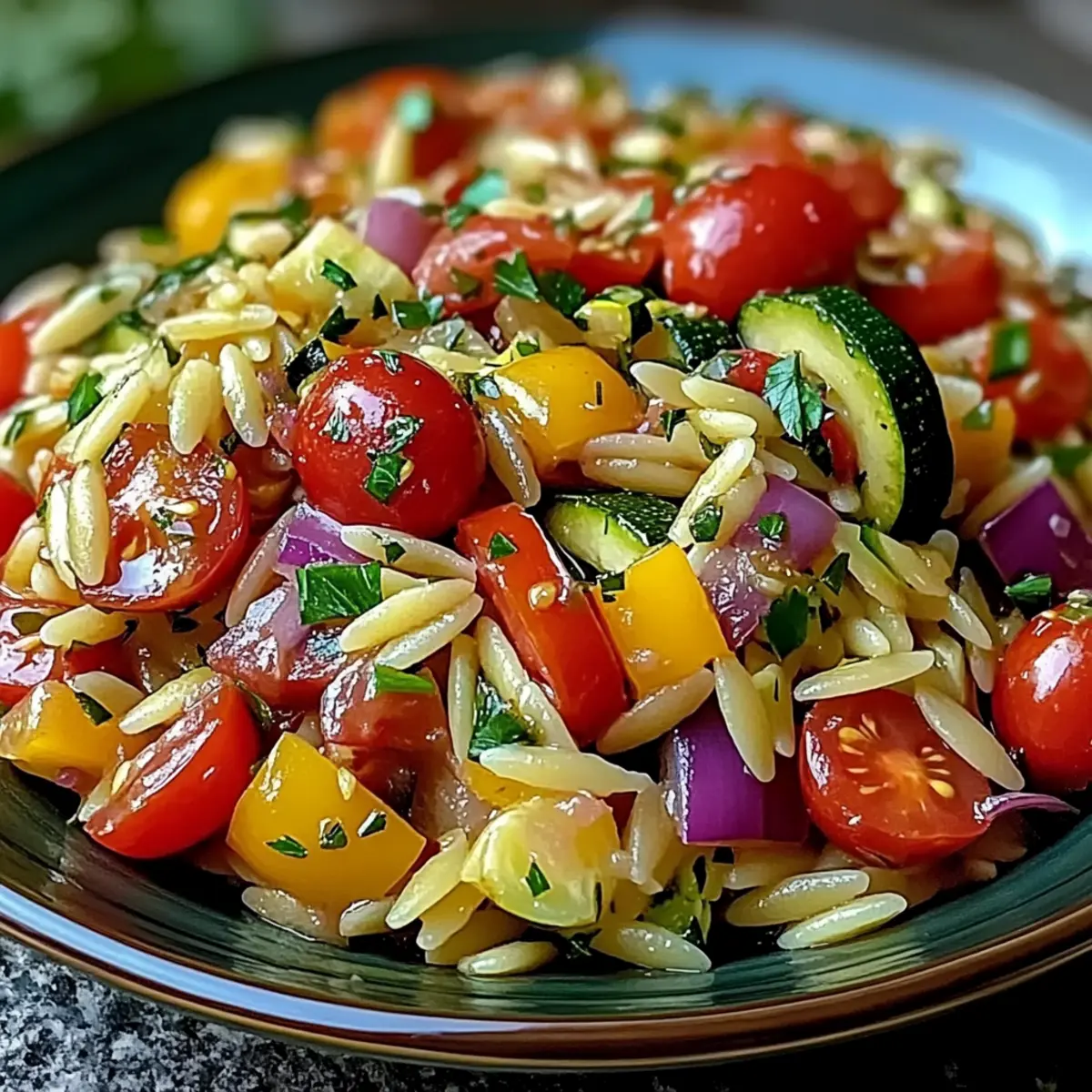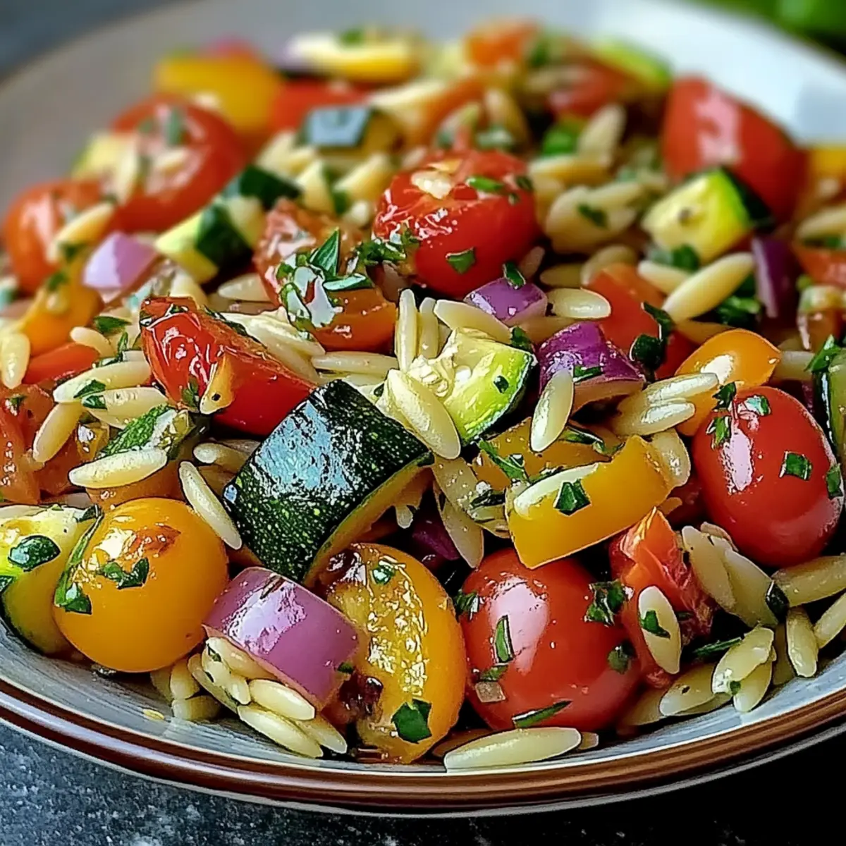 As I stood in my kitchen, the aroma of roasting vegetables began to fill the air, instantly conjuring warm memories of family dinners and laughter. That’s when I knew it was time to whip up a batch of Roasted Vegetable Orzo. This vibrant dish features tender orzo pasta mingling beautifully with an array of caramelized veggies, creating a culinary masterpiece that’s both comforting and nourishing. One of the best perks? It can be served warm, chilled, or at room temperature, making it a versatile choice for any occasion. Plus, it caters to vegetarian, vegan, and gluten-free diets without sacrificing taste. Are you curious to discover how to bring this colorful pasta salad to life in your own kitchen? Why is Roasted Vegetable Orzo a Must-Try? Vibrant, Flavorful Dish: The stunning colors and flavors of roasted vegetables make this orzo truly pop on your plate. Versatile Serving Options: Whether warm, chilled, or at room temperature, it’s perfect for any gathering or meal. Diet-Friendly: Easily adaptable for vegetarian, vegan, and gluten-free diets. You can also add chickpeas or olives for an extra protein boost or pair it with options like Hearty Olive Garden Inspired Vegetable Soup for a complete meal. Make-Ahead Friendly: You can prepare it ahead of time! The flavors deepen when chilled, making it even more delightful. Crowd-Pleasing Comfort: It’s a dish everyone will love, making it a great choice for family dinners or picnics! Roasted Vegetable Orzo Ingredients • Dive into a delightful dish that’s simple to prepare! For the Orzo Dry Orzo Pasta – This is the base of the dish; feel free to substitute with gluten-free orzo, rice, or quinoa. For the Vegetables Zucchini (1 small, diced) – Adds great moisture and texture; can substitute with yellow squash for a twist. Red Bell Pepper (1, chopped) – Brings sweetness and rich color; swap with orange or yellow bell pepper if preferred. Yellow Bell Pepper (1, chopped) – Enhances sweetness; you can either omit or increase the red bell pepper. Cherry Tomatoes (1 cup, halved) – Infuses juicy freshness; you can use regular or sun-dried tomatoes as alternatives. Red Onion (½, sliced) – Contributes a sharp depth of flavor; substitute with shallots or green onions for variation. For Roasting Olive Oil (2 tbsp) – Essential for roasting the vegetables; try avocado oil for a different flavor dimension. Dried Italian Herbs (1 tsp) – Imparts a herbal flavor; feel free to use oregano or thyme as alternatives. Salt and Black Pepper – Add seasoning to taste. For Finishing Touches Lemon Juice (1 tbsp) – This adds a bright zing to the dish. Fresh Parsley (2 tbsp, chopped) – Provides a fresh finish; basil or cilantro can be great substitutes. Optional Cheese (Feta/Grated Parmesan) – Enhances creaminess for those who aren’t vegan; omit for a dairy-free version or replace with dairy-free alternatives. This Roasted Vegetable Orzo is not just a recipe; it’s a heartwarming dish that speaks to the joy of home cooking! Step‑by‑Step Instructions for Roasted Vegetable Orzo Step 1: Preheat the Oven Begin by preheating your oven to 425°F (220°C). While it heats, grab a baking sheet and line it with parchment paper to prevent the vegetables from sticking. This ensures even roasting and makes cleanup a breeze, so you can focus on getting the wonderful aroma of the Roasted Vegetable Orzo started right away. Step 2: Prepare the Vegetables In a large mixing bowl, combine the diced zucchini, chopped red and yellow bell peppers, halved cherry tomatoes, and sliced red onion. Drizzle with olive oil, then sprinkle with dried Italian herbs, salt, and black pepper to taste. Toss everything together until well coated, then spread the mixture evenly on the prepared baking sheet, creating a colorful base for your dish. Step 3: Roast the Vegetables Place the baking sheet in the preheated oven and roast the vegetables for 20–25 minutes. Stir the mixture halfway through for even cooking. You’ll know they are done when the vegetables are tender, slightly caramelized, and bursting with color. These caramelized treasures will elevate the flavors in your Roasted Vegetable Orzo to new heights! Step 4: Cook the Orzo While the vegetables are roasting, bring a large pot of salted water to a boil. Add the dry orzo pasta and cook according to package directions until it’s al dente, usually about 8-10 minutes. Once cooked, drain the orzo in a colander and set it aside. The tender orzo will serve as a perfect canvas for the vibrant roasted vegetables. Step 5: Combine Ingredients In a large mixing bowl, combine the drained orzo and the freshly roasted vegetables. Squeeze in the lemon juice for a bright, zesty flavor and add the chopped parsley for freshness. Gently toss everything together until the orzo is evenly coated with the roasted vegetables. This step is where the magic happens as you create your delightful Roasted Vegetable Orzo. Step 6: Serve and Enjoy If desired, sprinkle with feta or grated Parmesan cheese for added creaminess. Taste the Roasted Vegetable Orzo and adjust seasoning with more salt and pepper if needed. This dish can be served warm, chilled, or at room temperature, making it perfect for any occasion. Prepare to enjoy a delightful meal that’s both comforting and nourishing! Make Ahead Options Preparing Roasted Vegetable Orzo in advance is a fantastic way to save time on busy weeknights! You can roast the vegetables up to 24 hours ahead and store them in the refrigerator in an airtight container. Just make sure they cool completely before sealing to prevent moisture buildup. Similarly, you can cook the orzo up to 3 days in advance; keep it refrigerated as well. When you’re ready to serve, simply combine the roasted vegetables with the orzo, add lemon juice and parsley, and mix gently. The flavors will be just as delicious, and your Roasted Vegetable Orzo will come together effortlessly, making the mealtime experience all the 