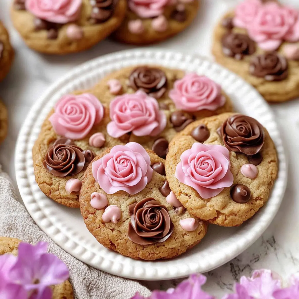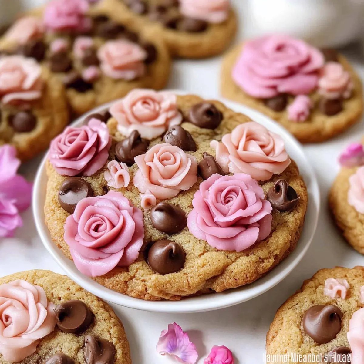 As I sifted through my pantry, I stumbled upon a delicate bottle of rose extract, and a wave of inspiration hit me like a sweet fragrance wafting through a summer garden. That’s how the idea for these Rose Chocolate Chip Cookies was born—a beautiful twist on a beloved classic that marries the warmth of chocolate with an unexpected floral charm. With soft, chewy centers and lightly crispy edges, each cookie is a perfect treat for anyone craving something unique and delightful. Not only are these cookies quick to prepare, but they also add a touch of elegance to any dessert table, making them ideal for gatherings or a cozy night in. Are you ready to bring this enchanting blend of flavors into your kitchen? Why are Rose Chocolate Chip Cookies special? Unique Floral Flavor: These cookies feature rose extract, creating a delightful twist on traditional chocolate chip cookies. Irresistible Texture: Each bite boasts a perfect balance of soft, chewy centers and crispy edges, elevating your cookie experience. Simple Preparation: You’ll love how quick and easy these are to make—perfect for both novice and experienced bakers alike! Elegant Presentation: With adorable chocolate roses topping each cookie, they look stunning on any dessert platter, impressing your guests. Versatile Base: Feel free to experiment by swapping rose extract for other floral flavors or adding nuts for extra crunch. These Rose Chocolate Chip Cookies might just steal the spotlight at your next gathering, alongside other favorites like Chocolate Chip Cookies and Decadent Chocolate Peanut treats! Rose Chocolate Chip Cookies Ingredients • For the Cookie Dough All-purpose flour – Provides structure to the cookies, and can be substituted with a gluten-free flour blend if desired. Baking soda – Acts as a leavening agent for a light texture; ensure it is fresh for optimal results. Baking powder – A supplementary leavening agent for added fluffiness; can be omitted if baking soda is sufficient. Salted butter – Adds richness and flavor; unsalted butter can be used for better control over saltiness. Granulated sugar – Provides sweetness and helps achieve crisp edges; coconut sugar is a great lower glycemic index alternative. Light brown sugar – Contributes moisture and a slight chew to the cookies; using all brown sugar deepens the flavor. Large egg – Binds ingredients and adds moisture; a flax egg is perfect for a vegan version. Rose extract – Infuses the cookies with a unique floral flavor; rose water can work as a substitute, just adjust the amount to your taste. Semisweet chocolate chips – Adds sweetness and richness; dark chocolate chips are fantastic for a less sweet option. Rose chocolate chips – An optional decorative element for visual appeal; these can be omitted if unavailable. Step‑by‑Step Instructions for Rose Chocolate Chip Cookies Step 1: Preheat and Prepare Preheat your oven to 350°F (180°C) and line two baking sheets with parchment paper. This will prevent the cookies from sticking and ensure even baking. As the oven warms up, get your mixing bowls and measuring cups ready for a smooth cookie-making process you’ll love! Step 2: Mix the Dry Ingredients In a medium bowl, whisk together the all-purpose flour, baking soda, and baking powder. Set this dry mixture aside as you prep the wet ingredients. This step ensures the leavening agents are evenly distributed, setting the stage for the perfect texture in your Rose Chocolate Chip Cookies. Step 3: Cream the Butter and Sugars In a large mixing bowl, beat the softened salted butter with granulated sugar and light brown sugar using an electric mixer until the mixture is light and fluffy, about 2-3 minutes. This incorporates air and creates that delightful chewy texture. You’ll know it’s ready when it looks pale and creamy. Step 4: Incorporate the Wet Ingredients Add the large egg and rose extract to the butter-sugar mixture, mixing until fully combined. The floral aroma will begin to fill your kitchen, adding excitement to the anticipation of those flavorful Rose Chocolate Chip Cookies. Ensure everything is blended smoothly to create a harmonious dough. Step 5: Combine Wet and Dry Ingredients Gradually add the dry mixture into the wet mixture, folding them together with a spatula until just combined. Be careful not to overmix, as this can lead to denser cookies. Your dough should come together beautifully, with just a hint of flour still visible. Step 6: Add the Chocolate Chips Gently fold in the semisweet chocolate chips and optional rose chocolate chips, distributing them evenly throughout the dough. This mixture is what will make your Rose Chocolate Chip Cookies delightfully indulgent, so take time to ensure each cookie will have that sweet burst of chocolate. Step 7: Form the Cookies Using a cookie scoop or two tablespoons, scoop out portions of dough and place them onto the prepared baking sheets, leaving about 2 inches between each cookie. This gives them room to spread beautifully in the oven, ensuring that each Rose Chocolate Chip Cookie has space to bloom into perfection. Step 8: Bake the Cookies Bake in the preheated oven for 8-10 minutes until the edges turn golden brown. You’ll want to keep an eye on them as they bake to achieve the perfect texture—soft centers with slightly crispy edges, creating that irresistible contrast we all crave in cookies. Step 9: Decorate the Cookies As soon as you remove the cookies from the oven, press a chocolate rose onto the top of each cookie while they are still warm. This will help them set beautifully and adds an elegant touch to your Rose Chocolate Chip Cookies, transforming them into a special treat. Step 10: Cool the Cookies After adding the chocolate roses, let the cookies cool on the baking sheets for a few minutes before transferring them to a wire rack. This process allows the cookies to set perfectly and ensures the chocolate roses stay in place while adding an enticing visua