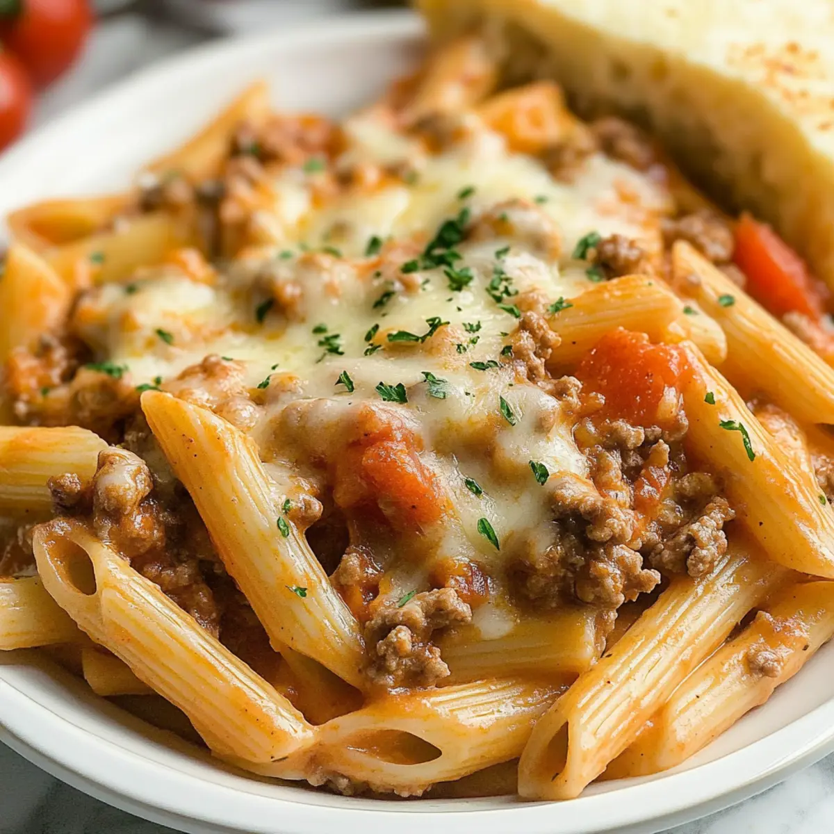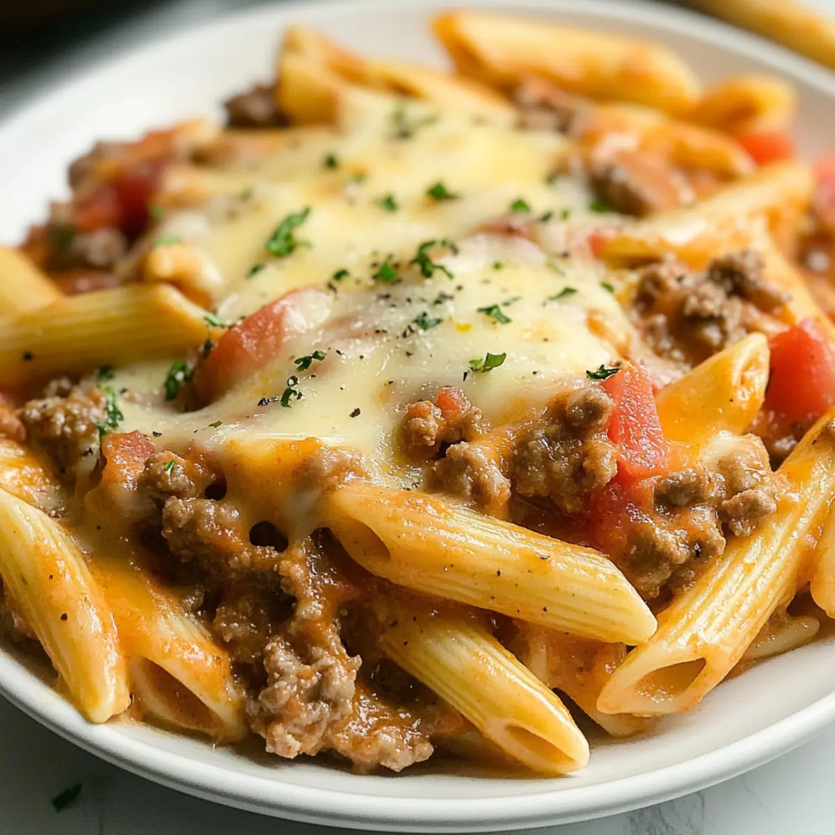 The aroma of ground beef sizzling away, paired with the lively tang of Rotel tomatoes, transports me to a cozy kitchen late on a Sunday afternoon. This Rotel Pasta with Creamy Cheese Sauce has become a staple for its effortless warmth and comforting flavors. Ready in under 30 minutes, this one-skillet meal is perfect for those busy nights when you just want to unwind and enjoy a satisfying dish without the fuss. Plus, with its creamy texture and mild spice, it’s sure to please even the pickiest eaters at your table. So why not grab your favorite pasta and dive into this delicious recipe? You might just discover your new family favorite! Why is Rotel Pasta a Must-Try? Comforting Warmth: The creamy cheese sauce envelops the pasta and beef in a rich hug that’s perfect for chilly evenings. One-Skillet Convenience: Minimal cleanup is required, making it ideal for busy weeknights or last-minute gatherings. Endless Flavor: The combination of Rotel tomatoes and spices creates a delightful taste profile that’s anything but boring. Customizable Options: Want it vegetarian? Try ground turkey! Prefer more heat? Just toss in jalapeños! Quick & Satisfying: Ready in under 30 minutes, this dish is both delicious and time-saving, making it perfect for any schedule. Rotel Pasta Ingredients For the Pasta • Penne Pasta – The base of the dish; opt for gluten-free pasta for a healthier choice. • Olive Oil – Used for sautéing; substitute with any neutral oil if needed. For the Meat • Lean Ground Beef – Adds protein and flavor; ground turkey or chicken are great lighter alternatives. • Yellow Onion – Brings sweetness; shallots can be used for a milder taste. • Garlic – Enhances flavor; freshly minced garlic is recommended for the best taste. For the Sauce • Rotel Diced Tomatoes with Green Chilies – Provides spice and acidity; any canned diced tomatoes works if spice is balanced. • Beef Broth – Adds richness; use vegetable broth for a vegetarian option. • Heavy Cream – Creates creaminess; half-and-half or a plant-based cream works well too. • Cream Cheese – Contributes to the creamy texture; Neufchâtel is a lower-fat option. • Worcestershire Sauce – Adds umami; choose vegan Worcestershire for plant-based diets. • Chili Powder – Provides heat; adjust according to your preferred spice level. • Smoked Paprika – Elevates the flavor with a smoky note; regular paprika or cumin can substitute. • Garlic Salt – Enhances overall seasoning; regular salt with extra minced garlic is a quick workaround. • Ground Cumin – Offers an earthy flavor; omit if you’re avoiding spices. • Black Pepper – For seasoning; adjust to your taste. For the Finish • Shredded Cheddar Cheese – Enhances creaminess and flavor; try Monterey Jack or Pepper Jack for a twist. • Fresh Chopped Cilantro or Parsley – Ideal for garnish; leave out if there are allergies. Step‑by‑Step Instructions for Rotel Pasta Step 1: Cook Pasta Begin by bringing a large pot of salted water to a boil. Add the penne pasta and cook according to the package instructions until al dente, which usually takes about 10-12 minutes. Once done, drain the pasta and set it aside, allowing any excess water to drip off while you prepare the rest of your creamy Rotel pasta dish. Step 2: Brown Beef In a large skillet, heat 1 tablespoon of olive oil over medium-high heat until shimmering. Add the ground beef along with the diced yellow onion. Cook this mixture for about 5-7 minutes, stirring frequently, until the beef is browned and the onions are translucent. This step builds a savory base for your Rotel pasta, so keep an eye on the color change! Step 3: Add Garlic Once the beef and onions are cooked through, add 2-3 cloves of minced garlic to the skillet. Stir it in and cook for about 1 minute until fragrant. You’ll know it’s ready when the garlic releases its aromatic scent, filling the kitchen with a warm, inviting aroma that sets the stage for your delicious creamy sauce. Step 4: Make Sauce Next, pour in the undrained Rotel diced tomatoes and 1 cup of beef broth, followed by the heavy cream and cream cheese. Add 1 tablespoon of Worcestershire sauce, 1-2 teaspoons of chili powder, 1 teaspoon of smoked paprika, and a pinch of garlic salt, cumin, and black pepper. Allow this mixture to simmer on medium heat for about 5 minutes, stirring occasionally until the cream cheese has fully melted and the sauce is well blended. Step 5: Add Cheese Reduce the heat to low, then stir in 1-2 cups of shredded cheddar cheese. Mix until the cheese has melted and the sauce becomes creamy and smooth. This step transforms your sauce into the delightful, cheesy coating that will envelop your pasta, making your Rotel pasta indulgently rich. Step 6: Combine Pasta Carefully add the cooked penne pasta into the sauce mixture in the skillet. Toss everything together until the pasta is generously coated with the creamy sauce. The combination of flavors should meld beautifully, and you’ll see the pasta absorbing that delicious sauce, creating a comforting, hearty meal. Step 7: Serve To finish off your Rotel pasta, garnish with fresh chopped cilantro or parsley for a pop of color and added flavor. Serve the dish hot right from the skillet, and enjoy this comforting one-skillet meal that’s perfect for cozy nights or gatherings with loved ones. Rotel Pasta: Endless Variations Await! Feel free to let your creativity flow and customize this delightful recipe to suit your family’s taste buds or dietary preferences! Vegetarian: Swap out the ground beef for a plant-based meat alternative like Beyond Meat for a delicious vegetarian delight. Gluten-Free: Use gluten-free penne pasta for an equally satisfying dish suitable for those avoiding gluten. Creamy & Spicy: Add diced jalapeños for an extra kick that will tantalize your taste buds; the creaminess offsets the heat beautifully. Cheesy Twist: Mix in a blend of cheeses such as Monterey