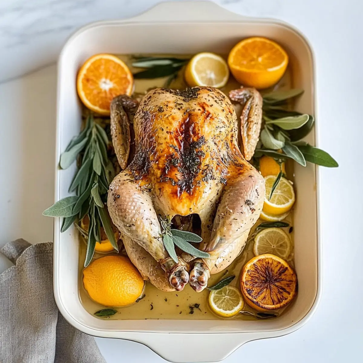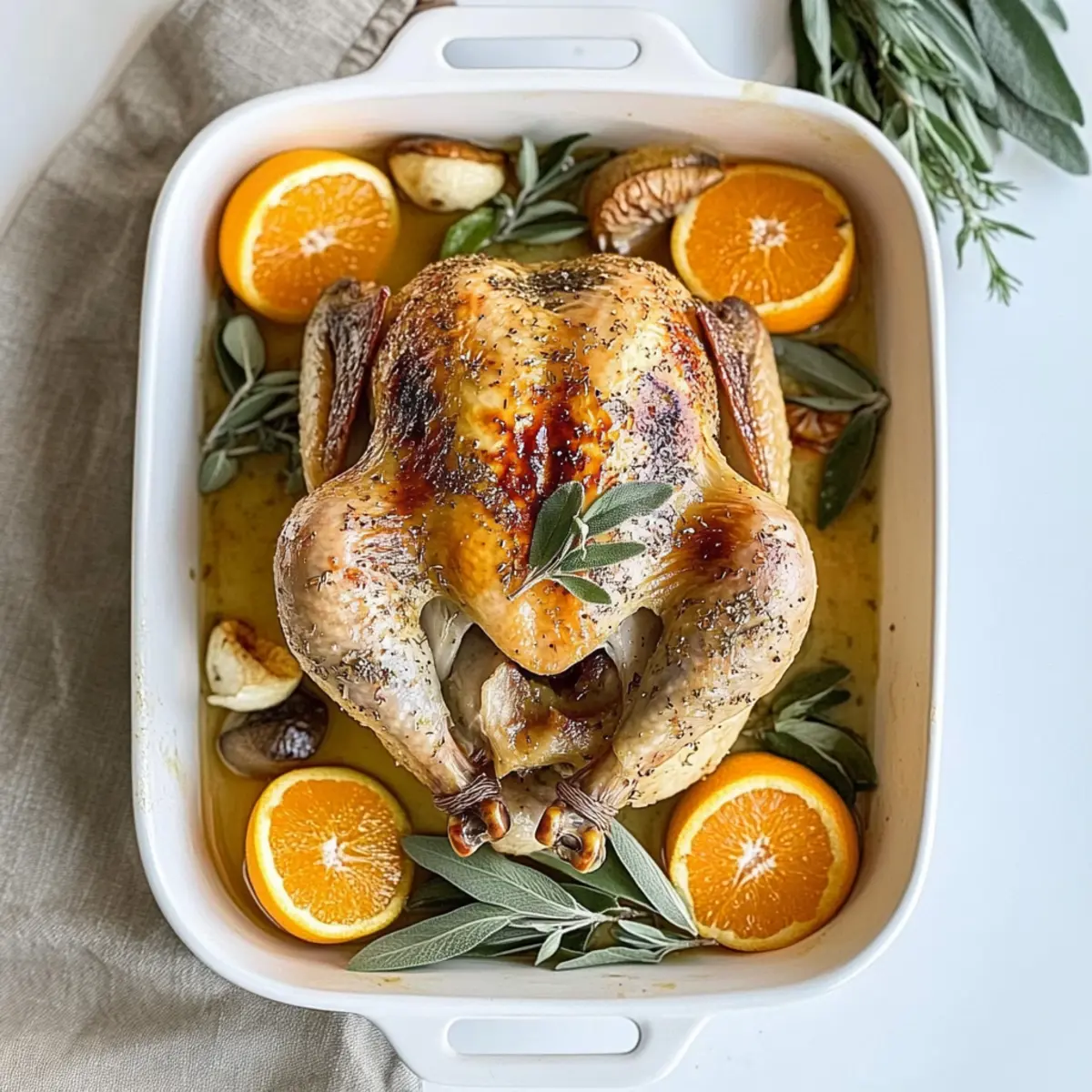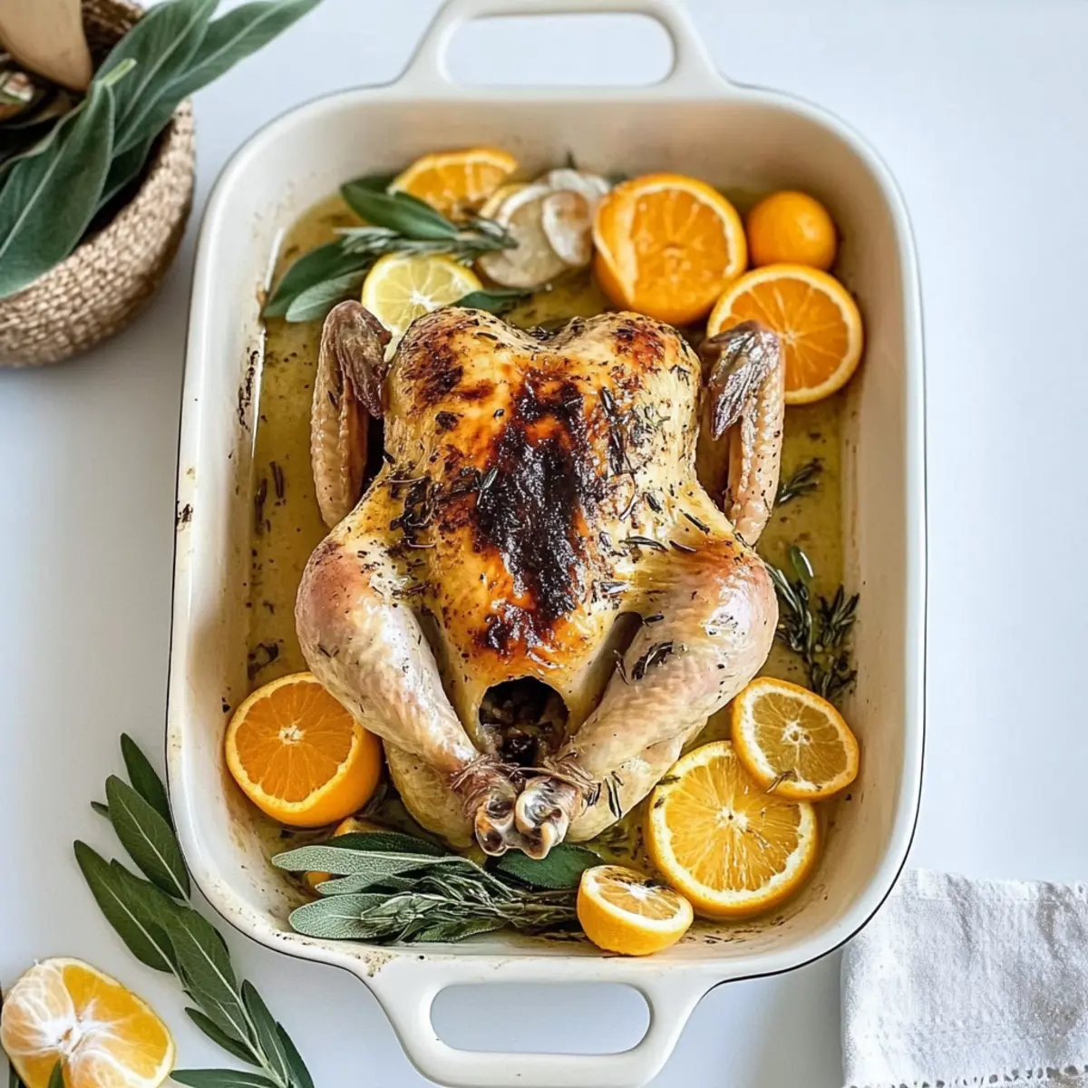 Flavor Explosion: The harmonious blend of juicy citrus and aromatic sage results in a roast chicken that’s bursting with festive flavors, perfect for any gathering.