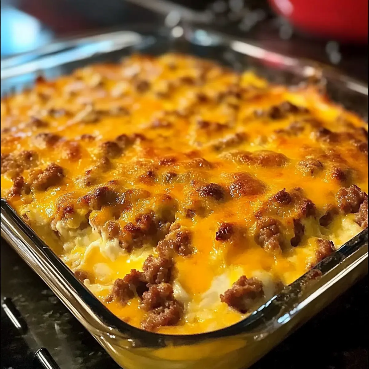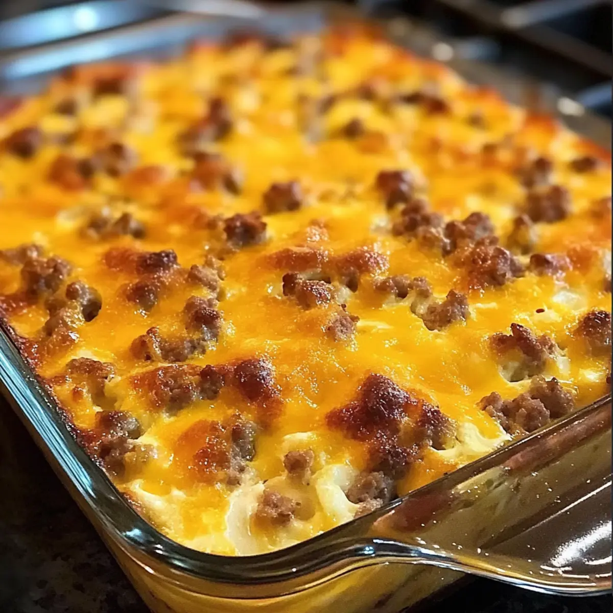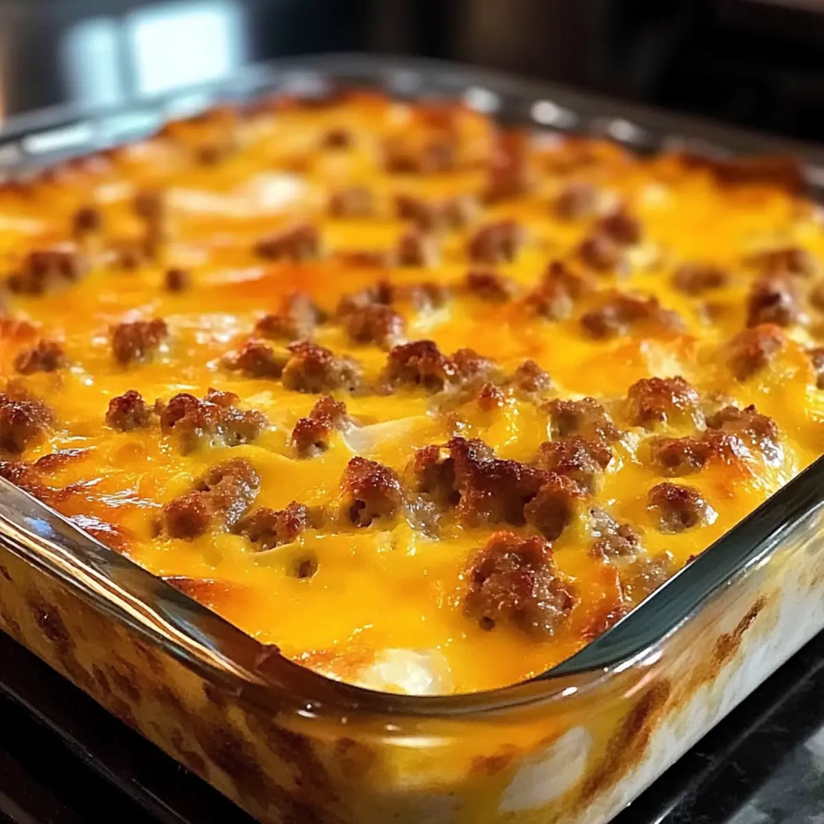 A whiff of sizzling sausage fills the kitchen, wrapping me in a sense of comfort that only a hearty breakfast can provide. This Sausage Egg and Cheese Breakfast Casserole is my go-to solution for those laid-back weekend mornings or gatherings where you want to impress without fuss. Not only does it come together effortlessly, but it’s also meal prep-friendly, letting you savor every bite instead of scrambling in the kitchen. With its luscious layers of fluffy eggs, savory sausage, and gooey melted cheese, this casserole is truly a crowd-pleaser that caters to all palates. Want to elevate your breakfast game and warm up your family’s hearts? Keep reading for a nourishing recipe that will have everyone asking for seconds! Why is this casserole a must-try? Effortless Preparation: Just mix, layer, and bake—no complicated steps! Hearty and Filling: This casserole is packed with protein, making it a satisfying meal that keeps you energized throughout the day. Crowd-Pleaser: Perfect for brunches or family gatherings, everyone will love the familiar flavors of sausage, egg, and cheese. Customizable Options: Feel free to swap ingredients like cheese varieties or add veggies, ensuring everyone’s preferences are met. Meal Prep Friendly: Prep it the night before and pop it in the oven when you’re ready to serve, allowing you more time to relax with loved ones. Ready to add this to your breakfast rotation? Pair it with a light fruit salad or buttered toast for a complete meal! Sausage Egg and Cheese Breakfast Casserole Ingredients For the Casserole 12 large eggs – The main binding agent providing delightful structure. 3/4 cup whole milk – Adds a creamy texture and extra moisture to the dish. 1 tsp salt – Enhances the overall flavor profile of the casserole. 1/4 tsp ground black pepper – Introduces subtle spice and depth for added flavor. 1 lb breakfast sausage – Serves as the primary flavor source; consider ground turkey for a leaner option. 1 tbsp dried minced onion – Infuses delicious flavor; fresh onion can also be used if preferred. 1 cup shredded sharp cheddar cheese, divided – Offers richness and texture; feel free to substitute with other cheese varieties or reduce for a lighter version. Optional Add-ins 1 cup fresh spinach – A great way to sneak in some greens; it cooks down nicely in the casserole. 1/2 cup diced bell peppers – Adds sweetness and vibrant color; any variety works! 1 tsp garlic powder – Enhances the savory flavor for garlic lovers. Elevate your dish with these ingredients, and enjoy making this Sausage Egg and Cheese Breakfast Casserole the highlight of your breakfast table! Step‑by‑Step Instructions for Sausage Egg and Cheese Breakfast Casserole Step 1: Cook the Sausage In a large skillet, heat over medium heat and add 1 pound of breakfast sausage, breaking it into smaller pieces. Cook for about 8-10 minutes until the sausage is browned and cooked through, stirring occasionally. Once browned, add 1 tablespoon of dried minced onion, cooking for an additional 2-3 minutes until softened and fragrant. Step 2: Drain and Set Aside After cooking, carefully drain the excess fat from the skillet to prevent a greasy casserole. Remove the sausage and onion mixture from the heat and set it aside in a bowl, allowing it to cool slightly while you prepare the egg mixture. Step 3: Whisk the Eggs In a large mixing bowl, crack 12 large eggs and whisk until smooth. Then, pour in 3/4 cup of whole milk along with 1 teaspoon of salt and 1/4 teaspoon of ground black pepper. Whisk the ingredients together until combined, ensuring a light and fluffy consistency, which will yield a deliciously airy finish to your casserole. Step 4: Prepare the Oven and Dish Preheat your oven to 350°F (175°C). While the oven heats, grease a 9×13 inch casserole dish generously with cooking spray or butter. This will ensure that your Sausage Egg and Cheese Breakfast Casserole doesn’t stick and can be easily served straight from the dish. Step 5: Layer the Ingredients Spread 3/4 of the sausage and onion mixture evenly across the bottom of the greased casserole dish. Then, sprinkle half of the 1 cup of shredded sharp cheddar cheese on top. This layering helps distribute the flavors and creates a delightful texture throughout the casserole. Step 6: Add the Egg Mixture Carefully pour the egg mixture over the layers in the casserole dish, ensuring it evenly covers the sausage and cheese. This will help the flavors meld together as it bakes, and the eggs will rise beautifully in the oven. Step 7: Bake the Casserole Place the casserole in the preheated oven and bake for about 30 minutes. After this time, the eggs should be mostly set but may still have a slight jiggle in the center. This slight undercooking is okay, as the casserole will finish cooking outside of the oven. Step 8: Top with Remaining Ingredients After 30 minutes, carefully remove the casserole from the oven. Sprinkle the remaining sausage mixture and the rest of the cheddar cheese on top. Return the dish to the oven and bake for an additional 10-15 minutes until the cheese is melted and bubbly, creating a golden, appetizing crust. Step 9: Cool and Serve Once the cheese has melted and the casserole is bubbling, remove it from the oven. Allow it to cool slightly for about 5 minutes before slicing it into squares. This “Sausage Egg and Cheese Breakfast Casserole” is now ready to serve, offering a warm, hearty breakfast that is sure to please everyone at the table! Expert Tips for Sausage Egg and Cheese Breakfast Casserole Cook Sausage Thoroughly: Ensure the breakfast sausage is browned well to avoid a greasy result. Under-cooked sausage can lead to flavor issues. Whisk Wisely: Whisk the eggs gently and just until combined. Over-whisking can create a rubbery texture that nobody wants in their casserole. Bake Correctly: Don’t overbake! A slight jiggle in the center is acceptable—you want a creamy texture. It will continue