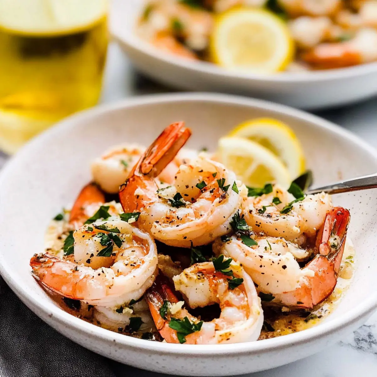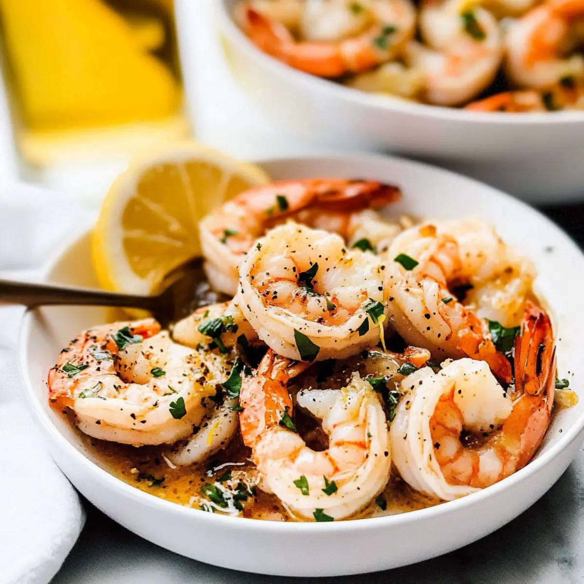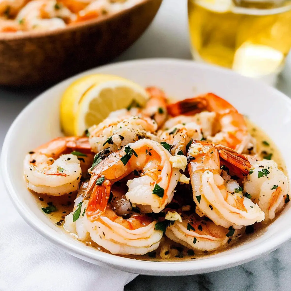 There’s something undeniably magical about the aroma of garlic simmering in butter, mingling with the bright notes of lemon and white wine. As I prepared to make my Easy Shrimp Scampi tonight, I couldn’t help but think about how this classic Italian-American dish has always been my go-to for a quick and elegant dinner. In just 30 minutes, you’ll find succulent shrimp bathed in a luscious garlic butter sauce, offering a delightful escape from the mundane. Not only is this dish fast to whip up, making it ideal for busy weeknights, but it also brings a bit of coastal charm to your table, perfect for impressing friends or enjoying a cozy night in. Are you ready to bring a taste of Italy into your kitchen? Let’s dive in! Why is Shrimp Scampi a must-try? Versatile and quick: This recipe brings the delightful flavors of the sea to your table in just 30 minutes, perfect for busy weeknights or special occasions. Decadent garlic butter sauce: The luscious combination of garlic, butter, and white wine creates an irresistible aroma that will have your guests asking for seconds. Crowd-pleaser: Whether served over pasta or enjoyed with crusty bread, Easy Shrimp Scampi is a sure hit that appeals to all taste buds. Customize your dish: Feel free to experiment with herbs like basil or oregano, or swap shrimp for other shellfish to create your unique version, much like my delicious Honey Walnut Shrimp. Pairs beautifully: Enhance your meal with a side of roasted vegetables or a fresh salad, ensuring an elegant dining experience every time. Shrimp Scampi Ingredients • Elevate your meal with these fresh ingredients! For the Sauce Unsalted Butter – Delivers richness and creamy texture; helps control saltiness. Olive Oil – Adds depth of flavor and prevents butter from burning; can substitute with avocado oil. Garlic (4 cloves, minced) – Essential for that garlicky flavor; adjust based on your preference. Red Pepper Flakes (1/4 tsp, optional) – Brings heat and spice to the dish; omit for a milder experience. Scallions (1/4 cup, thinly sliced) – Provides a mild onion flavor and a pop of color; green onions work too. Lemon Zest (1 tbsp) – Enhances freshness and brightness; use fresh lemons for the best flavor. Kosher Salt (1 tsp) – Balances the flavors; adjust according to taste. Freshly-Ground Black Pepper (1/2 tsp) – Adds aromatic heat; white pepper can be a subtler choice. Dry White Wine (1/4 cup) – Introduces acidity and depth; vegetable broth is a great non-alcoholic substitute. For the Shrimp Raw U15 Sized Shrimp (1.5 lbs, deveined, shelled, tail on) – The star of the dish; larger shrimp ensure juiciness. Optional: Extra jumbo (16/20) or jumbo (21/25) can be used. Fresh Lemon Juice (1 tbsp) – Brightens the flavor just before serving; vinegar can create a different tang. Italian Parsley (1/4 cup, chopped) – Adds freshness and garnishing; cilantro can be an exciting alternative. Let these ingredients come together for a delightful Shrimp Scampi with White Wine and Lemon that brings the essence of Italian cuisine right to your table! Step‑by‑Step Instructions for Shrimp Scampi with White Wine and Lemon Step 1: Preheat the Broiler Begin by adjusting your oven rack to about 6 inches below the broiler. Preheat your broiler on high for a few minutes. This is crucial for achieving the perfect finish on your shrimp, ensuring they get a lovely, charred texture while remaining tender and juicy in the Easy Shrimp Scampi. Step 2: Melt Butter and Oil In a large, heavy skillet, combine 4 tablespoons of unsalted butter and 2 tablespoons of olive oil over medium-high heat. Allow the mixture to melt and become foamy, which should take about 2–3 minutes. This combination creates a rich base for our sauce, enhancing the flavors of the garlic and wine to come. Step 3: Cook Garlic Add 4 minced garlic cloves and, if using, 1/4 teaspoon of red pepper flakes to the skillet. Sauté them for about 1 minute, stirring frequently, until the garlic is fragrant but not browned. The aroma of garlic wafting through your kitchen will signal that it’s time to move to the next step for your Shrimp Scampi with White Wine and Lemon. Step 4: Add Flavorings Toss in 1/4 cup of thinly sliced scallions, 1 tablespoon of lemon zest, 1 teaspoon of kosher salt, and 1/2 teaspoon of freshly-ground black pepper. Stir well to combine, then pour in 1/4 cup of dry white wine. Reduce the heat slightly, allowing it to simmer for 2–3 minutes until the sauce is slightly reduced, intensifying its flavor profile. Step 5: Combine with Shrimp Remove the skillet from the heat and carefully add 1.5 pounds of deveined, shelled U15-sized shrimp to the garlic butter sauce. Gently toss the shrimp to ensure they are evenly coated with the delightful mixture. Arrange the shrimp in a single layer to promote even cooking when they go under the broiler. Step 6: Broil Shrimp Place the skillet under the preheated broiler. Broil the shrimp for about 3–4 minutes on one side, then carefully flip each shrimp to ensure even cooking. Broil for an additional 3–4 minutes until the shrimp are fully cooked, turning pink and opaque—keep a close eye to avoid overcooking. Step 7: Finish and Serve Remove the skillet from the oven, and quickly stir in 1 tablespoon of fresh lemon juice and 1/4 cup of chopped Italian parsley. This adds a burst of freshness to your Easy Shrimp Scampi. Serve immediately over pasta, rice, or crusty bread, allowing everyone to savor the luscious garlic butter sauce. Make Ahead Options Preparing Easy Shrimp Scampi ahead of time is a fantastic way to save time on busy weeknights! You can prep the garlic butter sauce (butter, oil, garlic, and seasonings) up to 3 days in advance; simply combine all ingredients in an airtight container and refrigerate. Additionally, you can devein and shell the shrimp up to 24 hours ahead, keeping them stored in a covered container in the fridge to ensure freshness. When you’re ready to s