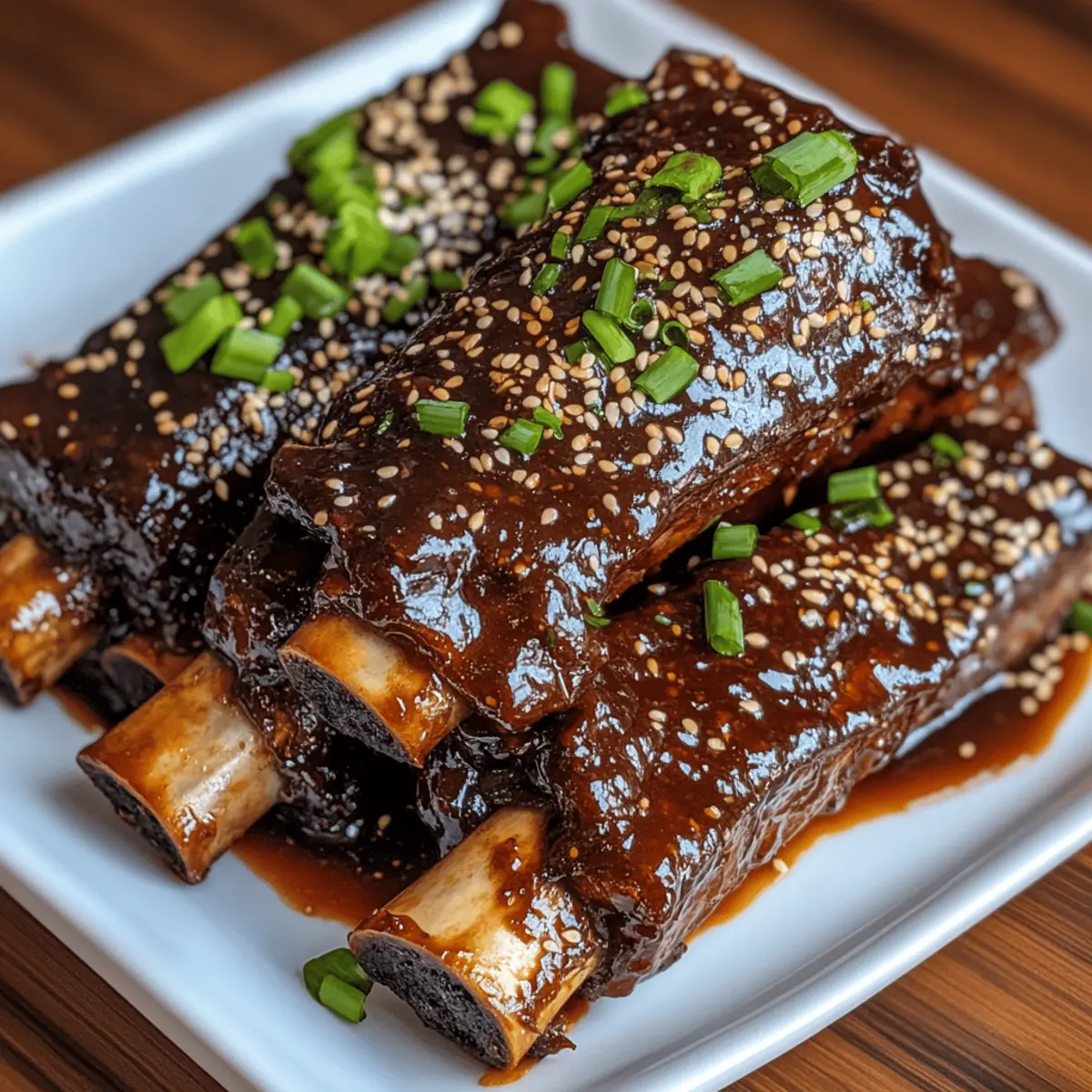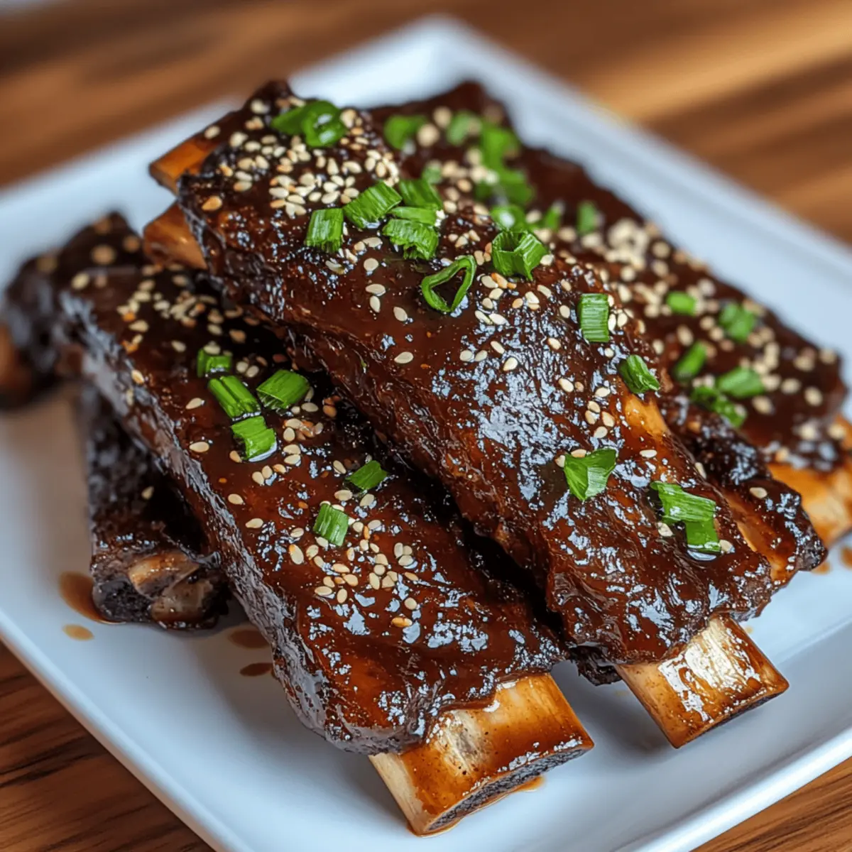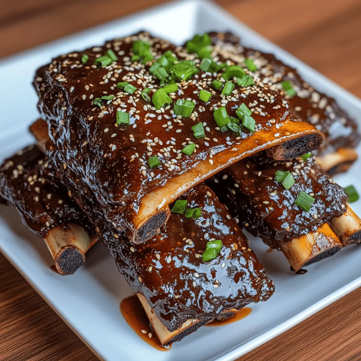 As the scent of simmering honey garlic sauce enveloped my kitchen, I could feel the warmth of home-cooked comfort wrap around me like a cozy blanket. There’s something truly special about turning a simple cut of beef into Slow Cooker Honey Garlic Beef Ribs, a dish that promises tender meat falling off the bone. This recipe is not only a family-friendly option, but it also allows you to embrace the slow cooking method, which amplifies flavors and makes dinner prep a breeze. Whether you’re entertaining friends or simply enjoying a cozy night in, these ribs bring people together over a delightful meal. You won’t believe how effortlessly this dish comes together, making it a perfect choice for busy weeknights or leisurely weekends. Ready to discover the mouthwatering magic of honey garlic? Let’s dive into this delicious journey! Why are these ribs a must-try? Fall-Off-The-Bone Tenderness: The slow cooking process transforms tough beef ribs into an incredibly tender delight that’s irresistibly juicy. Flavor Explosion: With a harmonious blend of sweet honey and savory garlic, each bite offers a mouthwatering taste that’ll have everyone asking for seconds. Simple Preparation: Just season, pour the sauce, and forget about them—perfect for busy cooks who want home-cooked goodness without fuss. Family-Friendly Feast: These ribs are sure to please all ages at dinner, whether paired with rice for the kids or served with a fresh salad for adults. Meal Prep Savvy: Make ahead and enjoy leftovers—these ribs can be easily stored and make for a fantastic ready-to-eat meal later in the week. Perfect for Gatherings: Impress your friends at gatherings with these delightful ribs, just as you would with Garlic Parmesan One or Garlic Butter Steak! Slow Cooker Honey Garlic Beef Ribs Ingredients For the Ribs • Beef Ribs: 3-4 pounds – Main protein source, providing rich flavor and texture. Substitute with pork ribs or chicken wings for variation. • Salt and Pepper: To taste – Enhances overall flavor profile. • Olive Oil: 2 tablespoons (optional for searing) – Adds flavor and helps achieve a nice crust when searing the ribs. Can be omitted for a leaner option. For the Honey Garlic Sauce • Honey: 1/2 cup – Provides sweetness and forms the base of the sauce. No direct substitute recommended for flavor. • Soy Sauce: 1/4 cup – Adds umami flavor; use tamari for a gluten-free option. • Garlic: 4 cloves, minced – Infuses a robust flavor into the sauce. Fresh garlic is recommended for best results. • Fresh Ginger: 1 tablespoon, grated (optional) – Adds warmth and depth to the sauce. • Rice Vinegar: 1 tablespoon (or apple cider vinegar) – Balances sweetness with acidity. • Sesame Oil: 1 teaspoon (optional) – Adds a nutty aroma to the sauce. • Crushed Red Pepper Flakes: 1/2 teaspoon (optional) – Introduces heat; adjust to taste. For Thickening the Sauce • Cornstarch: 1 tablespoon mixed with 2 tablespoons water – Used for thickening the sauce to preferred consistency. Feel free to gather these ingredients and unleash the magic of Slow Cooker Honey Garlic Beef Ribs in your kitchen! Step‑by‑Step Instructions for Slow Cooker Honey Garlic Beef Ribs Step 1: Prepare the Ribs Begin by patting the beef ribs dry with paper towels, then generously season them with salt and pepper. This step is crucial as it enhances the flavor of the ribs. After seasoning, set them aside while you proceed to the next step, allowing the seasoning to penetrate slightly. Step 2: Sear the Ribs (Optional) In a skillet, heat 2 tablespoons of olive oil over medium-high heat. When the oil is shimmering, carefully add the seasoned ribs, searing them for 2-3 minutes on each side until a beautiful brown crust forms. This optional step adds depth of flavor to your Slow Cooker Honey Garlic Beef Ribs, enriching the final dish. Step 3: Make the Honey Garlic Sauce In a mixing bowl, whisk together ½ cup of honey, ¼ cup of soy sauce, minced garlic, grated ginger, rice vinegar, sesame oil, and crushed red pepper flakes until thoroughly combined. The sauce should have a delightful balance of sweetness and savory notes, perfect for coating your ribs later. Set this flavorful mixture aside. Step 4: Slow Cook the Ribs Place the seared or raw beef ribs in the slow cooker, arranging them in a single layer for even cooking. Pour the honey garlic sauce generously over the ribs, ensuring they are well-coated. Secure the lid and prepare to embark on a slow cooking adventure for incredibly tender meat. Step 5: Cook Set the slow cooker on low for 6-8 hours or high for 4-6 hours, depending on your schedule. As the Slow Cooker Honey Garlic Beef Ribs cook, the meat will become succulent and tender, easily pulling away from the bone. A tempting aroma will fill your kitchen, heightening anticipation for dinner. Step 6: Thicken the Sauce (Optional) Once the ribs are tender, carefully remove them from the slow cooker and set them aside. Pour the remaining sauce into a saucepan over medium heat. In a small bowl, mix 1 tablespoon of cornstarch with 2 tablespoons of water, then stir this mixture into the sauce, cooking until it thickens to your desired consistency. Step 7: Serve Coat the beef ribs generously in the thickened honey garlic sauce before plating. Garnish with sesame seeds and chopped green onions for an added pop of color and flavor. Serve these delectable Slow Cooker Honey Garlic Beef Ribs warm, alongside steamed rice or creamy mashed potatoes for an unforgettable meal. Slow Cooker Honey Garlic Beef Ribs Variations Feel free to get creative with your Slow Cooker Honey Garlic Beef Ribs and let your taste buds explore new flavor landscapes! Pork Ribs: Substitute beef ribs with pork ribs for a slightly sweeter and richer experience that’s equally delicious. Chicken Wings: For a lighter option, swap the beef ribs for chicken wings, keeping the same honey garlic sauce for a finger-licking treat. Spicy Kick: Add a tab
