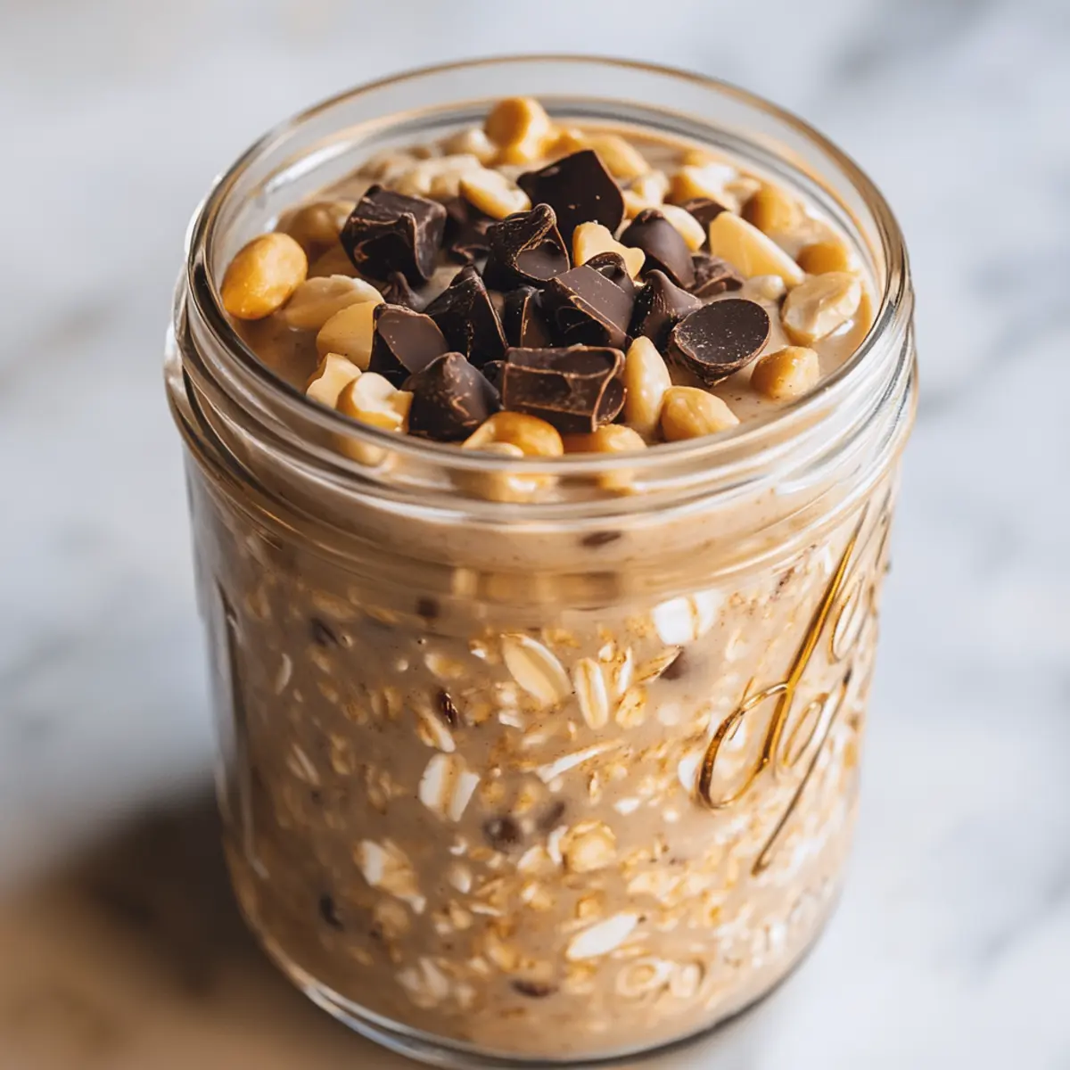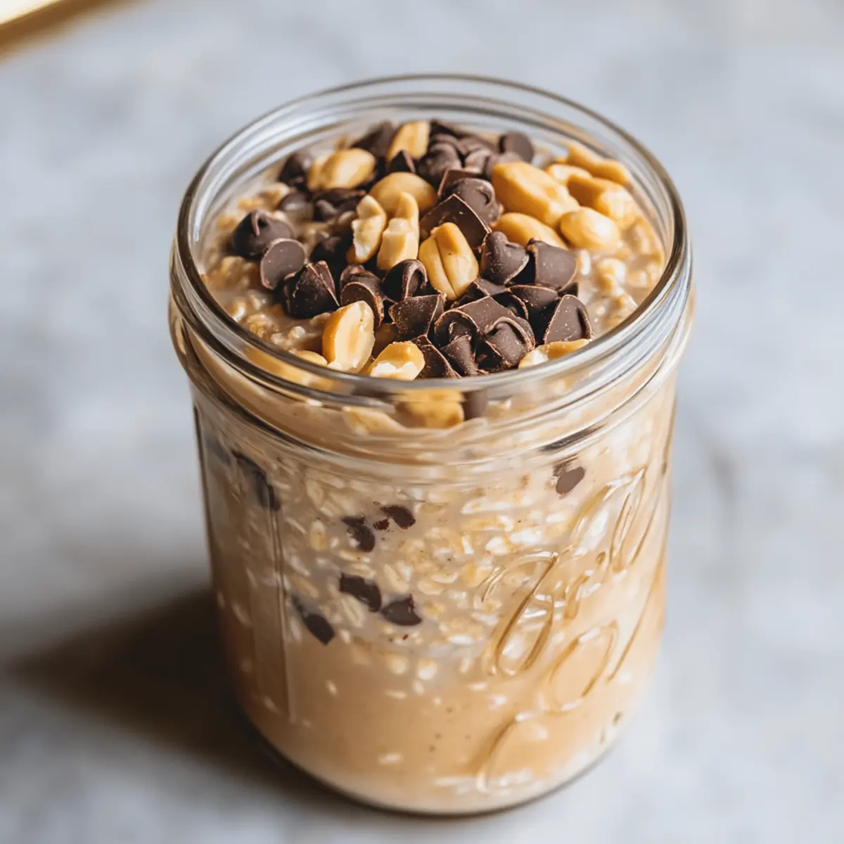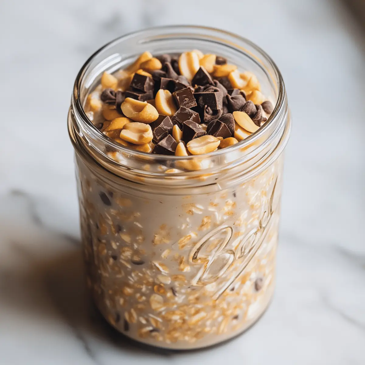 As I flipped through my recipe collection, I stumbled upon the idea of transforming my beloved Snickers bar into a quick and healthy breakfast. The result? Snickers Overnight Oats—a fun, vegan twist on morning meals that satisfy a sweet tooth while providing nourishing goodness. This delightful recipe combines creamy oats soaked overnight with rich cocoa powder, peanut butter, and crunchy peanuts, all while staying plant-based and guilt-free! Not only are they a breeze to whip up ahead of time, but these oats also bring a dessert-like flair to your breakfast table, making it feel like a treat instead of a chore. Ready for a nourishing breakfast that tastes like your favorite candy? Let’s dive in! Why are Snickers Overnight Oats a must-try? Irresistible Flavor: The rich combination of cocoa and peanut butter perfectly mimics the classic Snickers taste, turning a mundane breakfast into an enjoyable experience. Quick Prep: With just a few simple steps, you can prepare these overnight oats the night before. This leaves you free to savor your morning without rushing. Versatile Ingredients: Feel free to swap ingredients based on your dietary needs; for instance, use sunflower seed butter for a nut-free version or add your favorite fruits for extra freshness. Healthy Indulgence: Packed with fiber and healthy fats, these oats are not only satisfying but also nourish your body. You can enjoy a dessert-like breakfast without the guilt! Meal Prep Friendly: Snickers Overnight Oats can be prepared in bulk, making them perfect for busy weekdays. Just grab a jar and you’re good to go! Snickers Overnight Oats Ingredients For the Base • Rolled Oats – The foundation of your overnight oats, providing fiber and a satisfying texture. • Plant-Based Milk – Choose almond, soy, or oat milk for a creamy consistency that fits vegan diets. For the Sweetness • Maple Syrup or Agave Nectar – A natural sweetener that enhances the overall flavor. Adjust the quantity based on your taste preference. For the Chocolatey Taste • Cocoa Powder – Adds a rich chocolate flavor that closely resembles the beloved Snickers bar. For the Creaminess • Peanut Butter – Brings a luscious richness; swap it with almond butter if you have nut allergies. For Flavor Enhancement • Vanilla Extract – Use pure extract for a deeper flavor experience that elevates your dish. For the Crunch • Chopped Peanuts – Offers a crunchy texture akin to Snickers; you can substitute them with other nuts based on preference. For the Sweet Touch • Dairy-Free Chocolate Chips – These chips provide additional chocolate flavor without dairy—opt for dark chocolate for a richer taste, or leave them out for fewer calories. Step‑by‑Step Instructions for Snickers Overnight Oats Step 1: Prepare the Base In a medium-sized jar or container, measure out 1 cup of rolled oats. This will serve as the foundation for your Snickers Overnight Oats. Make sure to choose rolled oats instead of instant for the best texture. Step 2: Add the Liquid Pour in 1.5 cups of your favorite plant-based milk, ensuring it covers the oats completely. This will help the oats absorb the liquid overnight, creating a creamy consistency. Choose almond, soy, or oat milk for a delightful vegan option. Step 3: Sweeten the Mixture Stir in 2 tablespoons each of maple syrup or agave nectar and cocoa powder. This mixture adds a sweet, chocolatey flavor reminiscent of a Snickers bar. Mix well until fully incorporated, allowing the sweetness to blend evenly with the other ingredients. Step 4: Mix in the Creaminess Add 2 tablespoons of peanut butter to the jar, mixing until smooth and creamy. This provides richness and smoothness to your Snickers Overnight Oats. If you prefer, you can substitute almond butter to suit nut allergies or personal taste. Step 5: Enhance the Flavor Incorporate 1 teaspoon of pure vanilla extract to elevate the overall flavor of your mixture. This step will add a delightful aroma and depth, harmonizing beautifully with the chocolate and peanut butter. Step 6: Incorporate Crunchy Elements Add 2 tablespoons of chopped peanuts and 2 tablespoons of dairy-free chocolate chips to the mix. These ingredients will give you that satisfying crunch and additional layers of chocolate flavor reminiscent of a Snickers bar. Step 7: Final Mix and Refrigerate Mix all ingredients thoroughly, ensuring there are no dry patches of oats left. Once combined, secure the lid on your jar and refrigerate overnight or for at least 4 hours. This step allows the oats to soften and absorb the flavors beautifully. Step 8: Serve and Enjoy In the morning, give your Snickers Overnight Oats a good stir and enjoy chilled straight from the jar. For an extra touch, feel free to add fresh fruit like sliced bananas or berries to enhance your breakfast experience! What to Serve with Snickers Overnight Oats Enhance your morning experience and create a delightful breakfast spread that complements the sweetness of these oats. Fresh Fruit: Add sliced bananas or juicy berries for a burst of freshness that balances the rich flavors. Nutty Granola: Sprinkle some crunchy granola on top for an extra layer of texture and an earthy flavor contrast. Plant-Based Yogurt: A dollop of coconut or almond yogurt adds creaminess while keeping everything plant-based and delicious. Coffee: Pair with a cup of hot or iced coffee to elevate the breakfast experience; the caffeine complements the sweet flavors beautifully. Chia Seed Pudding: Light yet satisfying, this addition offers healthy fats and protein, making your breakfast even more nutritious and filling. Almond Milk Smoothie: Blend a quick smoothie with almond milk, spinach, and dates for a refreshing drink that nourishes alongside your oats. Snickers Overnight Oats Variations Feel free to explore these creative twists on your Snickers Overnight Oats for a breakfast that’s uniquely yours! Nut-Free: Replace peanut butter with sunflower seed butter for a n