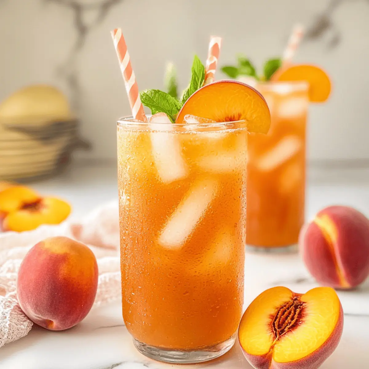 As the sun blazes down, I can almost hear the chime of ice clinking in a glass. It’s the perfect moment for a refreshing Southern Peach Tea, a delightful blend that captures the essence of summer in every sip. This invigorating drink is not just a thirst-quencher; it’s a celebration of sweet, ripe peaches paired with fragrant black tea. With its quick prep and ability to impress guests during backyard gatherings, this homemade beverage will quickly become your go-to for warm-weather refreshment. Whether you’re lounging on the porch or hosting a barbecue, this recipe ensures you’ll stay cool while savoring the sweet flavors of summer. Ready to learn how to make this irresistible drink that’s perfect for any occasion? Let’s dive in! Why Is Southern Peach Tea A Must-Try? Refreshing Charm: This sweet brew offers a burst of real peach flavor that captures summer’s essence in every sip. Versatile Enjoyment: Perfect for any occasion—whether it’s a sunny picnic, a backyard barbecue, or simply lounging at home. Quick & Easy: With minimal prep and a simple process, you can whip up this delightful drink in no time. Crowd Favorite: Impress your guests with this flavorful treat that is sure to be a hit among friends and family. Ready for even more peachy goodness? Try the delicious Millionaire Peach Salad as a side or indulge in some refreshing Bourbon Peach Upside for dessert! Southern Peach Tea Ingredients For the Tea • Black Tea Bags – The foundation of this drink; choose regular for classic flavor or herbal for a caffeine-free alternative. • Boiling Water – Vital for steeping the tea bags to release that rich flavor. For the Peach Mixture • Fresh Ripe Peaches – The star of Southern Peach Tea, delivering natural sweetness; frozen peaches work as a fine substitute when fresh ones aren’t available. • Lemon Juice – Balances the sweetness of the tea; fresh juice is best, but bottled lemon juice can also do the trick. For Sweetening • Granulated Sugar – Adds that delightful sweetness; feel free to substitute with honey or a sugar alternative if you’re watching your calories. • Baking Soda (optional) – Helps reduce bitterness in the tea; skip it if you prefer a stronger tea flavor. For Serving • Cold Water – Used to dilute the tea and peach mixture for perfect refreshment. • Ice – Serve your Southern Peach Tea chilled; it’s the key to enjoying this beverage on a hot summer day. Each ingredient plays a crucial role in creating the perfect Southern Peach Tea, ensuring you enjoy a refreshing and flavorful sip filled with summer vibes! Step‑by‑Step Instructions for Southern Peach Tea Step 1: Prep Peaches Start by halving and pitting two ripe peaches. Slice them into wedges and place them in the freezer for at least 4 hours. This step helps to create a chilly beverage to enjoy on hot days while intensifying their flavor in your Southern Peach Tea. Step 2: Steep Tea Boil 4 cups of water in a kettle, and once boiling, remove it from heat. Add 4 black tea bags to the water, cover, and let steep for 10 minutes. Remove the tea bags and stir in about a cup of granulated sugar until fully dissolved, letting the tea cool slightly afterward. Step 3: Blend Peaches While the tea cools, take two more fresh peaches. Peel and pit them, then chop into smaller pieces. Blend these peach pieces with a splash of lemon juice until you achieve a smooth consistency. This fresh peach puree will add that delightful sweetness and flavor to your Southern Peach Tea. Step 4: Strain Mixture Using a fine sieve or strainer, pour the blended peach mixture into a bowl. Press the mixture with the back of a spoon to extract as much juice as possible, discarding any leftover pulp. This fresh juice ensures your Southern Peach Tea is bursting with authenticity and flavor. Step 5: Combine In a large pitcher, pour in the strained peach juice along with the cooled tea and 2 cups of cold water. If desired, add a pinch of baking soda to help reduce any bitterness. Mix well, and place the pitcher in the refrigerator, allowing the flavors to meld until you are ready to serve. Step 6: Serve When you’re ready to enjoy your Southern Peach Tea, fill glasses with ice, ensuring they are fully chilled. Pour the tea mixture over the ice, adding a few frozen peach wedges from Step 1 for an extra touch of flavor. Sip and relish the refreshing taste of summer! Expert Tips for Southern Peach Tea Choose Ripe Peaches: Always opt for fresh, ripe peaches to ensure maximum sweetness and flavor in your Southern Peach Tea. If they’re out of season, frozen peaches work well too. Adjust Sweetness to Taste: Before serving, always taste your tea mixture. It’s important to customize the sweetness level with sugar or honey according to your preferences. Strain Thoroughly: Don’t rush the straining process! Press the peach puree well to extract all the juicy goodness without any pulp, resulting in a smoother Southern Peach Tea. Chill Your Tea: For that extra refreshing experience, serve the tea over ice along with frozen peach wedges. This keeps your drink cold and deliciously crisp on warm days. Avoid Bitterness: If you find your tea too bitter, a pinch of baking soda can help soften the flavor. Remember, adding too much can alter the taste, so start small! Make Ahead Options Southern Peach Tea is a fantastic option for busy home cooks looking to save time while still enjoying a refreshing drink! You can prepare the peach puree and steep the tea up to 24 hours in advance. First, blend your chopped peaches with lemon juice and strain for that perfect juice, then store it in an airtight container in the refrigerator. The brewed tea can also be refrigerated, ensuring you maintain its flavor and freshness. When you’re ready to serve, simply combine the chilled peach juice with the brewed tea and cold water, pour over ice with a few frozen peach wedges, and enjoy that summery taste any time you wish! How to Store 