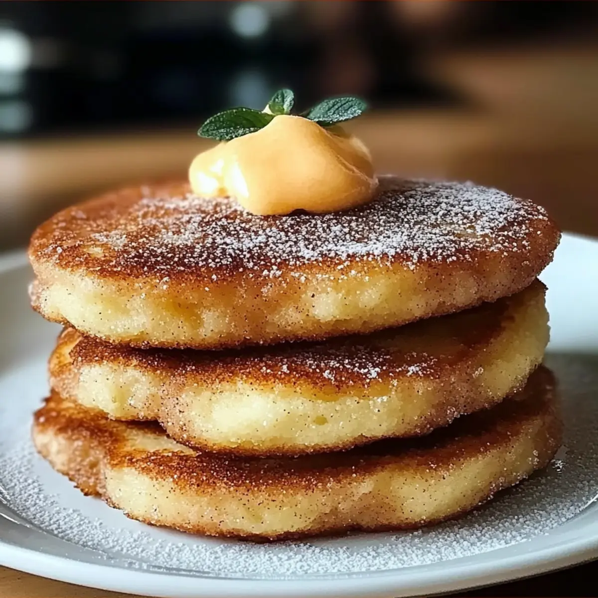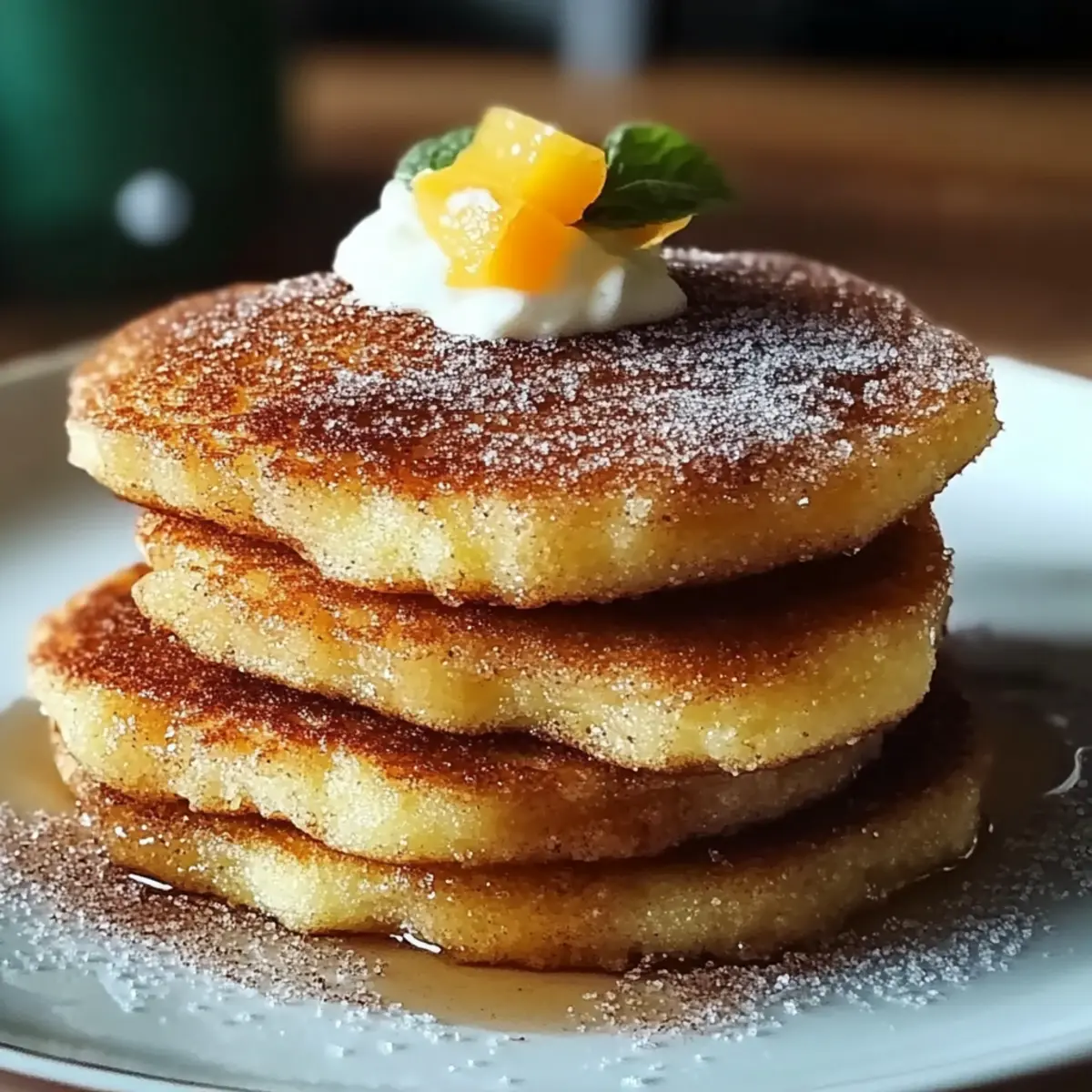 The sizzling sound of batter meeting a hot skillet whisked me away to a bustling Spanish café, where I first discovered the joy of churros. That’s right, today I’m recreating that delightful experience with my Fluffy Spanish Churro-Inspired Pancakes! Combining the warm, comforting flavor of cinnamon sugar with a light, airy texture, these pancakes are an absolute treat for any breakfast lover, perfect for either a cozy weekend brunch or a delightful weekday morning. With just a few simple ingredients, this easy pancake recipe not only brings a taste of Spain straight to your kitchen but also offers a fun twist on a classic—plus, they can easily be made gluten-free or dairy-free if needed. Are you ready to flip some deliciousness? Let’s get cooking! Why You’ll Crave These Pancakes? Fluffy Texture: The light and airy pancake base makes each bite a delightful experience that feels like a soft hug. Cinnamon Sugar Magic: Sprinkling warm cinnamon sugar elevates these pancakes, transforming them into a sweet treat reminiscent of classic churros. Customizable & Fun: Toss in chocolate chips for a decadent version or experiment with flavored extracts, making every batch unique to your taste. Quick & Easy: With simple ingredients and a straightforward process, these pancakes can be whipped up in no time—perfect for busy mornings! Perfect for Any Occasion: Whether it’s a leisurely brunch with friends or a quick breakfast for the family, these pancakes are sure to wow everyone at the table. Don’t forget to pair them with whipped cream or fresh fruit; if you’re in the mood for something a bit different, check out my Stuffed Cheesecake Pancakes for another delicious option! Spanish Churro-Inspired Pancakes Ingredients For the Batter • All-Purpose Flour – Provides structure; swap with whole wheat or gluten-free blend if needed. • Sugar – Adds sweetness; try brown sugar for a richer flavor. • Baking Powder – A leavening agent for fluffiness; make sure it’s fresh for optimal rise. • Salt – Enhances overall flavor; omit for low-sodium diets. • Milk – Creates the perfect batter consistency; use almond or oat milk for a dairy-free version. • Large Egg – Binds ingredients together for a tender texture; a flax egg works as a vegan alternative. • Melted Butter – Adds richness to the pancakes; can be replaced with a dairy-free substitute. • Vanilla Extract – Introduces a lovely depth of flavor; try almond extract for a fun twist. • Cinnamon Sugar – The finishing touch that makes these pancakes taste like churros! Embrace the joy of making Spanish Churro-Inspired Pancakes that bring a delightful taste of Spain to your breakfast table! Step‑by‑Step Instructions for Spanish Churro-Inspired Pancakes Step 1: Prepare the Batter In a large mixing bowl, whisk together 1 cup of all-purpose flour, 2 tablespoons of sugar, 1 tablespoon of baking powder, and a pinch of salt until well combined. In another bowl, mix 1 cup of milk, 1 large egg, 2 tablespoons of melted butter, and 1 teaspoon of vanilla extract until smooth. Gently combine the wet and dry ingredients, stirring just until mixed; a few lumps are perfectly fine. Step 2: Heat the Skillet Place a non-stick skillet over medium heat for about 3 minutes, allowing it to preheat fully. Lightly grease the skillet with cooking spray or a small amount of melted butter to prevent sticking. You’ll know it’s ready when a drop of water sizzles immediately upon contact. Perfect temperature ensures beautifully golden pancakes each time, essential for making those delightful Spanish Churro-Inspired Pancakes. Step 3: Cook the Pancakes Pour 1/4 cup of pancake batter onto the heated skillet for each pancake. Cook for about 2-3 minutes, or until bubbles form on the surface and the edges appear set. Carefully flip each pancake using a spatula and cook for an additional 1-2 minutes on the other side until it’s golden brown. These visual signals indicate that your pancakes are perfectly cooked and ready to enjoy! Step 4: Sprinkle with Cinnamon Sugar Once cooked, promptly remove each pancake from the skillet and place it on a serving plate. Generously sprinkle the warm pancakes with a mixture of cinnamon and sugar to create that recognizable churro flavor. This step not only adds sweetness but also enhances the pancake’s aroma, making your Spanish Churro-Inspired Pancakes irresistible and inviting for everyone at the table. Step 5: Repeat Cooking Continue with the remaining batter, adjusting the heat as necessary to ensure a steady cooking temperature. Add more butter or cooking spray to the skillet if needed for subsequent batches. As each batch finishes, stack the pancakes high and keep them warm on a plate covered with a kitchen towel. With each flip, you bring a bit more joy and deliciousness to your breakfast table, celebrating the essence of these churro-inspired delights. Make Ahead Options These Spanish Churro-Inspired Pancakes are perfect for meal prep, making your mornings a breeze! You can prepare the batter up to 24 hours in advance by mixing all dry ingredients together and storing them separately from the wet ingredients in the refrigerator. When you’re ready to cook, simply combine the wet ingredients with the dry mix. To maintain the pancakes’ fluffy quality, you can also cook a batch ahead of time and refrigerate them for up to 3 days. To reheat, pop them in a toaster or microwave until warmed through before sprinkling with cinnamon sugar. This way, you can enjoy delicious, churro-inspired pancakes with minimal effort, even on the busiest of mornings! Spanish Churro-Inspired Pancakes Variations Feel free to get creative with these pancakes and make them your own. Each variation is an opportunity to explore delightful new flavors! Gluten-Free: Swap all-purpose flour with a gluten-free flour blend for a safe option that still maintains fluffiness. Dairy-Free: Use almond or oat milk instead of regular mi