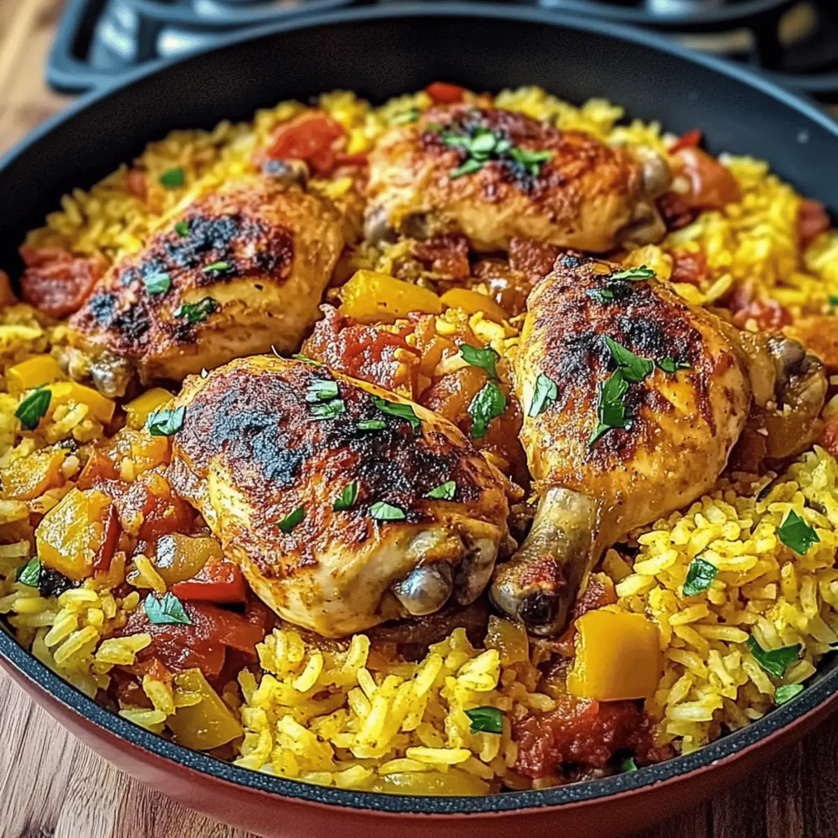 As I stood in my kitchen, the sweet aroma of sautéing onions and garlic wafted through the air, instantly whisking me away to the picturesque Basque countryside. This Spicy Basque Chicken with Saffron Rice recipe is not just a dish; it’s a warm embrace of flavors inspired by traditional Poulet Basquaise, now with my own fiery twist. The first bite reveals a delightful contrast between the tender, savory chicken and the fluffy saffron-infused rice, making it perfect for cozy gatherings or an indulgent weeknight feast. Not only is this recipe a guaranteed crowd-pleaser, but it also brings a delicious energy to your table, transforming dinner into an experience. So, what surprising ingredient do you think elevates this classic dish to new heights? What makes this dish so special? Simplicity: This Spicy Basque Chicken with Saffron Rice recipe is easy to follow, making it perfect for home cooks of all skill levels. Bold Flavors: The delightful mix of Piment d’Espelette, sweet peppers, and garlic transforms ordinary chicken into a flavor-packed meal. Perfect for Sharing: This dish is ideal for dinner parties or family gatherings—everyone will be raving about it, just like they do for my Cilantro Lime Chicken or Honey Hot Chicken. Versatile Options: Want to switch things up? Try swapping chicken for seafood or using quinoa for a gluten-free alternative. Comforting Appearance: The vibrant colors of this dish create a stunning visual that’s as inviting as it is delicious! Spicy Basque Chicken Ingredients • Discover the essential ingredients that make this dish sing! For the Chicken Stew Chicken (bone-in pieces) – Adds richness and depth to the stew; boneless thighs can be used for easier eating. Piment d’Espelette – Provides mild heat and complex depth; substitute with smoked paprika for a different flavor profile. Sweet Peppers (red and green) – Creates a flavor base that enhances sweetness; ensure they are fresh and ripe for the best taste. Tomatoes – Contributes acidity and moisture; canned tomatoes work in a pinch if you don’t have fresh on hand. Onion – Builds the aromatic flavor base; yellow onions are recommended for their natural sweetness. Prosciutto – Adds savory depth; feel free to use bacon or another cured ham if preferred. Garlic – Essential for rich aroma and flavor; fresh garlic is preferable for that punchy taste. For the Saffron Rice Saffron – Provides a floral aroma and beautiful color to the rice; turmeric can substitute but will alter the flavor. Rice (long grain) – The fluffy base for the saffron rice; remember to rinse before cooking to remove excess starch. Embrace the warmth of this Spicy Basque Chicken with Saffron Rice recipe with these selected ingredients that will charm your family and friends alike! Step‑by‑Step Instructions for Spicy Basque Chicken with Saffron Rice recipe Step 1: Prepare the Flavor Base In a large Dutch oven or heavy pot, heat a drizzle of olive oil over medium heat. Sauté one chopped onion and three minced garlic cloves until fragrant and golden, about 3-4 minutes. Add diced sweet peppers, stirring occasionally, and cook until softened, roughly 5 minutes. Stir in diced tomatoes, prosciutto, and a generous pinch of Piment d’Espelette, letting the flavors meld for 2-3 minutes. Step 2: Cook the Chicken Nestle bone-in chicken pieces into the pot, coating them with the aromatic mixture. Pour in enough water to cover the chicken half, then bring to a gentle simmer. Cover the pot and let it cook for 35-40 minutes, or until the chicken is tender and easily pulls away from the bone. Stir occasionally to prevent sticking, enjoying the heartwarming aroma as it wafts through your kitchen. Step 3: Prepare the Saffron Rice About 20-25 minutes before the chicken is done, rinse 1 cup of long grain rice under cold water to remove excess starch. In a separate saucepan, combine the rinsed rice, 2 cups of water, a pinch of salt, and a pinch of saffron threads. Bring it to a boil, then reduce the heat to low, covering the pan. Cook for 15-18 minutes until the rice is fluffy and the water is fully absorbed. Step 4: Final Touches and Serve Once both the spicy Basque chicken and saffron rice are ready, taste the chicken stew for seasoning, adjusting as needed. Serve the tantalizing chicken over a generous mound of saffron rice, allowing the colorful stew to cascade beautifully. Garnish with fresh herbs if desired, and revel in the warmth and vibrant flavors of this comforting dish with every bite. Expert Tips for Spicy Basque Chicken • Quality Ingredients: Always opt for fresh, high-quality ingredients like chicken and vegetables. Fresh ingredients will yield a deeper flavor in your Spicy Basque Chicken. • Adjusting Spice Levels: Feel free to vary the amount of Piment d’Espelette to suit your taste preferences. Start small and add more if you enjoy a bit of heat! • Rest Before Serving: Let the chicken rest for a few minutes after cooking. This helps the juices redistribute throughout the meat, resulting in a more succulent dish. • Cook Rice Separately: To achieve perfectly fluffy saffron rice, rinse it beforehand and cook it in a separate pot to avoid overcooking while the chicken simmers. • Flavorful Enhancements: Don’t hesitate to add more vegetables like zucchini or carrots to the stew. They not only enhance nutrition but also add delightful flavors to your Spicy Basque Chicken. Spicy Basque Chicken Variations Customize your Spicy Basque Chicken with Saffron Rice recipe by experimenting with delightful twists that tantalize your taste buds! Seafood Swap: Use shrimp or fish instead of chicken for a fresh, coastal flair. The seafood will absorb the vibrant flavors beautifully. Imagine a delightful shrimp and saffron pairing that transports your meal to the seaside! Quinoa Alternative: Substitute rice with quinoa for a gluten-free version that still offers a hearty texture. This tiny seed packs a protein punch, makin