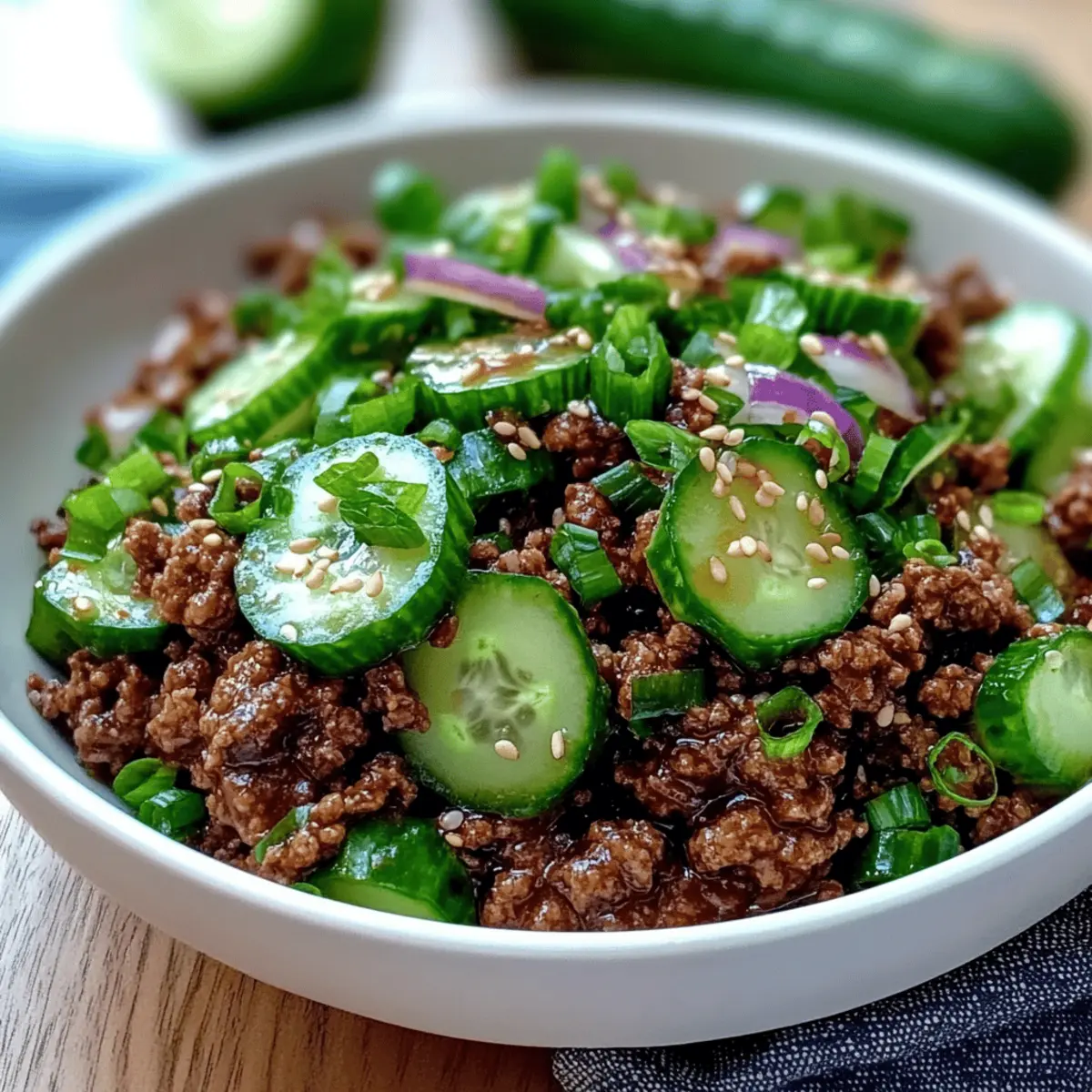 As I scrolled through social media, the vibrant colors and flavors of spicy Korean cuisine caught my eye, making my taste buds tingle with excitement. This Quick & Spicy Korean Ground Beef with Cucumber Salad captures that essence in the most delightful way. In just 25 minutes, you can serve up a mouthwatering dish that satisfies both your cravings and your schedule. The beef is savory and rich, while the cucumber salad adds a refreshing crunch, creating a perfect balance of flavors and textures. Not only is this meal a quick dinner solution, but it’s also a low-carb option you can enjoy guilt-free. Are you ready to dive into this delicious recipe and impress your loved ones at the dinner table?
