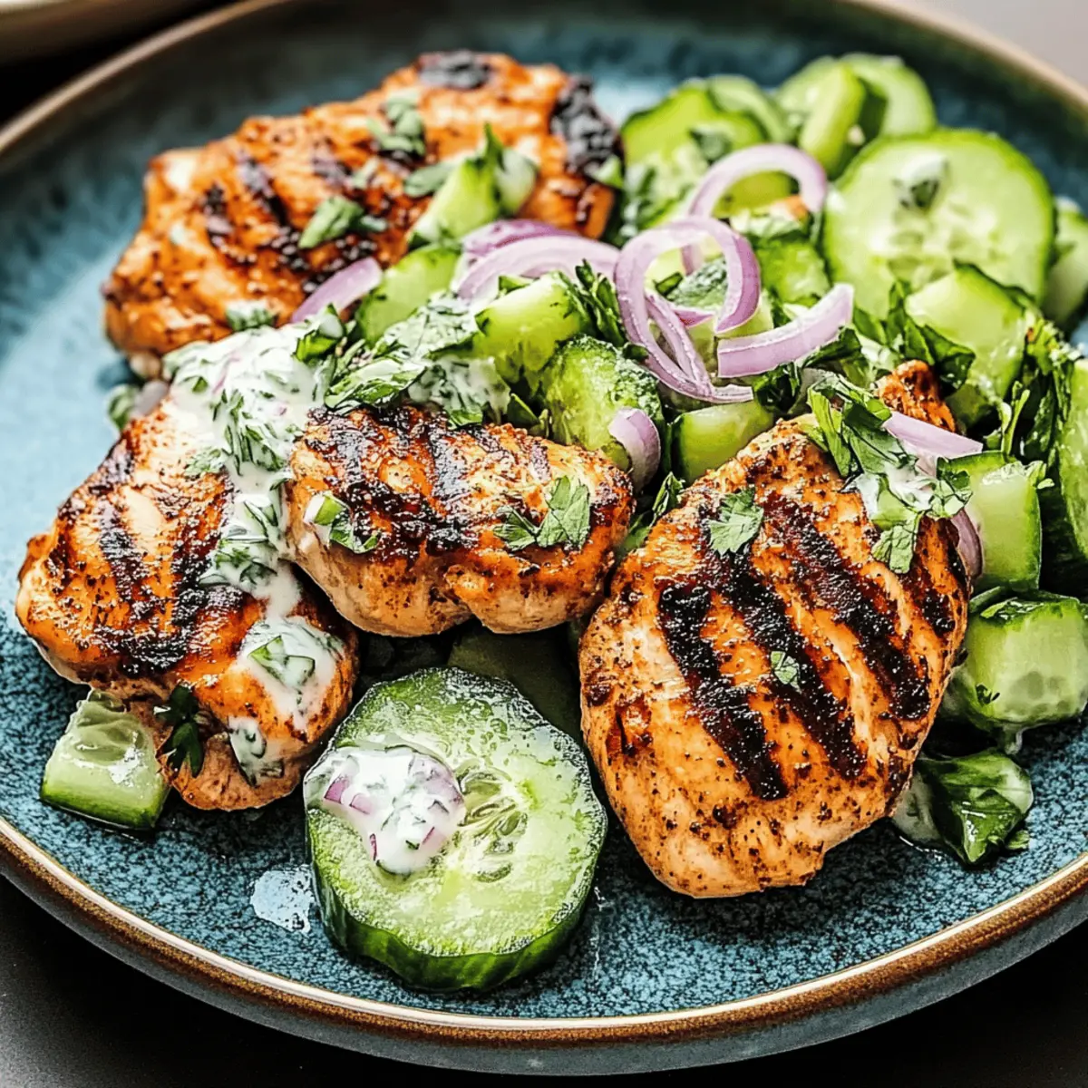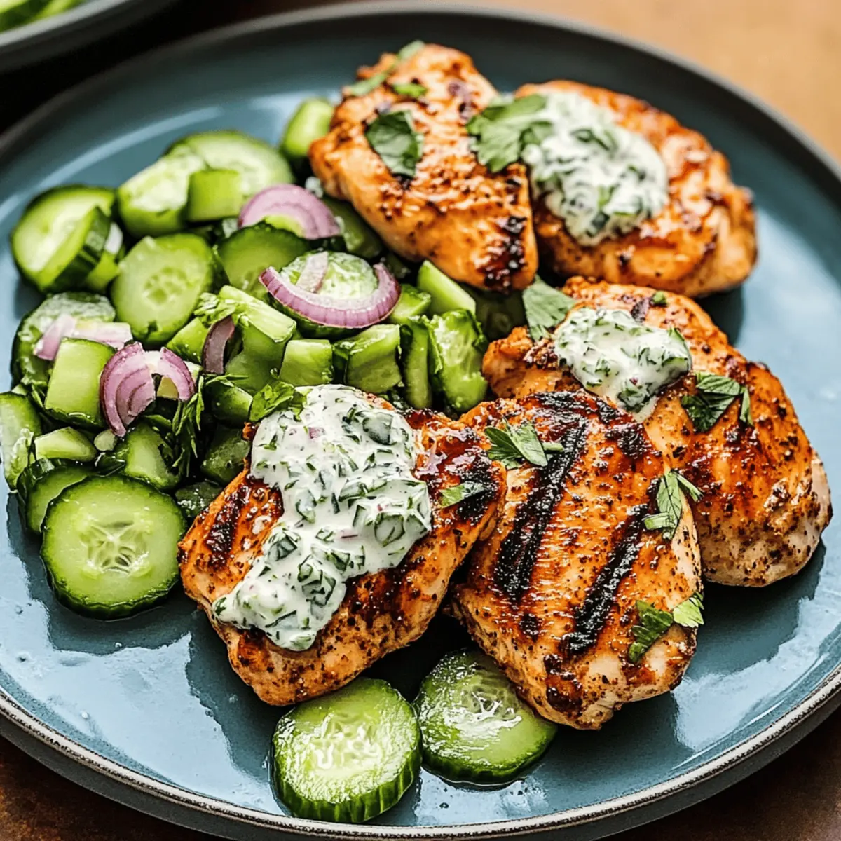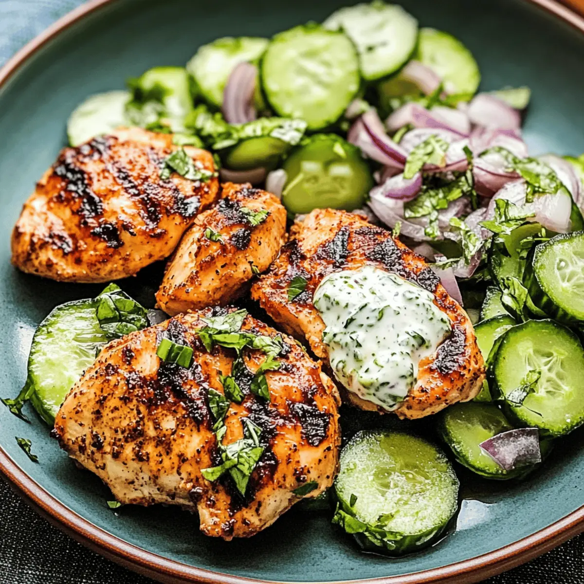 As the sun warms the evening sky, you might find yourself yearning for a dish that captures the vibrant essence of summer. Enter the Spicy Mediterranean Chicken with Creamy Cucumber Salad—a meal that not only brings energy to your table but also takes minimal time to prepare. Marinated in a tantalizing blend of Mediterranean spices, juicy chicken thighs are grilled to perfection, while a refreshing cucumber salad made with creamy Greek yogurt cools the heat. This family-friendly recipe not only caters to busy weeknights but transforms them into a flavorful feast that everyone can enjoy. Why not add a touch of Mediterranean magic to your dinner lineup tonight? Why is This Chicken Recipe a Must-Try? Quick and Easy: This recipe is designed for busy weeknights, taking just 30 minutes from start to finish. No more takeout when you can whip up something delicious at home! Flavor Explosion: Each bite of juicy chicken is beautifully complemented by a creamy cucumber salad, balancing spice with freshness, making it a truly satisfying meal. Family-Friendly: Loved by both kids and adults, this dish is perfect for gatherings, ensuring everyone leaves the table happy. It’s that kind of crowd-pleaser you can rely on! Healthy and Nutritious: Packed with high-protein chicken and fresh veggies, it’s perfect for health-conscious diners looking for a nutritious dinner option. Versatile Pairing: Serve it alongside fluffy rice or warm pita for a complete Mediterranean experience, or try it with our Spicy Maple Chicken for an adventurous twist! Spicy Mediterranean Chicken Ingredients • Create your culinary magic with these delightful ingredients! For the Chicken Marinade Boneless skinless chicken thighs – Juicy and tender, making for a perfect protein source; chicken breasts can also be used for a leaner option. Garlic – Freshly minced for that essential, pungent flavor in the marinade. Olive oil – Keeps the spices adhering to the chicken and ensures it remains moist during cooking. Lemon juice & zest – Enhances the citrusy punch; always opt for freshly squeezed juice for the best flavor. Smoked paprika – Infuses a smoky depth that elevates the chicken’s taste. Dried oregano – Offers that classic herbal note characteristic of Mediterranean cuisine. Cumin – Brings warm, earthy undertones that enhance the dish’s flavor profile. Salt & black pepper – Essential for seasoning; adjust according to your taste preferences. Cayenne pepper – Use to adjust the heat level in the marinade based on your preference. For the Creamy Cucumber Salad Persian cucumbers – Their crisp texture and mild flavor are perfect for the salad’s freshness. Red onion – Finely minced to add a mild sweetness that balances the dish. Plain Greek yogurt – Serves as a creamy base for the dressing, adding richness and protein. Fresh dill – Adds a burst of fresh flavor to the salad mix. Transform your dinner with this Spicy Mediterranean Chicken, where wholesome ingredients come together for a dish brimming with flavor and nutrition! Step‑by‑Step Instructions for Spicy Mediterranean Chicken Step 1: Marinate the Chicken In a mixing bowl, combine olive oil, minced garlic, smoked paprika, dried oregano, cumin, salt, cayenne pepper, black pepper, lemon juice, and lemon zest, whisking until well blended. Add the boneless skinless chicken thighs, ensuring they are thoroughly coated in the marinade. Cover the bowl and refrigerate for at least 2 hours, or overnight for maximum flavor infusion. Step 2: Preheat the Grill Prepare your cooking equipment by preheating the grill to medium-high heat, aiming for about 400°F. If using an oven, set it to the same temperature. This step is crucial for achieving those perfect grill marks and ensuring that the Spicy Mediterranean Chicken cooks evenly and retains its juiciness. Step 3: Grill the Chicken Place the marinated chicken thighs directly on the grill grates. Grill for 5 to 6 minutes on each side or until the internal temperature reaches 165°F. Ensure there’s a slight char, indicating a beautifully cooked exterior while keeping the meat tender. If using the oven, bake for 20 to 22 minutes, flipping halfway through. Step 4: Prepare the Cucumber Salad While the chicken cooks, chop the Persian cucumbers and finely mince the red onion in a large bowl. In a separate bowl, whisk together the plain Greek yogurt, lemon juice, minced garlic, fresh dill, salt, and black pepper to create a creamy dressing. Pour the dressing over the cucumber and onion mixture, tossing gently to combine the flavors. Step 5: Serve the Dish Once the Spicy Mediterranean Chicken is done cooking, remove it from the grill and allow it to rest for a few minutes. On a serving platter, arrange the grilled chicken thighs and generously top them with the creamy cucumber salad. Serve immediately and enjoy this delightful meal bursting with Mediterranean flavors! Make Ahead Options These Spicy Mediterranean Chicken and Creamy Cucumber Salad components are perfect for meal prep! You can marinate the chicken thighs up to 24 hours in advance, allowing the flavors to deepen—just remember to cover and refrigerate them during this time. The cucumber salad can be prepped in advance as well, but for the best texture, it’s recommended to dress it just before serving. If you mix the cucumbers and onion ahead of time, store them in an airtight container in the refrigerator for up to 3 days, and prepare the dressing to toss in right before enjoying. This way, you’ll have a delicious meal with minimal effort on those busy weeknights, ensuring you savor every bite of this vibrant dish! Storage Tips for Spicy Mediterranean Chicken Fridge: Store leftovers of your Spicy Mediterranean Chicken and creamy cucumber salad separately in airtight containers for up to 3 days to maintain their freshness and texture. Freezer: Freeze the marinated chicken thighs in a resealable bag for up to 3 months. Thaw overnight in the fridge