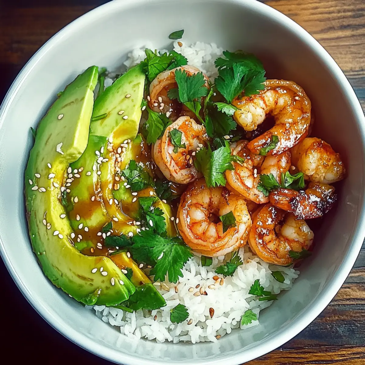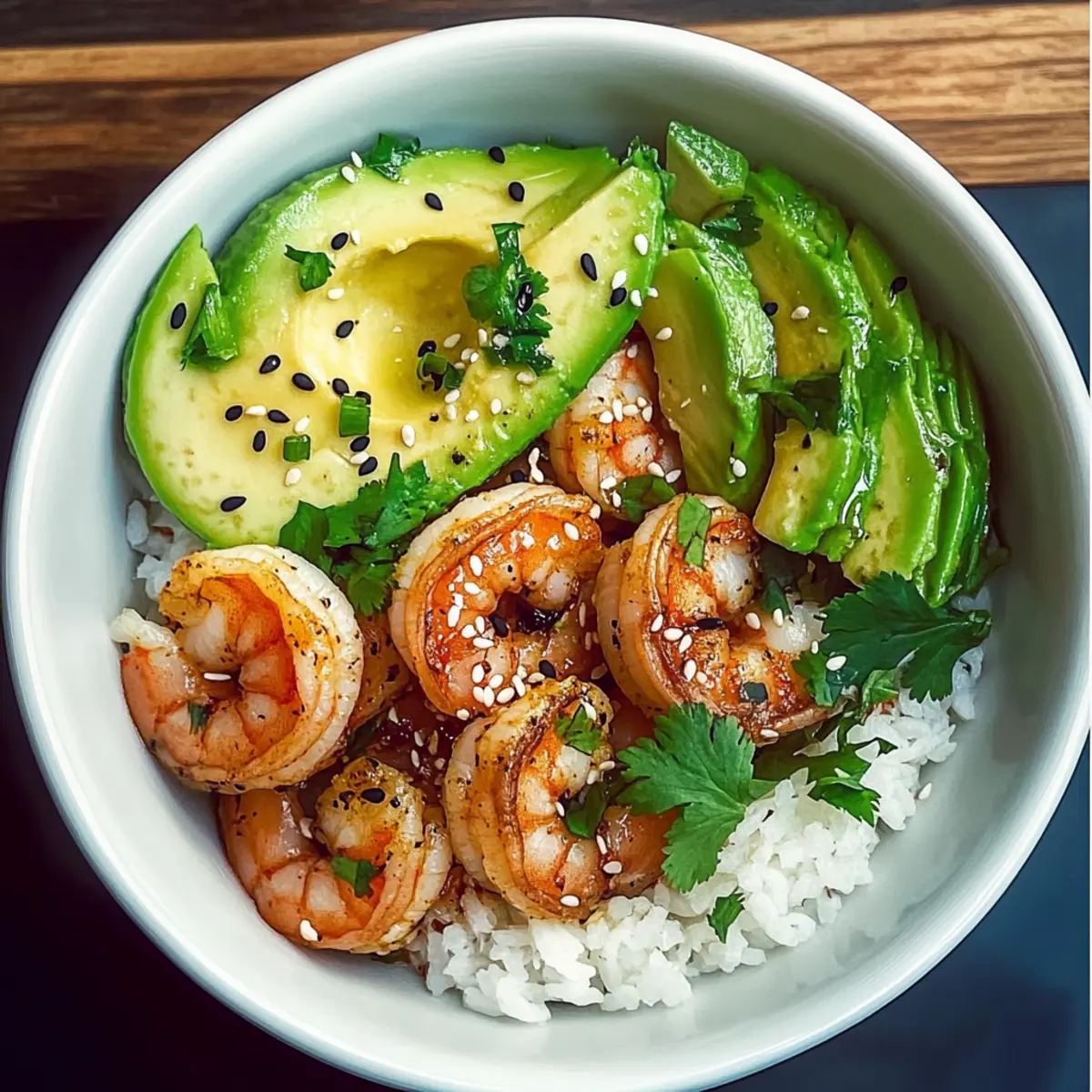The aroma wafts through my kitchen, a tantalizing promise of heat and richness that could easily transform any dinner into an adventure. Welcome to my Spicy Shrimp and Avocado Rice Bowl, where we marry succulent shrimp with creamy avocado and vibrant lime for a dish that’s as visually stunning as it is delicious. Perfect for anyone looking for a quick dinner that’s health-conscious yet satisfying, this recipe comes together in a snap, making it ideal for those hectic weeknights. Plus, it’s an absolute crowd-pleaser—guaranteed to impress your family or guests! Ready to dive into a bowl of flavor that’s both fresh and fiery? Let’s get started! Why is this Rice Bowl a Must-Try? Quick Preparation: In just under 30 minutes, you can whip up this delicious meal, making it the perfect choice for busy evenings. Healthy Ingredients: Packed with lean protein and healthy fats, this bowl is not only tasty but nutritious, too! Bold Flavors: The combination of spices and fresh lime creates an explosion of flavors that will tantalize your taste buds and keep you coming back for more. Endless Customization: Feel free to swap shrimp for chicken or even tofu to cater to different dietary needs—easy variations make this dish versatile. Impressive Presentation: The vibrant colors and textures—from succulent shrimp to creamy avocado—make it visually stunning, sure to wow your dinner guests. Perfect for Leftovers: If you have any leftovers, they store wonderfully, allowing you to enjoy this flavorful dish for lunch the next day! For more delicious meal options, try my Spicy Maple Rice or Cheesy Hamburger Rice for a delightful twist. Spicy Shrimp and Avocado Rice Bowl Ingredients For the Rice • Rice – A neutral base that absorbs the shrimp’s flavor; substitute with brown rice for added fiber. For the Shrimp • Shrimp – The star ingredient providing tender texture; use peeled and deveined shrimp for convenience. • Olive Oil – Helps create a smooth marinade and prevents shrimp from sticking to the skillet; use avocado oil as a substitute. • Lime Juice – Adds a bright, tangy kick to balance the richness of the avocado; lemon juice can be used in its absence. • Chili Powder – Provides a smoky warmth; adjust according to your heat preference. • Paprika – Enhances color and brings a subtle sweetness to the dish. • Cayenne Pepper – Adds lingering heat; adjust to suit your spice tolerance. • Salt and Pepper – Essential seasonings to enhance all flavors. For the Bowl Topping • Avocado – Offers a creamy texture that contrasts with the spiced shrimp; best sliced right before serving. • Cilantro – Adds fresh, aromatic brightness; use parsley for an alternative. • Sesame Seeds – Provide a toasty crunch and visual appeal; optional but recommended for garnish. • Lime Wedges – Serve on the side for added acidity, enhancing flavor with each squeeze. This Spicy Shrimp and Avocado Rice Bowl will not only satisfy your hunger but also deliver a deliciously healthy meal that you’ll want to make again and again! Step‑by‑Step Instructions for Spicy Shrimp and Avocado Rice Bowl Step 1: Cook the Rice Begin by preparing the rice according to the package instructions, which usually involves rinsing it thoroughly and boiling it in water. Once cooked, fluff it with a fork and keep it warm in the pot or covered in a separate bowl. The rice will serve as the delightful base for your Spicy Shrimp and Avocado Rice Bowl. Step 2: Make the Marinade In a medium mixing bowl, whisk together olive oil, lime juice, chili powder, paprika, cayenne pepper, salt, and pepper until the mixture is well-blended. This vibrant marinade not only enhances the shrimp’s flavor but also adds a pop of color. Take a moment to enjoy the enticing aroma as you prepare for the next step of the Spicy Shrimp and Avocado Rice Bowl. Step 3: Marinate the Shrimp Add the peeled and deveined shrimp to the marinade, stirring well to ensure each piece is coated evenly. Let the shrimp marinate for about 10-15 minutes, allowing time for the flavors to meld. You’ll notice the shrimp taking on a lovely hue from the spices, making the anticipation even more exciting as you get ready to cook. Step 4: Cook the Shrimp Heat a large skillet over medium-high heat, allowing it to become hot before adding the marinated shrimp. Cook the shrimp for 2-3 minutes on each side, or until they turn pink and opaque—this ensures they are perfectly tender. Keep a close eye on them to avoid overcooking, as they can become tough if left too long. Once cooked, remove them from the skillet and set aside. Step 5: Assemble the Bowl To create your beautiful Spicy Shrimp and Avocado Rice Bowl, start by dividing the warm rice evenly between two serving bowls. Next, artfully arrange the cooked shrimp and freshly sliced avocado on top of the rice. The creamy avocado pairs wonderfully with the spices from the shrimp, creating a dish that is both satisfying and visually appealing. Step 6: Garnish and Serve Finally, sprinkle a handful of chopped cilantro over the assembled bowls, followed by a dash of sesame seeds for that extra crunch. Serve the bowls hot, accompanied by lime wedges for an added zesty kick. Each squeeze of lime enhances the dish’s flavors, making the Spicy Shrimp and Avocado Rice Bowl a truly delightful meal to enjoy! Variations & Substitutions for Spicy Shrimp and Avocado Rice Bowl Embrace the chance to personalize your dish with these tasty swaps and twists! Each change can make your meal just as unique and flavorful. Quinoa Base: Swap rice for quinoa to boost protein and add a nutty flavor. Cauliflower Rice: For a low-carb twist, use cauliflower rice instead. It’s a light alternative that absorbs flavors beautifully. Grilled Chicken: Prefer a different protein? Substitute shrimp with grilled chicken for a satisfying and hearty option. Tofu Delight: Use cubed, marinated tofu for a plant-based protein that soaks up all 