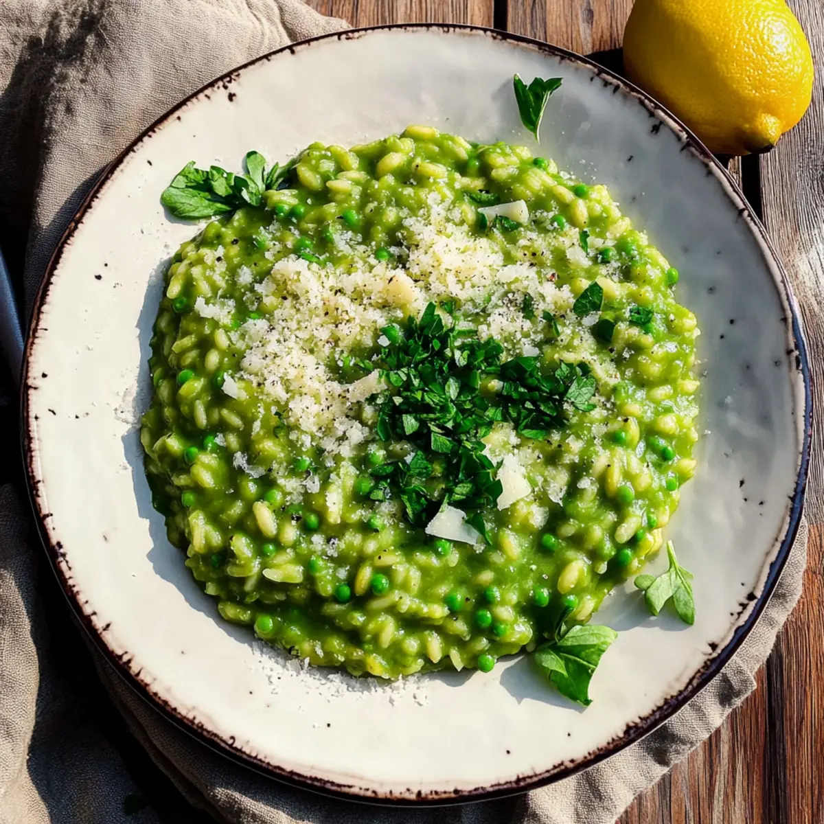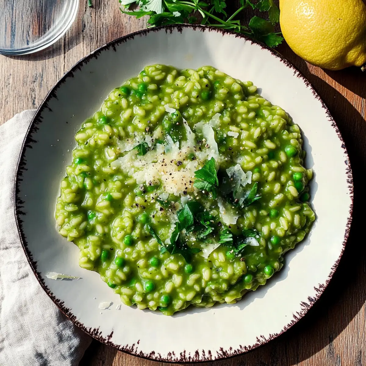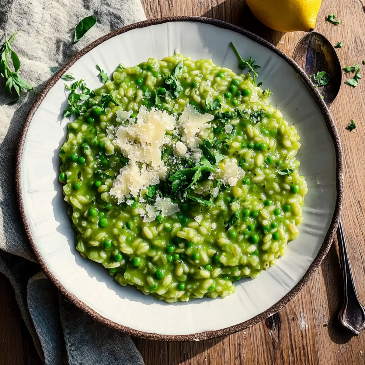 The bright scent of spring hangs in the air, and there’s nothing quite as delightful as a plate of creamy spring pea risotto to celebrate the season. This dish captures the essence of fresh flavors, with a silky pea purée that harmonizes beautifully with garlic, parsley, and a touch of lemon zest. What I love most about this spring pea risotto is that it’s not only a quick and satisfying meal but also a versatile side that complements everything from roasted chicken to grilled fish. Whether you’re hosting a get-together or simply craving something cozy, this recipe is sure to bring warmth to your table and smiles to your family. Have you ever tried making risotto at home? Let me take you through the effortless steps to create this creamy masterpiece! Why is Spring Pea Risotto a Must-Try? Creamy Delights: This risotto boasts a luscious, velvety texture that elevates comfort food to new heights. Fresh Flavors: With vibrant peas and zesty lemon, each bite bursts with the essence of spring. Quick & Easy: Perfect for busy weeknights, this dish comes together in just 30 minutes! Versatile Choice: Pair it with grilled salmon or serve it as a side to Mediterranean Chickpea Salad for a complete meal. Crowd-Pleaser: Impress your guests with this elegant yet simple dish that looks as fantastic as it tastes. Dive into the world of homemade goodness with this delightful risotto! Spring Pea Risotto Ingredients • Dive into the fresh flavors of spring with these simple yet essential ingredients! For the Risotto Arborio Rice – The key to creamy risotto; its starch content creates that coveted texture. Peas – Adds sweetness and bright color; fresh or frozen are both perfect choices. Shallots – For a touch of sweetness and depth; yellow onion works well as a substitute. Garlic – Fresh garlic amplifies the dish’s aroma; avoid powder for the best taste. Chicken Stock – The base for cooking; opt for vegetable stock if you prefer a vegetarian version. White Wine – Brings acidity and depth; you can substitute with stock or a splash of lemon juice if needed. For Freshness and Flavor Fresh Parsley & Basil – Introduce vibrant herbal notes and color; feel free to mix in other fresh herbs! Lemon Zest & Juice – Brightens the entire dish; lime can be a delightful alternative. Parmesan Cheese – Elevates the richness; choose a high-quality cheese for maximum flavor. Butter – Adds a luscious finish; swap with olive oil for a dairy-free option. Kosher Salt & Freshly Cracked Black Pepper – Essential seasonings to enhance everything; adjust to taste. Optional Garnish Pea Greens – Adds freshness and an appealing visual touch; perfect for a beautiful presentation. Let the vibrant ingredients of this spring pea risotto work their magic—you won’t be able to resist! Step‑by‑Step Instructions for Spring Pea Risotto Step 1: Prepare Pea Purée In a medium saucepan, heat a drizzle of olive oil over medium heat. Sauté 1 finely chopped shallot until soft and translucent, about 3-4 minutes. Add 2 cloves of minced garlic and 1 cup of fresh or frozen peas, stirring for another 2 minutes. Pour in 1 cup of chicken stock and simmer for 5 minutes. Blend this mixture with a handful of fresh parsley, basil, and the zest of 1 lemon until smooth and vibrant. Step 2: Toast Rice In a large, heavy-bottomed pot, melt 2 tablespoons of butter over medium heat. Add 1 cup of Arborio rice, stirring constantly for about 1 minute until the rice is well-coated and glossy. You should hear a gentle sizzle as it toasts. This step enhances the creamy texture of your spring pea risotto, so make sure the rice doesn’t brown. Step 3: Cook Risotto Pour in ½ cup of white wine and stir until absorbed, about 2 minutes. Gradually add 4 cups of warm chicken stock, one ladle at a time, allowing each addition to be fully absorbed before adding the next. Stir frequently for 20-25 minutes, and watch as the rice swells and becomes al dente, creating that signature creamy consistency. Step 4: Combine Ingredients Once the risotto is creamy but slightly firm to the bite, remove it from the heat and stir in the prepared pea purée. This will keep its vibrant color intact. Add another 2 tablespoons of butter, the juice of ½ lemon, and ½ cup of grated Parmesan cheese. Fold until everything is well combined and the cheese is melted, creating a beautifully creamy spring pea risotto. Step 5: Serve and Garnish Immediately plate your delicious spring pea risotto while it’s still warm. Garnish with extra grated Parmesan, chopped chives, and pea greens for a fresh finish. Optionally, drizzle with a little olive oil and crack some black pepper over the top. Enjoy this vibrant dish that celebrates the flavors of spring! How to Store and Freeze Spring Pea Risotto Fridge: Store leftover spring pea risotto in an airtight container for up to 2 days. Gently reheat on the stovetop or in the microwave, adding a splash of stock to restore creaminess. Freezer: If you want to freeze your risotto, portion it into freezer-safe containers. It can be frozen for up to 3 months. Thaw in the fridge overnight before reheating. Reheating: When reheating, whether from the fridge or freezer, add a bit of chicken or vegetable stock to bring back the creamy texture. Heat gently to avoid overcooking. Avoid Room Temperature: It’s best to avoid keeping the risotto at room temperature for more than 2 hours to ensure safety and freshness. Spring Pea Risotto Variations & Substitutions Feel free to experiment and make this spring pea risotto uniquely yours—let your creativity shine in the kitchen! Gluten-Free: Substitute regular stock with gluten-free vegetable or chicken stock for a safe alternative. Dairy-Free: Replace butter and parmesan with olive oil and nutritional yeast for a dairy-free version that doesn’t skimp on flavor. Fresh Herbs: Swap parsley and basil for mint or dill to provide a fresh twist that sings of spring. Nutty Flavor: Stir in toasted pine 