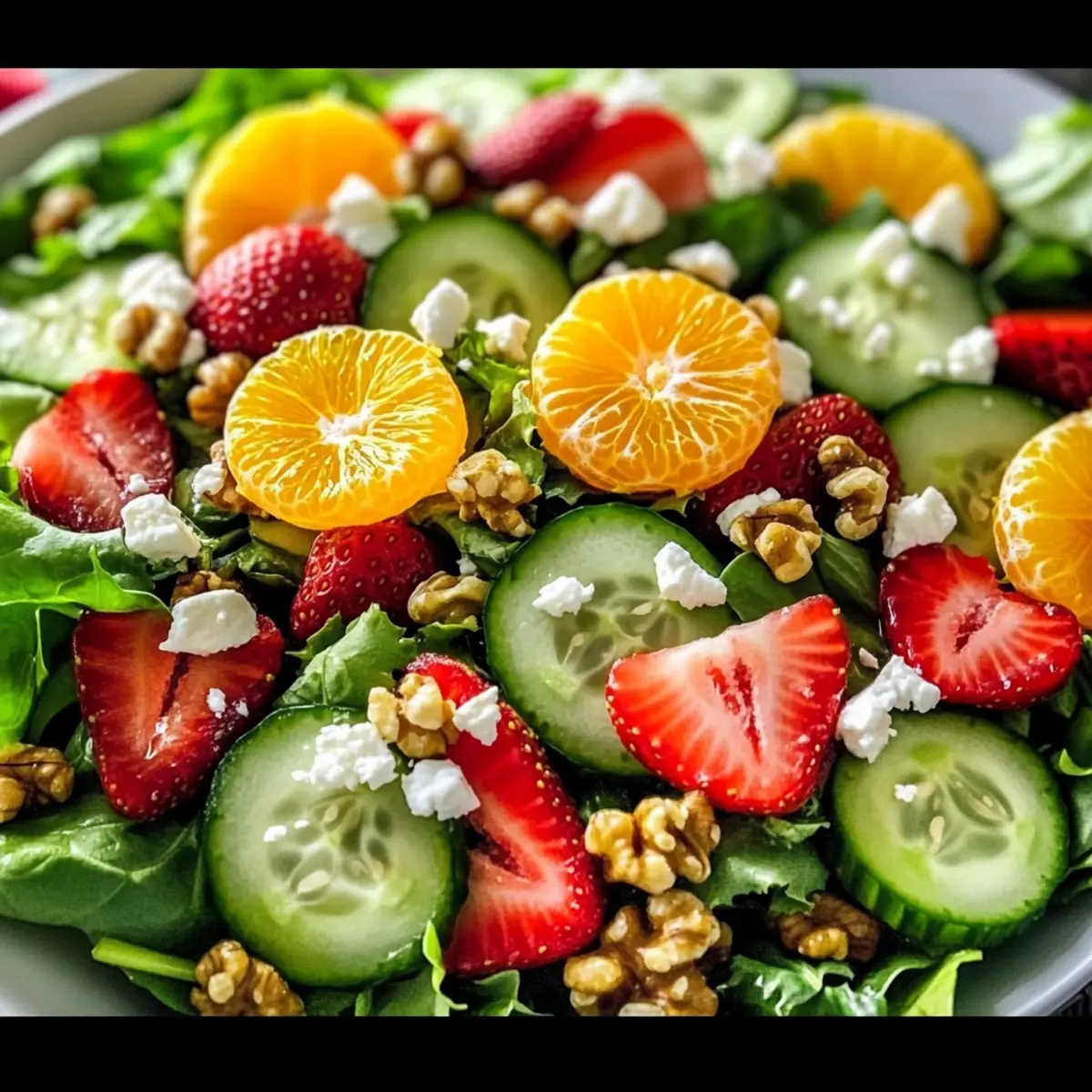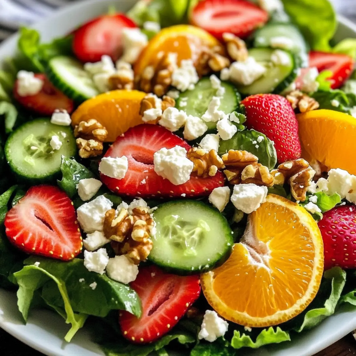 As the first blossoms of spring burst into life, I can’t help but feel inspired by the vibrant colors that surround us. This Vibrant Spring Salad with Citrus Vinaigrette embodies that spirit, featuring a refreshing blend of crisp greens and juicy fruits that brighten up any meal. With its simple preparation, this salad is not only a healthy choice but also an eye-catching dish that will have your guests reaching for seconds. The zesty citrus vinaigrette serves as the perfect complement, elevating the natural flavors of fresh strawberries, oranges, and mixed greens. Whether you’re hosting a picnic or looking for a light main course, this salad is bound to impress. Ready to bring a taste of sunshine to your table? Why is Spring Salad a Must-Try? Vibrant, this salad bursts with the colors and flavors of the season, making every bite a refreshing experience! Simple preparation makes it an ideal choice for busy days or last-minute gatherings. Versatile ingredients allow you to customize based on what’s fresh or on hand. Pair this dish with a light protein for a complete meal, or serve it alongside grilled meats for a delightful side. Don’t forget to check out other refreshing salads like the Cucumber Strawberry Salad or the delicious Mediterranean Chickpea Salad for more seasonal inspirations! Spring Salad with Citrus Vinaigrette Ingredients For the Salad • Mixed Salad Greens – 4 cups, any combination of spinach, arugula, or romaine to create a fresh, nutrient-rich base. • Strawberries – 1 cup, hulled and sliced for a sweet, vibrant color boost. Substitute with other berries like blueberries or raspberries if desired. • Orange – 1, segmented to add a juicy citrus bite, or swap with grapefruit for extra zest. • Cucumber – 1/2 cup, thinly sliced to provide refreshing crunch; English cucumbers are particularly delightful. • Red Onion – 1/4 cup, thinly sliced to impart mild sharpness; soak in water for 5 minutes if you prefer less pungency. • Feta Cheese – 1/4 cup, crumbled (optional) for creamy, salty contrast; consider goat cheese or omit for a vegan version. • Walnuts or Pecans – 1/4 cup, toasted to add depth and crunch; feel free to use seeds for a nut-free option. For the Citrus Vinaigrette • Olive Oil – 1/4 cup serves as the rich base for your dressing. • Orange Juice – 2 tablespoons enhances the vinaigrette’s flavor beautifully. • Lemon Juice – 1 tablespoon provides necessary acidity and balance to the dressing. • Honey or Maple Syrup – 1 teaspoon adds a touch of sweetness; adjust to taste if you like it sweeter. • Salt and Pepper – To taste for essential flavor enhancement in the vinaigrette. This Spring Salad with Citrus Vinaigrette is sure to brighten any meal, bringing a deliciously fresh twist to your table! Step‑by‑Step Instructions for Spring Salad with Citrus Vinaigrette Step 1: Prepare the Citrus Vinaigrette In a medium bowl, whisk together 1/4 cup of olive oil, 2 tablespoons of orange juice, 1 tablespoon of lemon juice, and 1 teaspoon of honey or maple syrup. Continue whisking until the mixture is well combined and slightly emulsified. Season the vinaigrette with salt and pepper to taste, then set it aside to allow the flavors to meld while you prepare the salad. Step 2: Combine the Salad Ingredients In a large serving bowl, add 4 cups of mixed salad greens followed by 1 cup of hulled and sliced strawberries, 1 segmented orange, and 1/2 cup of thinly sliced cucumber. To this vibrant mixture, gently add 1/4 cup of thinly sliced red onion to add a mild sharpness. Toss the ingredients lightly to combine and ensure an even distribution of colors. Step 3: Drizzle and Toss Gently drizzle the prepared citrus vinaigrette over the salad ingredients. Using salad tongs or your hands, carefully toss the salad to ensure that every piece is coated in the flavorful dressing. Be gentle to avoid bruising the greens, allowing the freshness of the Spring Salad with Citrus Vinaigrette to shine. Step 4: Add the Finishing Touches Just before serving, sprinkle 1/4 cup of crumbled feta cheese over the top for a creamy contrast. Then, add 1/4 cup of toasted walnuts or pecans to introduce a delightful crunch. These toppings not only enhance the texture but also add a depth of flavor, elevating your spring salad to new heights. Step 5: Serve Immediately Serve the vibrant Spring Salad with Citrus Vinaigrette right after preparation to maintain the freshness of the ingredients. For an eye-catching presentation, use a wide, shallow bowl that displays the colorful layers beautifully. This salad is perfect as a refreshing side dish or a light main course during spring gatherings. Make Ahead Options This Vibrant Spring Salad with Citrus Vinaigrette is a fantastic choice for busy home cooks seeking to save time during hectic weekdays! You can prepare the salad components (mixed greens, sliced strawberries, segmented oranges, cucumber, and red onion) up to 24 hours in advance. Simply store them in separate airtight containers in the refrigerator to keep everything fresh and crisp. The citrus vinaigrette can also be made ahead and stored for up to 1 week—just give it a good shake before using. When you’re ready to enjoy the salad, combine the prepped ingredients and drizzle the vinaigrette just before serving, topping with feta cheese and toasted nuts for that irresistible crunch. By prepping ahead, you’ll have a delightful spring salad ready at a moment’s notice! What to Serve with Vibrant Spring Salad with Citrus Vinaigrette This colorful salad is perfect for creating a light, refreshing meal that tantalizes the taste buds through seasonal delights. Grilled Chicken: Juicy, marinated chicken adds a savory depth, balancing the salad’s sweetness while complementing its vibrant flavors. Quinoa: Fluffy quinoa provides a hearty, nutty base that enhances the healthfulness of the meal. It’s a great plant-based protein option that keeps the dish sat