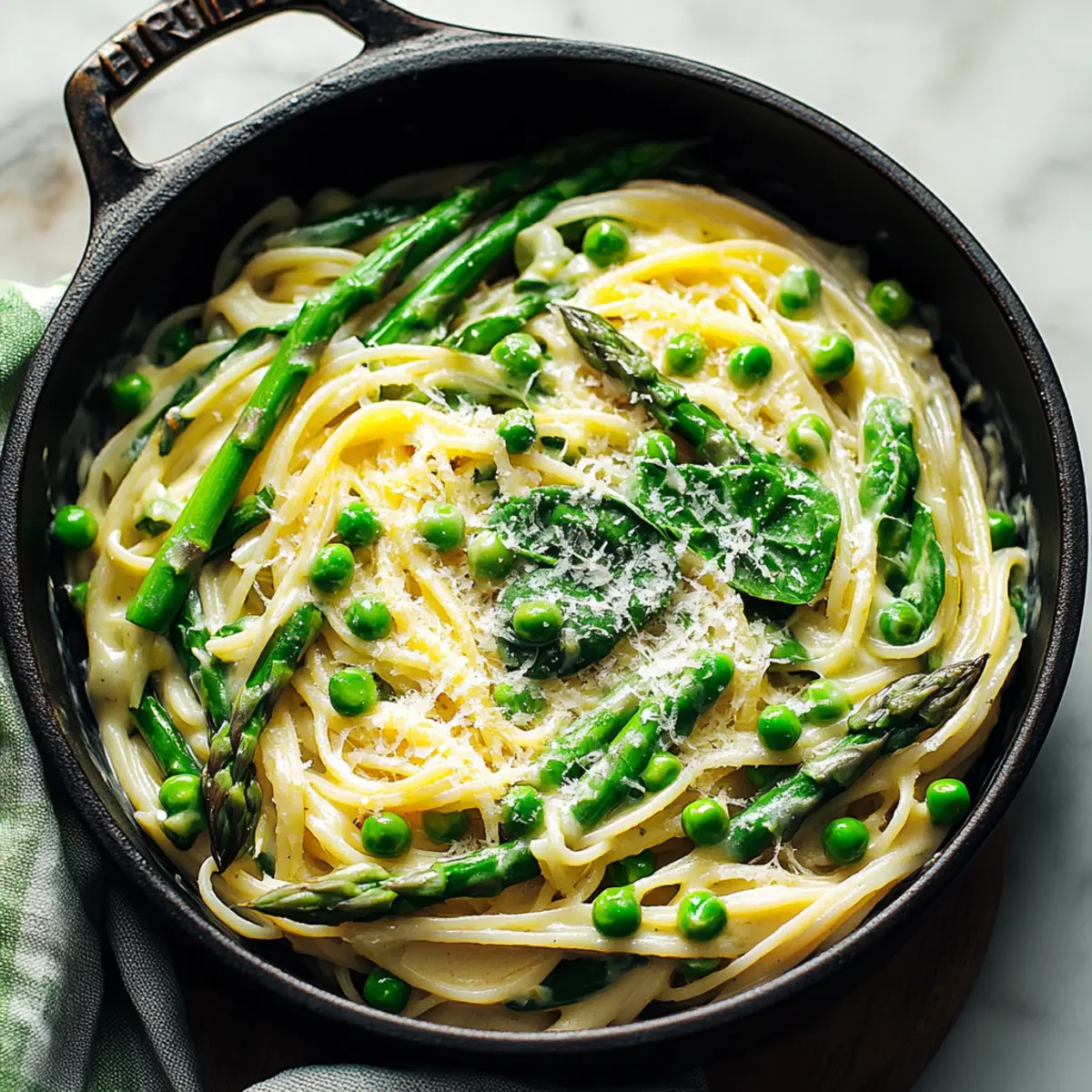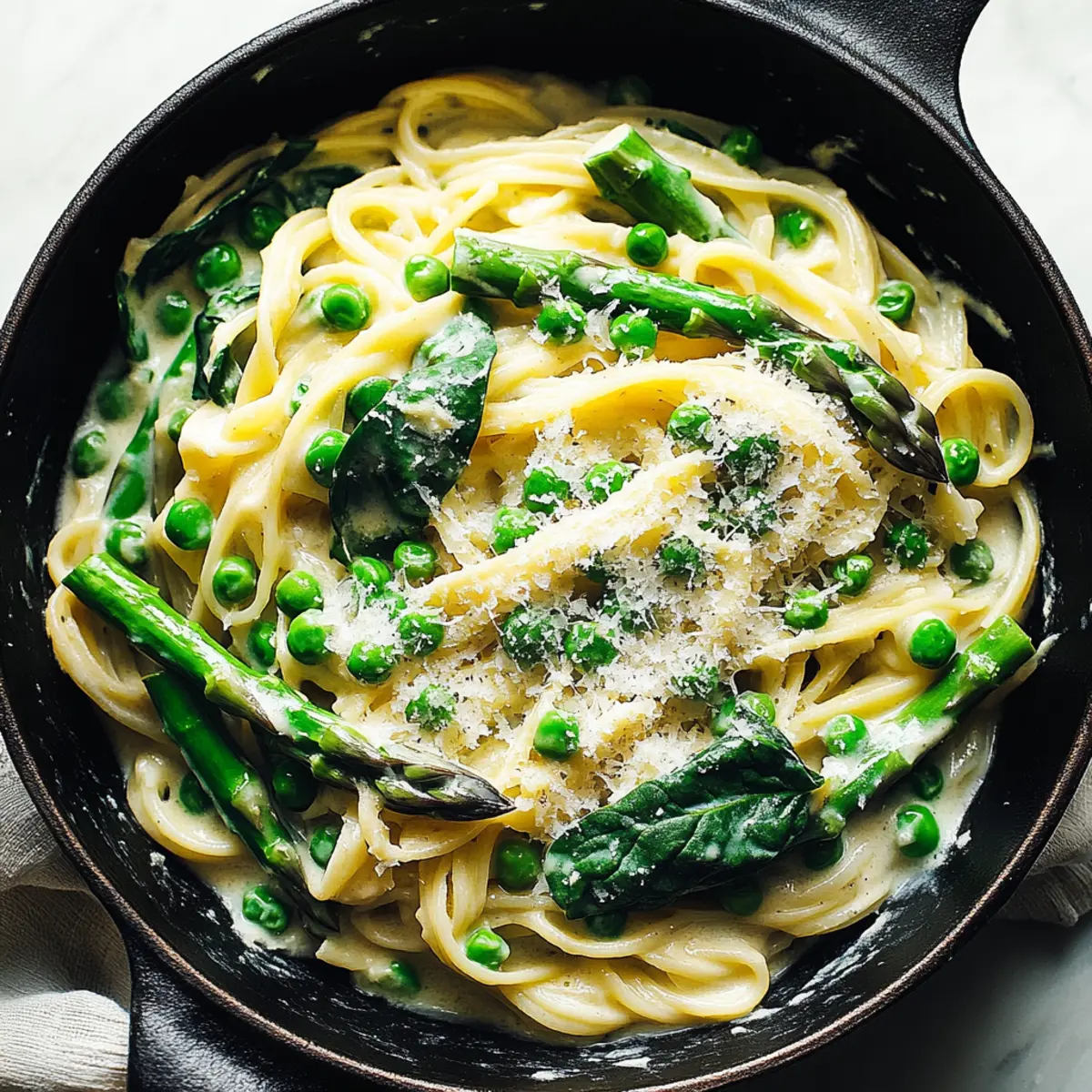 As I stood outside, the air filled with the promise of blooming flowers and longer days, I felt inspired to whip up something that encapsulated the beauty of spring. Enter my Creamy Spring Vegetable Pasta, a delightful symphony of crisp-tender asparagus, sweet peas, and velvety baby spinach that dances together in a luscious lemon-cream sauce. In just a few simple steps, you can turn fresh, seasonal vegetables into a light yet satisfying meal that’s perfect for any weeknight dinner or spring gathering. Not only is this dish a comfort food staple that celebrates vibrant flavors, but it’s also quick and easy to prepare, allowing you to effortlessly impress your family or friends. Ready to dive in and transform your dinner routine? Let’s get cooking! Why is this spring pasta a must-try? Freshness at Its Finest: This Creamy Spring Vegetable Pasta highlights seasonal veggies like asparagus and peas, ensuring every bite bursts with flavor. Quick and Easy: With minimal prep and just one pot required, dinner is a breeze. You can whip this up in under 30 minutes! Versatile Delight: Substitute ingredients based on your pantry or dietary needs—gluten-free pasta and seasonal produce make it adaptable for everyone! Comfort Food: The silky, lemon-infused cream sauce wraps around the pasta, elevating this dish into a comforting yet light meal that feels indulgent without the heaviness. Crowd Pleaser: Whether it’s a family dinner or a spring gathering, this dish is sure to impress, especially when paired with a simple side salad and crusty garlic bread for a complete experience. Spring Vegetable Pasta Ingredients For the Pasta • Pasta – Use any type; for gluten-free options, choose your favorite gluten-free pasta. For the Vegetables • Asparagus – Adds a vibrant, green, crisp-tender texture; fresh is best, but frozen can also work. • Frozen Peas – Sweet bursts of flavor and bright color; fresh peas can be substituted if available. • Baby Spinach – Provides a tender green element; can substitute with Swiss chard or kale. • Garlic – Imparts aromatic flavor; fresh minced garlic is preferred. For the Sauce • Olive Oil – For sautéing vegetables, adds healthy fats; any neutral oil can be used as a substitute. • Heavy Cream – Creates the creamy base for the sauce; can replace with half-and-half or a dairy-free alternative. • Lemon Juice and Zest – Brightens the sauce and enhances the freshness of the dish; essential for a delightful Spring Vegetable Pasta flavor. • Parmesan Cheese – Adds richness and depth to the sauce; can substitute with nutritional yeast for a vegan option. • Salt & Pepper – Essential for seasoning to taste. Step‑by‑Step Instructions for Creamy Spring Vegetable Pasta Step 1: Cook the Pasta In a large pot, bring well-salted water to a boil over high heat. Add your choice of pasta and cook until al dente, usually about 8-10 minutes, depending on the type. Reserve ½ cup of the pasta water before draining the rest in a colander. Keep the cooked pasta warm in the pot while you prepare the sauce. Step 2: Sauté Vegetables In a large skillet, heat 2 tablespoons of olive oil over medium heat. Once the oil is shimmering, add 2-3 cloves of minced garlic and sauté for about 30 seconds, until fragrant. Quickly add the chopped asparagus and cook for 3-4 minutes, stirring frequently, until it is crisp-tender. Then, throw in the frozen peas and baby spinach, cooking just until the spinach wilts, about 2 minutes. Step 3: Create Sauce Lower the heat to medium-low and pour in 1 cup of heavy cream along with the juice of one lemon. Stir to combine, bringing the mixture to a gentle simmer. After about 1-2 minutes, add ½ cup of freshly grated Parmesan cheese and the zest of the lemon, stirring continuously until the sauce thickens slightly and envelops the vegetables beautifully. Step 4: Combine Now, add the drained pasta directly into the skillet with the creamy spring vegetable sauce. Toss everything together to ensure the pasta is well coated, using the reserved pasta water to adjust the sauce’s consistency if needed. Stir until the sauce clings deliciously to the pasta and veggies, creating a lovely combination. Step 5: Plate Serve your Creamy Spring Vegetable Pasta in warm bowls, garnishing generously with additional Parmesan, freshly cracked black pepper, and a sprinkle of fresh herbs, if desired. The vibrant colors and creamy textures will make this light yet satisfying dish a feast for both the eyes and the palate. How to Store and Freeze Spring Vegetable Pasta Fridge: Store leftovers in an airtight container for up to 3 days. Reheat gently on the stove or in the microwave to maintain the creamy texture. Freezer: This dish can be frozen for up to 2 months. Place in a freezer-safe container, ensuring it’s sealed tightly to prevent freezer burn. Thawing: To enjoy frozen Spring Vegetable Pasta, transfer to the fridge a day before serving to thaw. Reheat on low heat, adding a splash of cream or pasta water if needed for creaminess. Reheating: When reheating, do so slowly to avoid separating the creamy sauce. Stir often and adjust consistency with reserved pasta water as required. Make Ahead Options These Creamy Spring Vegetable Pasta pieces are perfect for busy cooks who want to save time during the week! You can prep the vegetables—specifically chop the asparagus and measure the peas and spinach—up to 24 hours in advance, storing them in airtight containers in the refrigerator. Additionally, you can cook the pasta and toss it with a drizzle of olive oil to prevent sticking, keeping it good for up to 3 days. When you’re ready to serve, simply sauté the garlic, add in your prepped veggies, create the sauce, and combine everything with the pasta. This way, you’ll have a delicious meal ready in no time without sacrificing flavor or quality! Expert Tips for Spring Vegetable Pasta Mise en Place: Prepare all ingredients before you start cooking