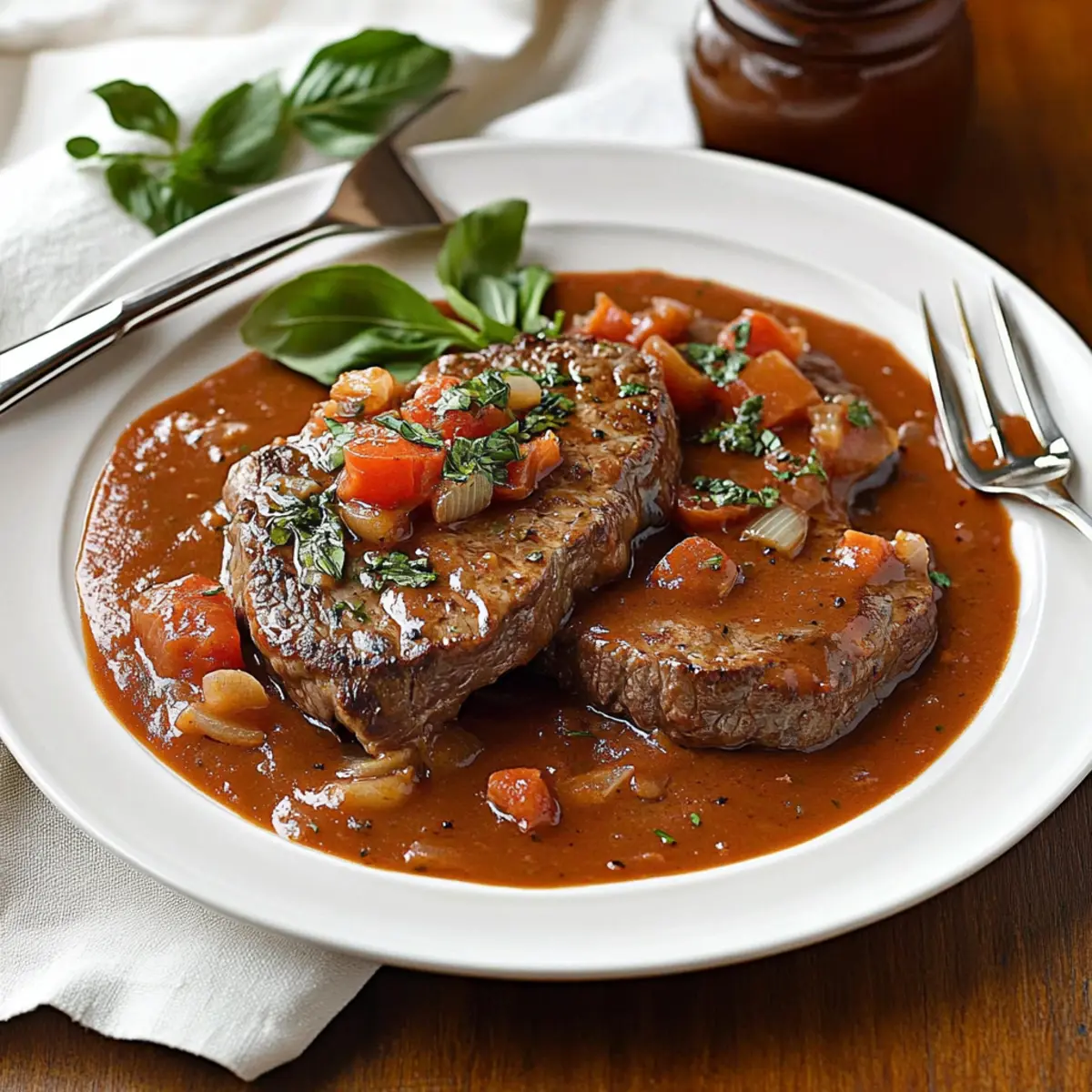 As I was rummaging through my pantry one rainy afternoon, I stumbled upon a can of plump tomatoes and a beautiful cut of chuck steak. That unexpected encounter ignited the urge to create something comforting: an Italian classic—Steak Pizzaiola! This authentic Steak Pizzaiola recipe brings tender, savory steak simmered in a luscious tomato sauce, wrapping you in warmth with every enticing spoonful. Not only is this dish incredibly straightforward to prepare, but it also unlocks a world of flavor that makes even the busiest weeknight feel like a special occasion. Whether you’re whipping it up for a cozy dinner at home or impressing friends at a gathering, this dish is sure to be a crowd-pleaser. Curious to dive into the mouthwatering process? Let’s get cooking! What Makes Steak Pizzaiola Special? Authentic Italian Flavor: Each bite of this dish transports you straight to Italy, with savory, succulent steak perfectly melded in rich tomato sauce. Effortlessly Simple: The recipe requires just a few common ingredients and straightforward techniques, making delicious home-cooked Italian food accessible for everyone. Versatile Serving Options: Whether you pair it with garlic mashed potatoes, crusty bread, or serve it over your favorite pasta, this dish is incredibly versatile and satisfying. Crowd-Pleasing Delight: Impress family and friends with a hearty meal that’s sure to evoke compliments, just like my Savory Onion Steak or quick yet delightful Garlic Butter Steak. Leftover Magic: And if there are any leftovers, they make a fantastic lunch or dinner the next day, as the flavors continue to deepen. Enjoy this comforting dish, and you’ll find yourself falling in love with each and every bite! Steak Pizzaiola Recipe Ingredients For the Sauce • Olive Oil – Adds richness and assists in browning the steak; optional for lighter versions. • Large Onion – Provides sweetness and depth to the sauce; substitute with shallots for a milder flavor. • Garlic Cloves – Adds aromatic qualities; use more garlic for a stronger flavor. • Hot Cherry Pepper – Optional for heat and flavor complexity; substitute with bell pepper for a milder taste. • Tomato Paste – Concentrates the tomato flavor in the sauce; can be replaced by fresh tomatoes if preferred. • Peeled Plum Tomatoes (28 oz can) – The primary base for the sauce, contributing sweetness and texture; San Marzano tomatoes are ideal if accessible. • Bay Leaf – Adds a subtle earthiness; remove before serving. • Oregano – Infuses the dish with herbal notes; fresh oregano can be used for a more vibrant flavor. • Salt – Enhances all other flavors; adjust based on taste preferences. • Dried Basil – Complements tomato flavors; substitute fresh basil for a more aromatic profile. • Pepper – To taste, balancing flavors with a mild spiciness. For the Steak • Chuck Steaks – Main protein, chosen for its flavor and tenderness when braised; avoid stewing beef to maintain quality. This Steak Pizzaiola recipe is the perfect blend of simple ingredients and rich tastes, making it a wonderful choice for family dinners or gatherings! Step‑by‑Step Instructions for Steak Pizzaiola Recipe Step 1: Heat the Oil In a large skillet, heat 2 tablespoons of olive oil over medium heat until shimmering. Carefully add the chuck steaks, ensuring they fit without crowding. Sear the steaks for about 4-5 minutes on each side until they are beautifully browned. This step locks in flavors and creates a rich base for your steak pizzaiola. Step 2: Sauté the Aromatics Once the steaks are browned, carefully remove them from the skillet and set them aside on a plate. In the same skillet, add one sliced large onion and 3 minced garlic cloves. Sauté for about 4-5 minutes until the onion becomes soft and translucent, stirring often to avoid burning. The aromatic scents will fill your kitchen, setting the stage for the savory sauce. Step 3: Add the Heat and Tomato Paste If using, add one chopped hot cherry pepper to the skillet for a spicy kick, along with 2 tablespoons of tomato paste. Cook these ingredients for another minute, stirring to combine, allowing the paste to caramelize slightly. The mixture will darken in color, deepening the flavors as you build your steak pizzaiola sauce. Step 4: Create the Sauce Base Stir in one can of peeled plum tomatoes, along with one bay leaf, 1 teaspoon of dried oregano, and salt and pepper to taste. Increase the heat to bring everything to a gentle boil, stirring occasionally. Watch for the sauce to bubble vigorously, as this indicates it is ready for the next step in your steak pizzaiola journey. Step 5: Simmer the Steak Return the seared chuck steaks to the skillet, nestling them into the sauce. Reduce the heat to low, cover the skillet, and let it simmer for about 1.5 hours. During this time, the steak will become tender, soaking up all the rich tomato flavors. Occasionally peek under the lid, ensuring the sauce stays bubbling without drying out. Step 6: Final Adjustments After 1.5 hours, uncover the skillet and check the tenderness of the steak; it should be fork-tender. If needed, simmer for an additional 10-15 minutes. Taste the sauce and adjust seasoning with more salt, pepper, or fresh herbs. The aroma of your finished steak pizzaiola will undoubtedly whet your appetite. Step 7: Serve and Enjoy Remove the bay leaf before serving. Spoon the rich, hearty sauce over the tender steak and serve hot, ideally paired with crusty Italian bread or over pasta. Each bite of this steak pizzaiola recipe promises a comforting, savory experience that captures the essence of classic Italian cooking. Make Ahead Options These Steak Pizzaiola Recipe preparations are perfect for busy weeknights, allowing you to enjoy a homemade Italian feast without the last-minute rush! You can marinate the chuck steak in olive oil, salt, and your choice of seasoning up to 24 hours in advance, ensuring the meat is infused with flavor