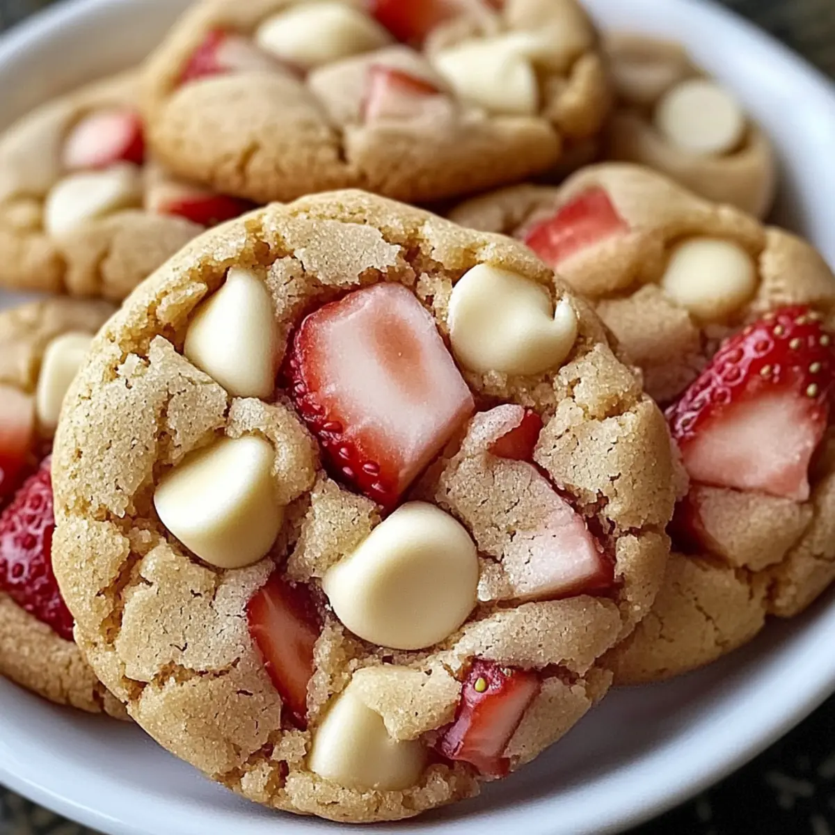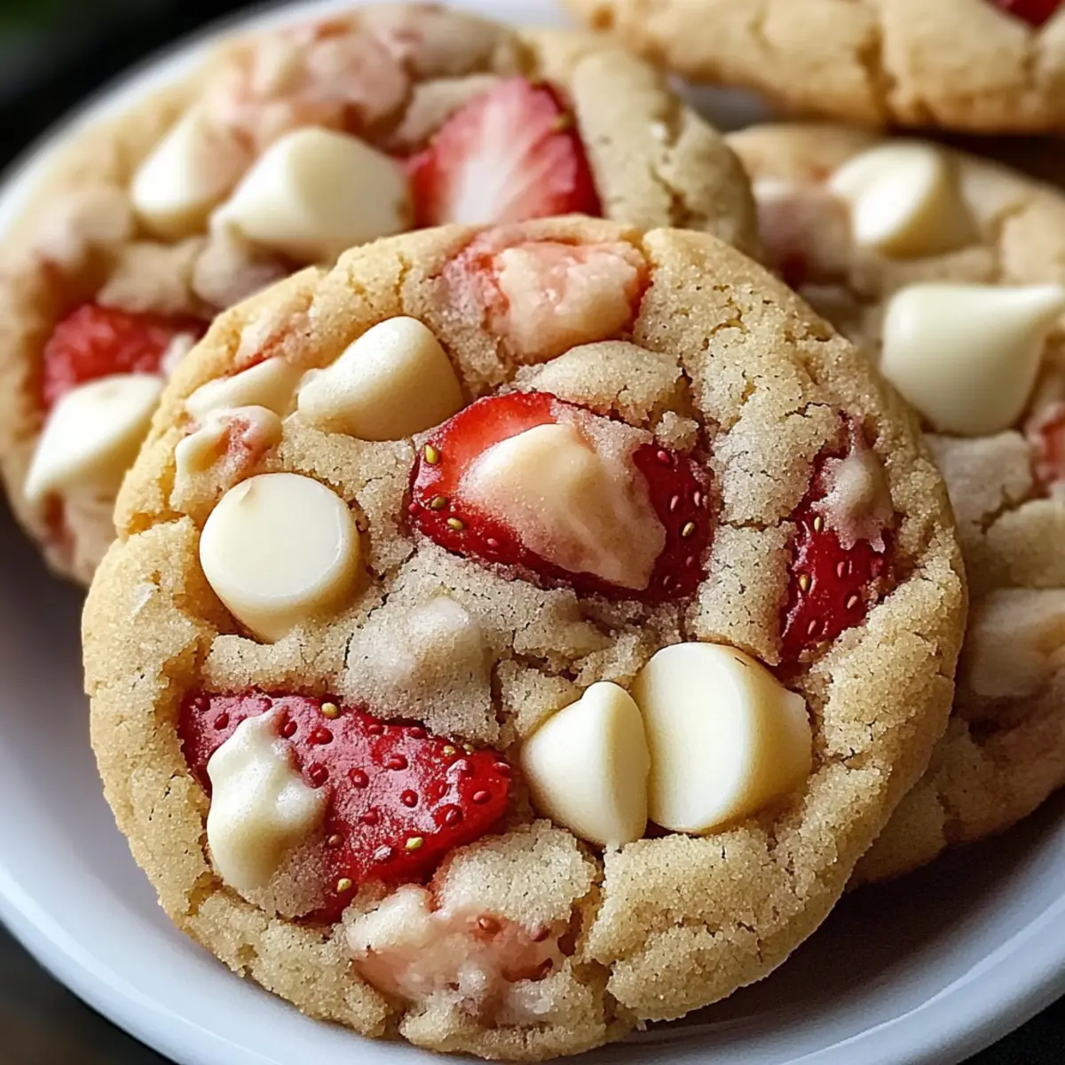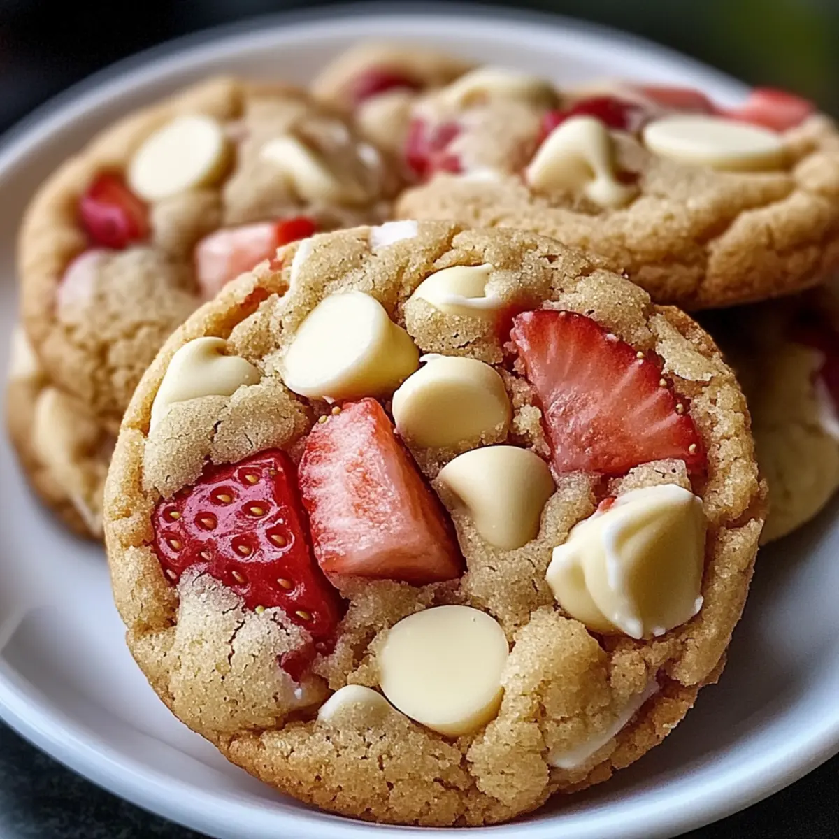 As the aroma of melting white chocolate and the sweet scent of fresh strawberries waft through my kitchen, I can’t help but smile at the magic unfolding. These Soft Strawberry and White Chocolate Chip Cookies are my go-to when I want to impress without spending hours in the kitchen. With a recipe that’s not only quick and simple but also friendly to both novice bakers and seasoned pros, these cookies offer a delightful blend of chewy texture and fruity freshness. They’re sure to impress at any gathering while also catering to your cravings for something homemade and comforting. Whether you’re a cookie aficionado or just looking to whip up a special treat for a cozy afternoon, these beauties are adaptable and oh-so-satisfying. Curious to add your twist to this luscious dessert? Let’s dive in! Why are these cookies a must-try? Irresistible Flavor: The combination of fresh strawberries and white chocolate creates a balance of sweetness and fruity goodness that’s hard to resist. Easy to Make: With minimal steps, you’ll be able to whip up a batch in no time, making them perfect for busy bakers seeking a delightful treat. Versatile Swaps: Feel free to experiment by substituting fresh strawberries with frozen ones or swapping white chocolate for dark or milk chocolate, offering a customizable baking experience. Texture Bliss: Expect a lovely contrast of chewy and slightly crispy edges, making each bite a textural delight. Perfect for Any Occasion: Whether paired with your morning coffee or served at a gathering, these cookies are guaranteed to wow your guests! So why not make a batch today? If you’re in the mood for other sweet delights, check out my Decadent Chocolate Peanut or Chocolate Eclairs Discover recipes! Strawberry and White Chocolate Chip Cookies Ingredients For the Cookies All-Purpose Flour – Provides structure to the cookies; be sure to measure correctly to avoid tough cookies. Baking Soda – Acts as a leavening agent to help the cookies rise perfectly. Baking Powder – Works in conjunction with baking soda for a lighter texture. Salt – Enhances the overall flavor, balancing the sweetness beautifully. Unsalted Butter – Adds richness and contributes to a tender texture; soften before use. Granulated Sugar – Offers sweetness and aids in browning; essential for that golden hue. Brown Sugar – Adds moisture and a hint of caramel flavor, creating a delightful depth. Large Egg – Binds ingredients together and helps the cookies rise; room temperature is best. Vanilla Extract – Infuses warmth and depth of flavor; always opt for pure vanilla for the best results. Fresh Strawberries – Provides juicy, fruity flavor; if fresh isn’t available, thawed, drained frozen strawberries work well. White Chocolate Chips – Adds creamy sweetness that perfectly complements strawberries; feel free to use dark or milk chocolate as a substitute. Optional Cornstarch – Can be added for extra softness, giving cookies a dreamy texture. Step‑by‑Step Instructions for Strawberry and White Chocolate Chip Cookies Step 1: Preheat the Oven Begin by preheating your oven to 350°F (175°C). While it warms, line two baking sheets with parchment paper to ensure easy removal and minimum sticking. This initial step sets the stage for delicious Strawberry and White Chocolate Chip Cookies that bake evenly, so don’t skip it! Step 2: Prepare the Dry Ingredients In a medium-sized mixing bowl, whisk together 2 cups of all-purpose flour, 1 teaspoon of baking soda, 1 teaspoon of baking powder, ½ teaspoon of salt, and optional 1 tablespoon of cornstarch if you desire extra softness. This mixture is essential for the perfect cookie texture, so combine until no dry clumps remain before setting it aside. Step 3: Cream the Butter and Sugars In a large mixing bowl, use an electric mixer to cream together ½ cup of softened unsalted butter, ½ cup of granulated sugar, and ½ cup of packed brown sugar until the mixture is light and fluffy, typically about 3-4 minutes. The right creaminess is crucial to achieve that melt-in-your-mouth quality in each Strawberry and White Chocolate Chip Cookie. Step 4: Add Egg and Vanilla Next, beat in the large egg and 1 teaspoon of vanilla extract to the creamed butter and sugars. Continue mixing until everything is fully combined and the mixture appears smooth and cohesive. The addition of vanilla accentuates the cookie’s flavors, making each bite absolutely delightful. Step 5: Combine Wet and Dry Mixtures Gradually add the dry ingredient mixture to the wet ingredients, mixing on low speed just until combined. Be careful not to overmix, as this can lead to denser cookies. It’s vital to maintain the lightness that makes these Strawberry and White Chocolate Chip Cookies a treat worth savoring. Step 6: Fold in the Strawberries and Chocolate Gently fold in 1 cup of diced fresh strawberries and 1 cup of white chocolate chips using a spatula or wooden spoon. Take your time with this step, blending until just incorporated. You want to keep the strawberries intact for bursts of fruity flavor in every cookie, ensuring they shine through. Step 7: Scoop the Cookie Dough Using a tablespoon or cookie scoop, portion the dough onto the prepared baking sheets, spacing them about 2 inches apart. Aim for uniform cookie sizes for even baking. As you prepare them, admire the colorful dough, filled with bits of strawberry and white chocolate, which promises to be a tasty treat. Step 8: Bake the Cookies Place the baking sheets in the preheated oven and bake for 10 to 12 minutes. Watch for the edges to turn lightly golden while the centers remain soft; this visual cue helps guarantee the perfect chewy texture inside each Strawberry and White Chocolate Chip Cookie. Step 9: Cool on the Baking Sheets Once baked, remove the cookie sheets from the oven and let them cool on the sheets for about 5 minutes. This helps the cookies firm up slightly before moving them. The warm, sweet aroma 