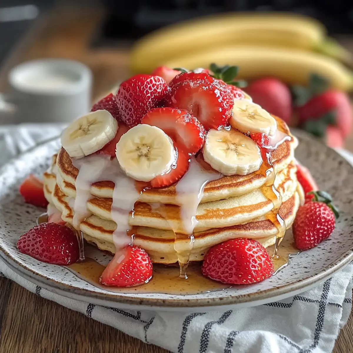 Enjoy the delightful Strawberry Banana Pancakes, a fluffy breakfast treat that brings joy to your mornings.