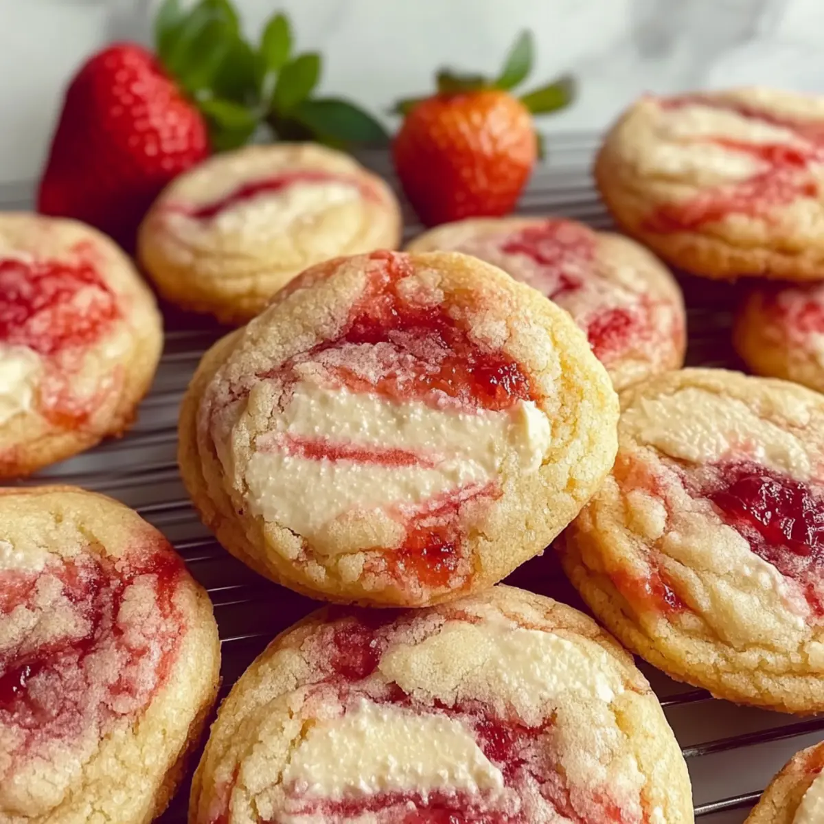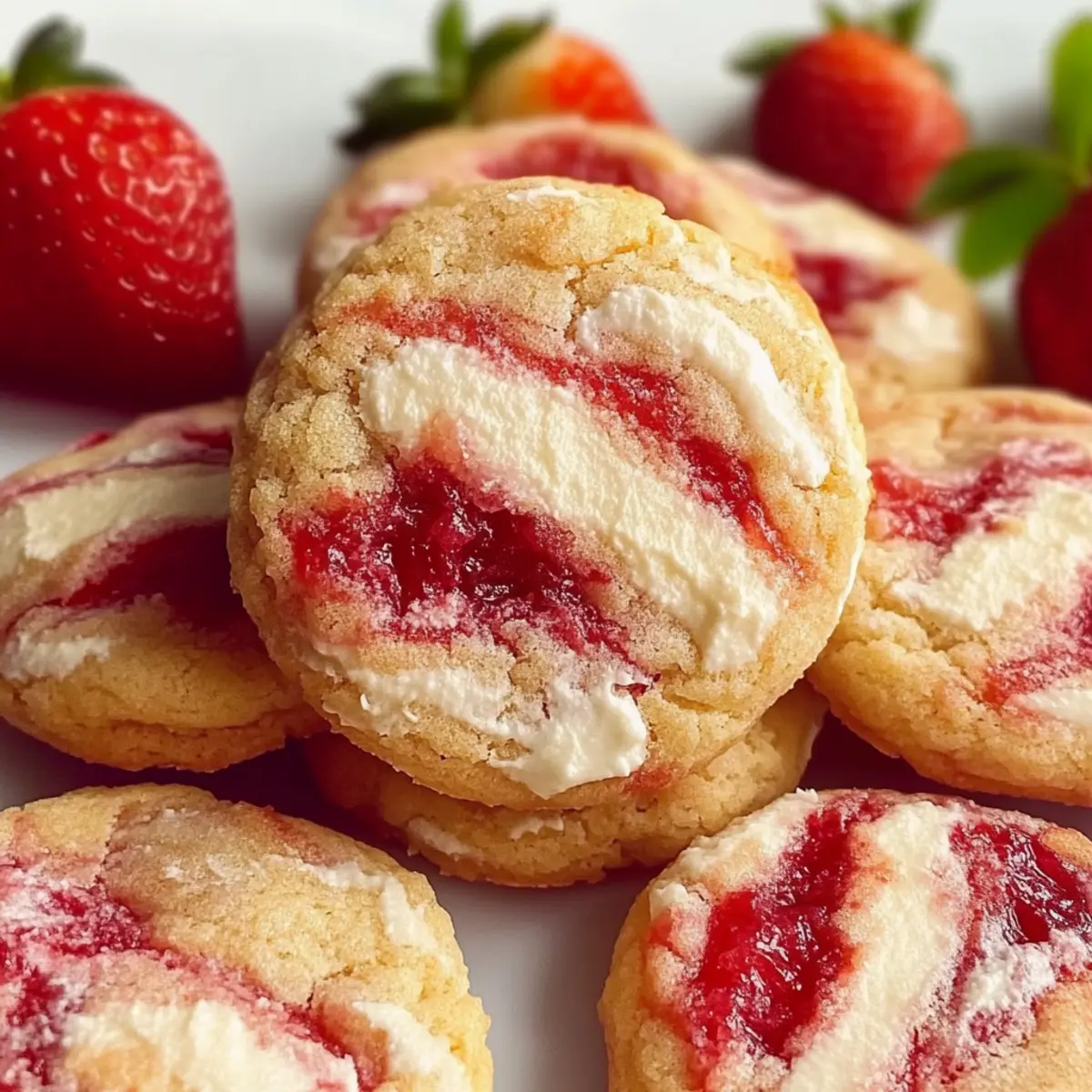 As I stood in my kitchen, the sweet scent of strawberries filled the air, whisking me away to sunny picnic days filled with laughter. That’s when the idea struck me—why not merge that joyful memory with a cookie that could light up any dessert table? Enter my Strawberry Cheesecake Cookies! These delightful treats combine a soft, tender cookie base with a luscious cheesecake filling and pockets of vibrant strawberry jam, making them the perfect indulgence for impressing guests or enjoying a cozy night in. What’s more, they’re incredibly customizable; swap in your favorite fruits or extracts for a personal twist. Whether you’re a seasoned baker or just dipping your toes into the world of homemade sweets, this recipe promises to bring a smile to your face. Curious about how to make these dreamy cookies? Let’s dive in! Why Are These Cookies So Special? Decadent Flavor: These Strawberry Cheesecake Cookies offer the rich, creamy taste of cheesecake combined with the fresh burst of strawberries. It’s a match made in dessert heaven! Endless Customization: Whether you prefer raspberries or blueberries, this recipe allows you to play with flavors, making it adaptable to your whims. Effortless Elegance: With just a few steps, you’ll create a dessert that looks and tastes gourmet, perfect for impressing guests or indulging yourself. Quick Assembly: Each component can be made ahead of time for a stress-free baking experience. Just assemble and bake for fresh cookies anytime! Perfect Pairing: Enjoy them with a warm cup of tea or coffee, or try serving them with a side of mixed berries for a refreshing meal. These cookies elevate your dessert game without requiring expert skills. Want to try another delightful treat? Check out my Brownie Cheesecake Indulge for even more deliciousness! Strawberry Cheesecake Cookie Ingredients • Let’s gather the essentials for these Strawberry Cheesecake Cookies that will elevate your baking game! For the Cheesecake Filling Cream Cheese – Ensures a rich and creamy center; make sure it’s cold for easy mixing. Granulated Sugar – Sweetens the filling; brown sugar can be used for a deeper flavor. Vanilla Extract – Adds aromatic sweetness; opt for pure vanilla for the best taste. For the Strawberry Jam Strawberries – The star fruit; fresh strawberries bring the perfect sweetness—feel free to substitute with raspberries or blueberries if desired. Sugar – Enhances the sweetness of the jam; adjust to your taste preferences. For the Cookie Dough Flour – Provides structure; careful measuring avoids dense cookies; gluten-free flour can be used if needed. Baking Powder – Helps cookies rise; don’t skip this for that tender texture! Baking Soda – Works in tandem with baking powder for a perfect rise. Salt – Balances out sweetness and enhances flavors. Butter – Brings richness; make sure it’s softened for mixing. Egg – Acts as a binder; room temperature ensures better mixing. For the Garnish Powdered Sugar – Adds a decorative touch; optional but highly recommended for that finishing flair. Gather these ingredients and get ready for a baking adventure that results in delightful Strawberry Cheesecake Cookies your loved ones will adore! Step‑by‑Step Instructions for Strawberry Cheesecake Cookies Step 1: Prepare Cheesecake Filling In a mixing bowl, combine 8 ounces of cold cream cheese, 1/3 cup of granulated sugar, and 1 teaspoon of vanilla extract. Use an electric mixer on medium speed until the mixture is smooth and creamy, about 2-3 minutes. Scoop the filling into small discs using a cookie scoop, and place them on a parchment-lined baking sheet. Freeze the discs for at least 1 hour until they are solid. Step 2: Make Strawberry Jam While the cheesecake filling is freezing, prepare the strawberry jam by dicing 2 cups of fresh strawberries and placing them in a saucepan over medium heat. Add 1/2 cup of sugar and stir occasionally, mashing the strawberries gently with a fork. Cook for about 45 minutes, until the mixture thickens to a jam-like consistency. Once thickened, remove from heat and let it cool completely. Step 3: Dough Preparation In one bowl, whisk together 2 cups of all-purpose flour, 1 teaspoon of baking powder, 1/2 teaspoon of baking soda, and 1/4 teaspoon of salt. In a separate large bowl, beat 1/2 cup of softened butter and 1 cup of granulated sugar until fluffy, around 3-4 minutes. Then, add 1 room-temperature egg and 1 teaspoon of vanilla extract, mixing until well combined. Gradually incorporate the dry ingredients into the wet mixture until just combined. Step 4: Incorporate Jam Gently fold in 1/2 cup of the cooled strawberry jam into the cookie dough, taking care not to overmix. Use a spatula to create pockets of jam in the dough while keeping streaks visible. This will ensure a delightful burst of strawberry flavor in each bite of your Strawberry Cheesecake Cookies. Step 5: Assemble Cookies Preheat your oven to 350°F (175°C). Using a cookie scoop, take a portion of dough and flatten it slightly in your palm. Place a frozen cheesecake disc in the center, then wrap the dough around it, forming a sealed ball. Flatten the cookie slightly and roll it in sugar for a sweet crunch. Repeat until all dough and filling are used, placing them on a lined baking sheet. Step 6: Bake With your cookies assembled, space them about 2 inches apart on the baking sheet. Bake in the preheated oven for 11-12 minutes, or until the edges are lightly golden but the center remains soft. Rotate the baking sheet halfway through baking for even results, ensuring that all your Strawberry Cheesecake Cookies come out perfectly. Step 7: Finishing Touches Once out of the oven, let the cookies rest on the baking sheet for about 5 minutes to firm up. Use a cookie cutter to gently press around the edges for a refined shape while still warm. Carefully transfer the cookies to a wire rack to cool completely, and dust with powdered sugar before serving 