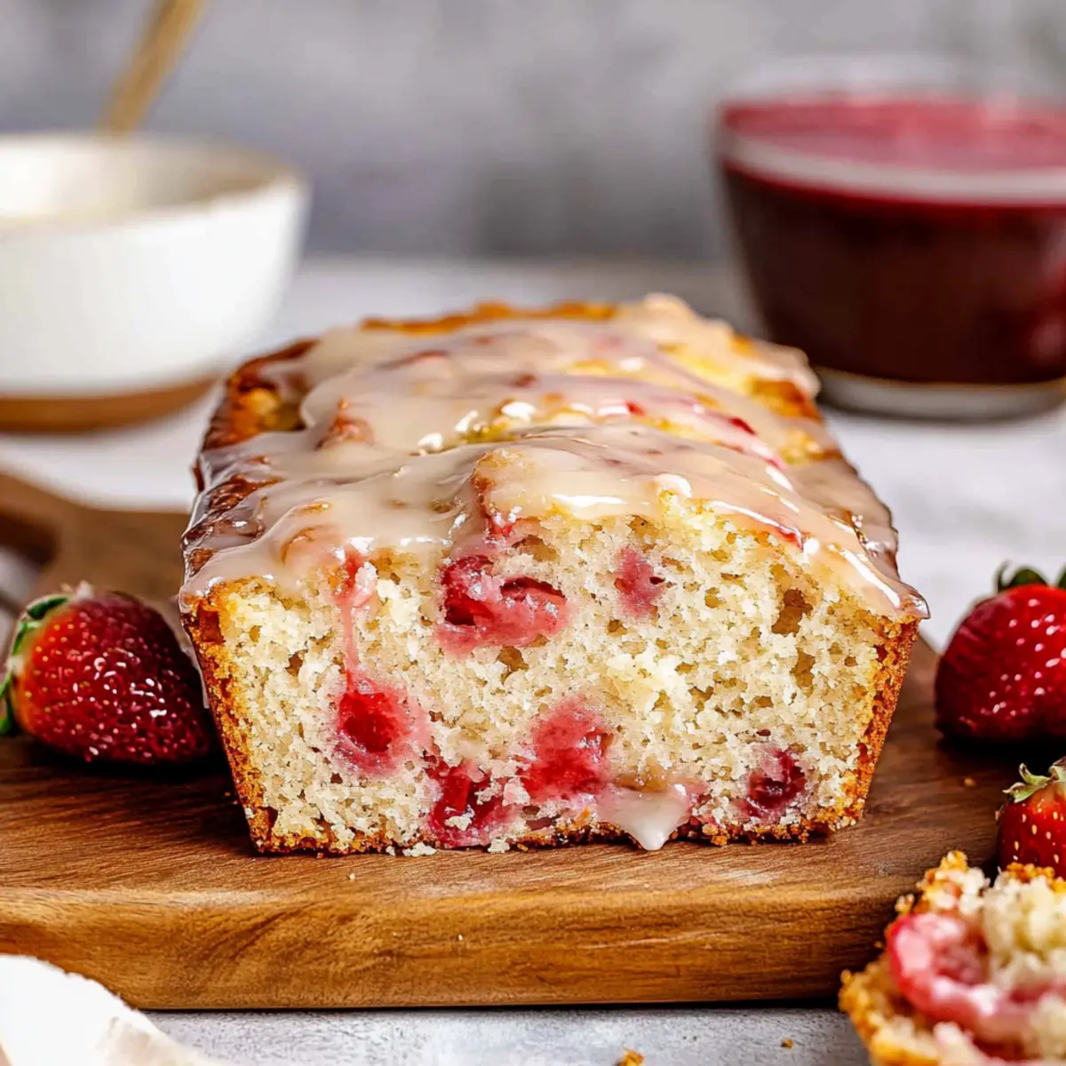 As I stood in my kitchen, the sweet aroma of strawberries mingling with the tartness of rhubarb whisked me back to warm spring mornings spent with family. This Moist Strawberry Rhubarb Bread has become my go-to recipe, perfect for those leisurely brunches or as a delightful afternoon treat. The best part? This quick bread is not only a breeze to whip up, but it also allows you to embrace the vibrant flavors of seasonal produce while being adaptable for gluten-free eaters. With a simple vanilla glaze drizzled on top, each slice offers the perfect balance of sweetness and a tangy punch. Curious to discover how to bring this delightful loaf to your table? Let’s dive into the recipe! Why is Strawberry Rhubarb Bread a Must-Try? Irresistible flavors: This recipe beautifully balances the sweetness of strawberries with the tartness of rhubarb, making every bite a delightful experience. Quick & Easy: With straightforward steps, you’ll be enjoying your homemade loaf in just over an hour, perfect for busy mornings! Versatile: Great for breakfast, brunch, or an afternoon snack, this bread pairs wonderfully with coffee or tea, and the glazed topping elevates it further. Adaptable: Don’t worry if gluten is a concern; simply swap in a gluten-free flour blend for a delicious alternative. For more refreshing sides, try pairing it with a Cucumber Strawberry Salad for a vibrant meal! Crowd-Pleasing: Whether serving family or friends, this moist loaf is sure to impress and become a repeated favorite for any occasion. Strawberry Rhubarb Bread Ingredients • Get ready to bake your delicious quick bread! For the Bread Fresh Strawberries – Add sweetness and moisture; ensure they are diced and coated with flour to prevent sinking. Fresh Rhubarb – Provides a tart contrast; sliced for even distribution and also coated in flour for sinking prevention. All-Purpose Flour – Gives structure and texture; use a 1:1 gluten-free flour blend for a gluten-free Strawberry Rhubarb Bread. Baking Powder – Acts as a leavening agent for a light texture. Sea Salt – Enhances flavor balance in the bread. Granulated Sugar – Sweetens the bread; can be swapped with brown sugar for a deeper flavor. Whole Milk – Adds moisture; can replace with a non-dairy milk if desired. Vegetable Oil – Keeps the bread tender; melted butter can be used for added richness. Large Eggs – Binds ingredients and contributes to leavening. Pure Vanilla Extract – Flavors the batter and enhances the overall taste. For the Glaze Powdered Sugar – Creates a sweet glaze texture; adjust milk to achieve your desired thickness. Whole Milk – Used in glaze; can be modified based on your preference. Unleash your inner baker with these delightful ingredients for a truly memorable Strawberry Rhubarb Bread! Step‑by‑Step Instructions for Strawberry Rhubarb Bread Step 1: Preheat the Oven Begin by preheating your oven to 350°F (175°C). While it warms up, prepare a 9×5-inch loaf pan by greasing it with non-stick spray or lining it with parchment paper. This will help your Strawberry Rhubarb Bread release easily once it’s baked and cool. Step 2: Prepare the Fruit In a mixing bowl, combine the diced fresh strawberries and sliced rhubarb. Toss them with 1 tablespoon of flour to coat evenly; this will prevent the fruit from sinking during baking. Set the prepared fruit aside to allow the flavors to mingle while you work on the batter. Step 3: Mix the Dry Ingredients In a medium bowl, whisk together the all-purpose flour, baking powder, and sea salt until well combined. This is an essential step for ensuring that your Strawberry Rhubarb Bread has a light and fluffy texture. Set the bowl aside as you move on to the wet ingredients. Step 4: Combine Wet Ingredients In a large mixing bowl, whisk together the granulated sugar, whole milk, vegetable oil, large eggs, and pure vanilla extract. Mix until all ingredients are smoothly combined and the sugar is dissolved. This creates a delightful base for your quick bread, adding moisture and flavor. Step 5: Combine Wet and Dry Ingredients Gradually add the dry ingredient mixture to the wet mixture, stirring gently until just combined. Take care not to overmix, as doing so can lead to a dense loaf. Once you see streaks of flour, fold in the flour-coated strawberries and rhubarb so they are evenly distributed. Step 6: Bake the Bread Pour the batter into your prepared loaf pan, smoothing the top for an even bake. Place it in the preheated oven and bake for 60–65 minutes, or until a toothpick inserted into the center comes out with moist crumbs. The Strawberry Rhubarb Bread should be golden brown on top. Step 7: Cool the Bread Once baked, remove the loaf from the oven and allow it to cool in the pan for 10–15 minutes. This step will help ensure that the bread holds its shape. Carefully transfer the loaf to a wire rack to cool completely; this will enhance the flavor and texture. Step 8: Prepare the Glaze While the bread cools, prepare the vanilla glaze. In a small bowl, whisk together the powdered sugar, whole milk, and a splash of vanilla extract. Adjust the milk to reach your desired glaze thickness, aiming for a smooth, pourable consistency that will elevate your Strawberry Rhubarb Bread. Step 9: Glaze the Bread Once the bread is completely cooled, drizzle the prepared glaze over the top, letting it run down the sides for a beautiful presentation. Allow the glaze to set for a few minutes before slicing. This final touch will enhance the flavor and appearance of your delightful quick bread. What to Serve with Moist Strawberry Rhubarb Bread The perfect complements will elevate your delicious quick bread into a memorable meal experience. Creamy Vanilla Yogurt: A dollop of creamy yogurt adds a smooth texture and mild flavor, enhancing the bread’s sweetness while providing a healthful touch. Fresh Fruit Salad: A refreshing mix of seasonal fruits adds brightness and a crisp contrast to the moist bread, crea
