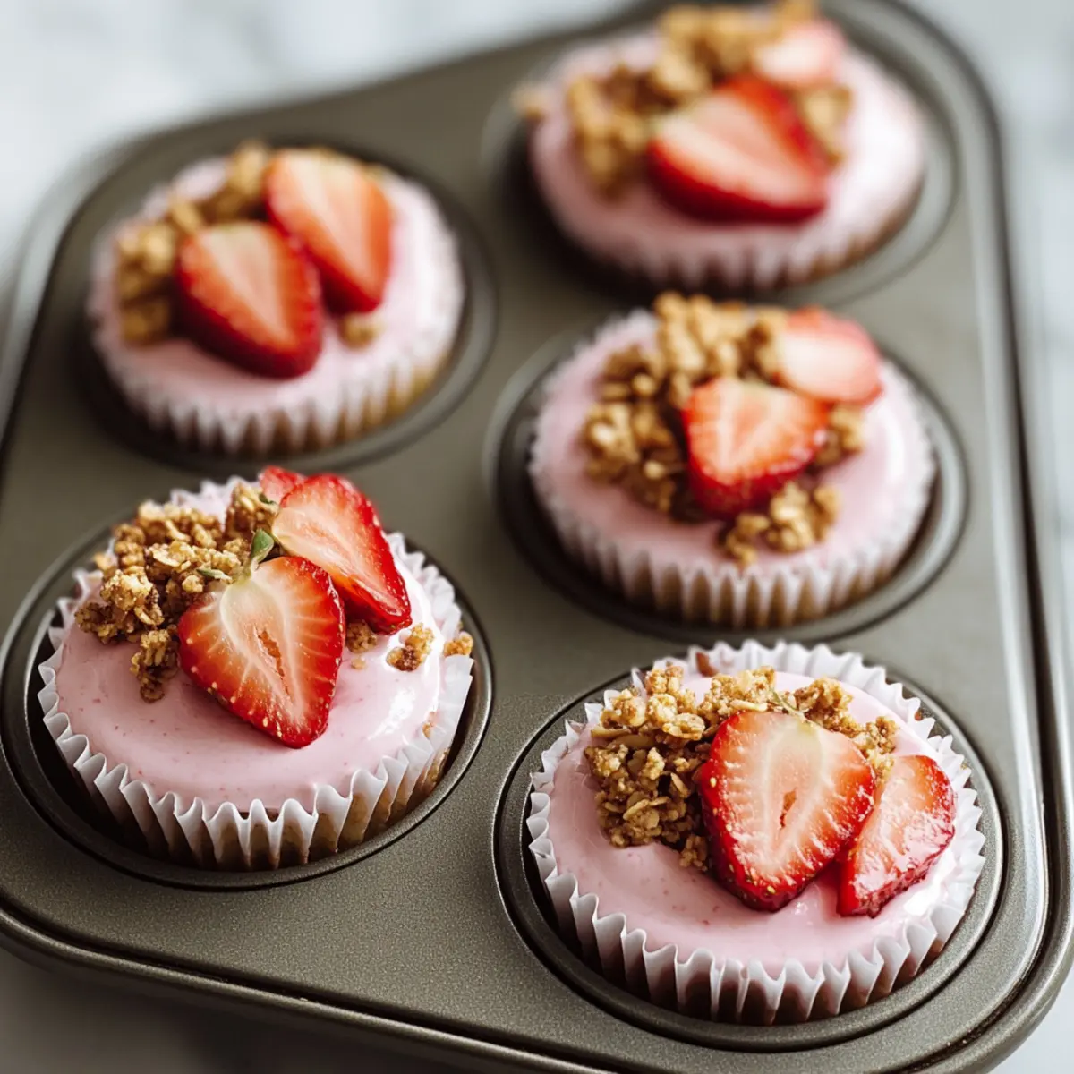 As I popped one of these Easy Healthy Strawberry Yogurt Bites into my mouth, the combination of creamy yogurt and sweet strawberries took me straight back to warm summer days. Perfectly frozen and oh-so-refreshing, these delightful bites are not just a delightful escape from the everyday hustle, but they also come packed with protein and nutrition—making them the ideal guilt-free treat. Quick to whip up and wonderfully customizable, you can even tailor these frozen snacks to suit your taste with various yogurts and add-ins. Whether you’re looking for a nutritious afternoon pick-me-up or something to satisfy that sweet craving without the guilt, these Strawberry Yogurt Bites are your go-to solution. Curious about how to make them? Let’s dive right in! Why are Strawberry Yogurt Bites so irresistible? Flavor explosion: Bursting with fresh strawberries and creamy yogurt, these bites offer a deliciously refreshing taste that feels like summer all year round. Quick & easy: With just a few simple ingredients and minimal prep time, making these healthier frozen treats is a breeze. Customizable goodness: Tailor your bites with various yogurt types, fruits, or even a drizzle of honey, making them perfect for all taste preferences. High in protein: Packed with yogurt, these bites not only satisfy cravings but also contribute to your daily protein intake, keeping you energized. Perfect for sharing: Whip up a batch for family or friends; everyone will love these guilt-free snacks that are both nutritious and delicious! For more delightful ideas, check out our Cucumber Strawberry Salad or the scrumptious Cheesy Mashed Bites. Strawberry Yogurt Bite Ingredients • Create the perfect treat with these essential components! For the Base Granola – Provides a crunchy texture and adds fiber; opt for sugar-free granola for a lower sugar option. Yogurt – The creamy, protein-rich base; use Greek yogurt for extra thickness, or any yogurt type, including dairy-free alternatives. For the Filling Fresh Strawberries (hulled and diced) – Adds natural sweetness and essential vitamins; feel free to use other berries if desired. For the Topping Fresh Strawberries (sliced or chopped) – Enhances both flavor and presentation; ensure strawberries are fresh for the best taste. Extra Granola – Sprinkled on top for an added crunch and texture; use your favorite granola blend! Dive into these delightful Strawberry Yogurt Bites and enjoy a refreshing snack that’s customizable and fun! Step‑by‑Step Instructions for Strawberry Yoghurt Bite Step 1: Prepare the Muffin Pan Start by lining a 12-cup muffin pan with muffin liners, or opt for silicone baking cups for easy removal. Ensure they’re well-fitted to prevent leakage during freezing. This step is crucial for shaping your Strawberry Yoghurt Bites, so take a moment to get it right and set your pan aside. Step 2: Add the Granola Base Spoon about 2 teaspoons of granola into the bottom of each muffin cup. Press it down gently to create a compact base that adds crunch to your Strawberry Yoghurt Bites. This layer not only provides texture but also ensures a delightful, crispy bite every time. Step 3: Mix the Yogurt and Strawberries In a mixing bowl, mash your yogurt with the hulled and diced strawberries until they are mostly combined, ensuring to leave some chunks for added flavor. This process should take about 1-2 minutes, and you’ll know it’s ready when you see a pretty pink mixture with irresistible strawberry pieces throughout. Step 4: Fill the Muffin Cups Spoon 2 tablespoons of the yogurt and strawberry mixture into each prepared muffin cup, leveling it off with the back of the spoon. Take care to fill each cup evenly, ensuring that your Strawberry Yoghurt Bites will freeze uniformly and are easy to pop out later. Step 5: Add Toppings Press sliced strawberries into the tops of each yogurt mixture, adding a touch of elegance and extra sweetness. Finish by sprinkling a little additional granola on top for that satisfying crunch whenever you enjoy these delightful treats. Each cup should look inviting, with colorful toppings bursting with flavor. Step 6: Freeze the Bites Place the muffin pan in the freezer and allow the Strawberry Yoghurt Bites to freeze for 2-4 hours or until they are firm to the touch. Make sure the pan rests on a level surface to ensure even freezing. This crucial step transforms your mixture into delightful frozen snacks. Step 7: Serve and Enjoy Once the bites are fully frozen, gently pop them out of the muffin liners. Allow them to thaw for a few minutes before serving to enhance the creamy texture. Now your Strawberry Yoghurt Bites are ready to be enjoyed, packed with nutritious goodness and delicious flavors! Expert Tips for Strawberry Yogurt Bites Avoid Sticking: Lightly grease muffin liners if not using silicone pans to ensure easy removal of your Strawberry Yogurt Bites. Level Freezing: Place the muffin pan on a level surface in the freezer to guarantee even freezing and consistency across all bites. Thawing Time: Allow bites to thaw slightly before eating; they are easier to enjoy when they have softened a bit from the freezer. Mind the Sugar: Keep an eye on natural sugar content, especially when using different fruits or yogurt, to maintain a healthy balance. Mix It Up: Experiment with different yogurt types and add-ins to create your unique flavor variations for these delightful Strawberry Yogurt Bites. Make Ahead Options These Easy Healthy Strawberry Yogurt Bites are perfect for Meal Prep enthusiasts! You can prepare the yogurt and strawberry mixture up to 24 hours in advance—just combine the yogurt and diced strawberries, store it in an airtight container in the refrigerator. Additionally, you can layer the granola in the muffin cups ahead of time, keeping them ready for the final assembly. When you’re ready to serve these delightful snacks, simply fill the prepped cups with the yogurt mixture, top with sliced strawber