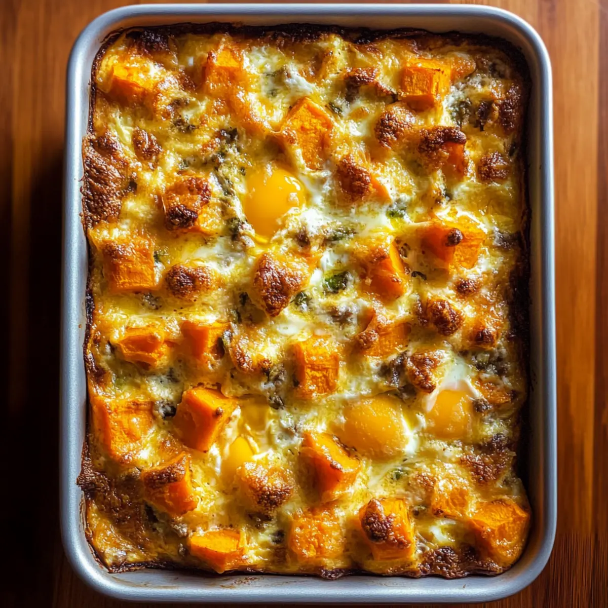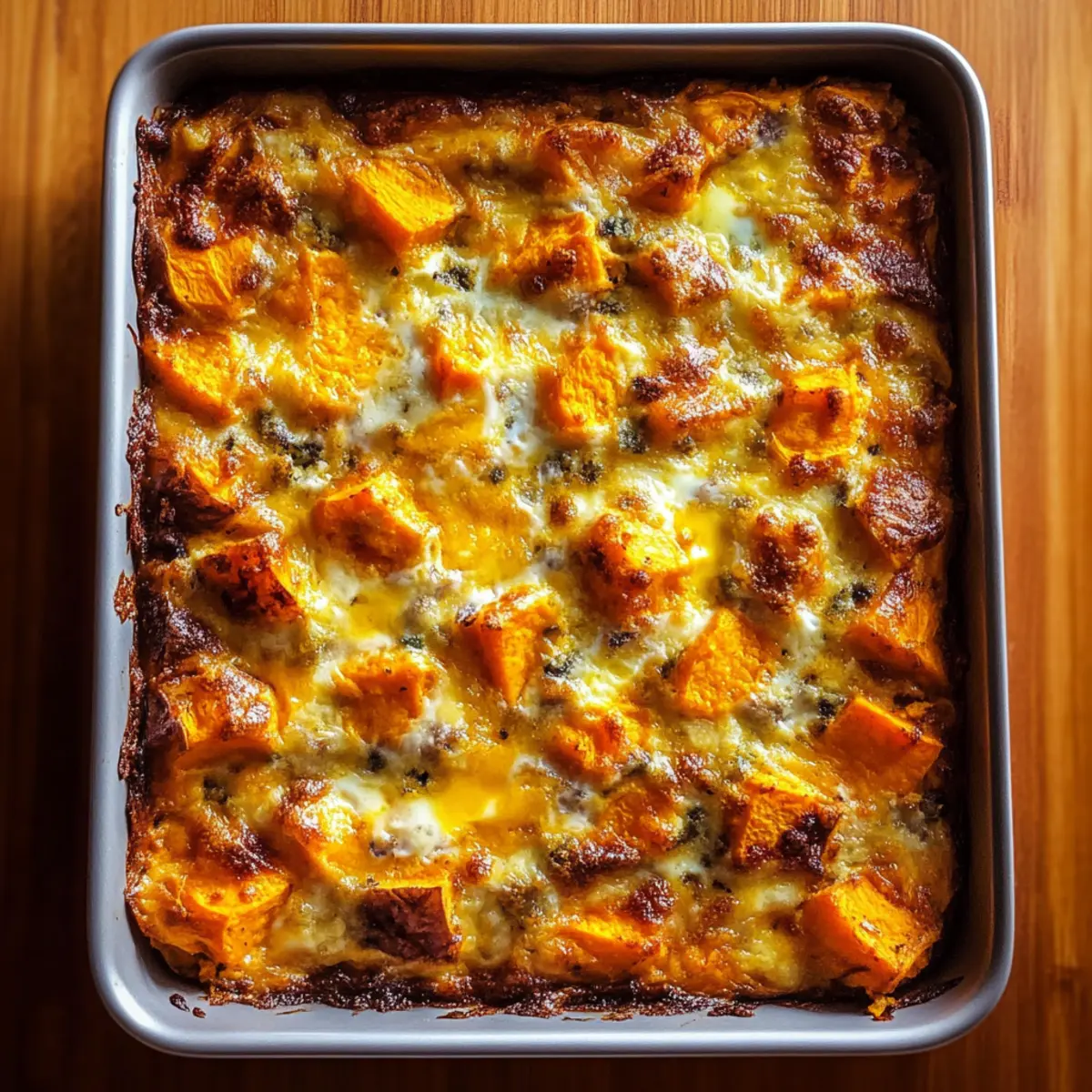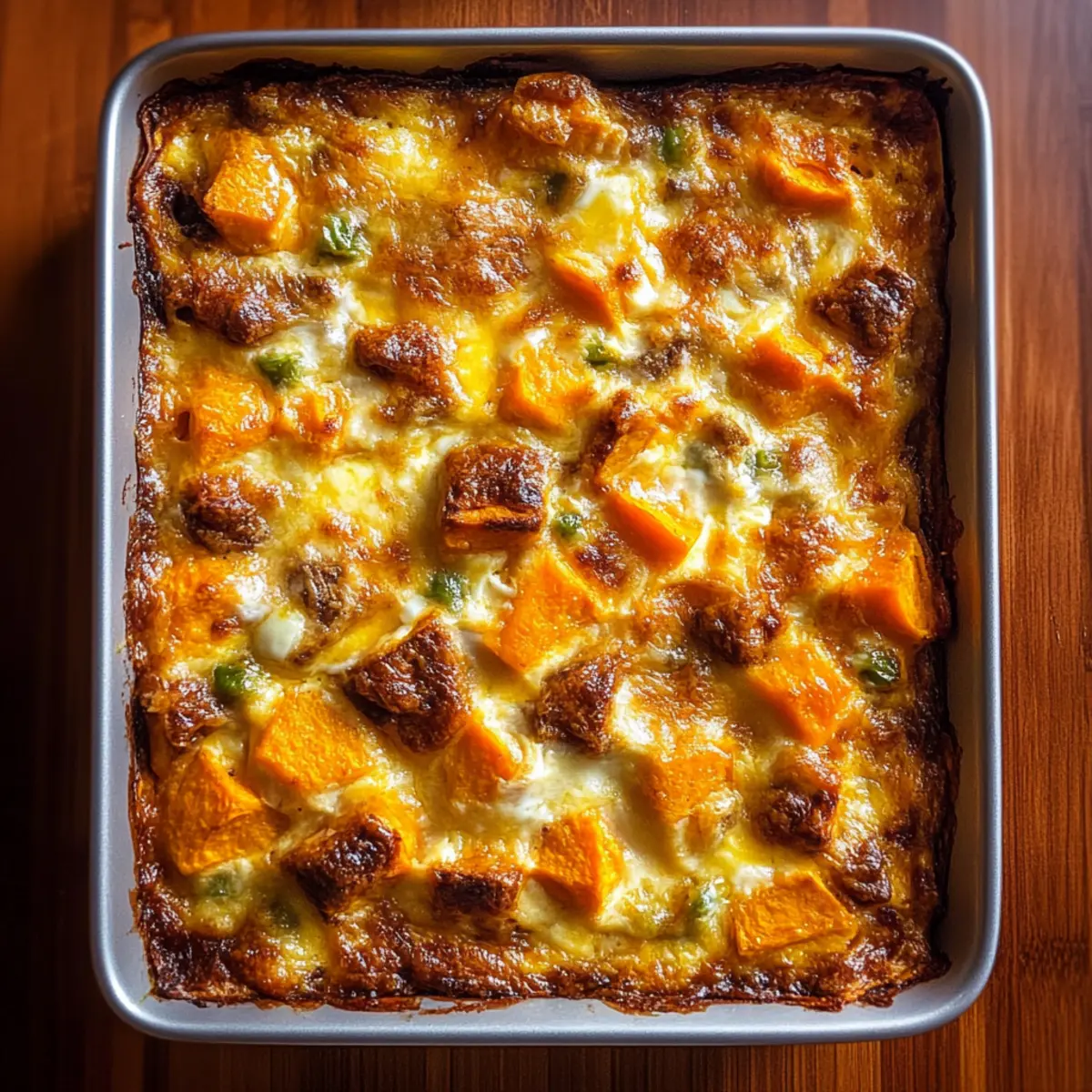 As I stood in my kitchen, the scent of sautéed onions and roasted sweet potatoes filled the air, instantly whisking me away to cozy family breakfasts from my childhood. There’s something so comforting about a home-cooked meal, and my Easy Sweet Potato Egg Casserole captures that essence perfectly. This nutritious breakfast bake combines the natural sweetness of sweet potatoes with hearty eggs and a touch of gooey cheese, creating a filling dish that’s sure to please everyone at the table. Plus, it simplifies your mornings: just mix it together and refrigerate overnight for a hassle-free bake in the morning! Imagine starting your day with a wholesome breakfast that’s as satisfying as it is easy to prepare. Ready to dive into deliciousness? Let’s get cooking! Why is this Sweet Potato Egg Casserole special? Nutritious and Filling: This casserole is brimming with wholesome ingredients, making it a perfect start to your day. Adaptable to Taste: Feel free to swap in your favorite veggies or proteins, like adding spinach or even bacon! Make-Ahead Convenience: Prep it the night before—just mix and refrigerate for effortless baking in the morning. Crowd-Pleasing Flavor: The delightful harmony of sweet potatoes and savory sausage satisfies even the pickiest eaters. Comfort in Every Bite: Its creamy texture and hearty flavors will transport you to those cherished breakfast gatherings, making each slice a delightful reminder of home! For more hearty breakfast ideas, don’t miss the Savory Turkey Egg Breakfast Casserole for another delicious option. Sweet Potato Egg Casserole Ingredients • Here’s what you need for a delicious start! For the Casserole Sweet Potatoes – The star ingredient adds natural sweetness and a creamy texture; opt for Garnet or Jewel varieties. Olive Oil/Avocado Oil – Perfect for sautéing veggies; any neutral oil works as a substitute. Onion & Green Pepper – These aromatics enhance flavor; swap in leeks or bell peppers for a different twist. Minced Garlic – Boosts overall flavor; garlic powder is a great alternative if you’re out of fresh. Turkey Sausage – Provides protein and delicious flavor; feel free to use pork sausage, chicken, or a plant-based version for a meat-free option. Eggs – The binding element that holds everything together; ensure they’re beaten until smooth to avoid rubberiness. Milk – Adds creaminess to the egg mixture; plant-based milk works for dairy-free versions. Fresh Thyme – Complements flavors beautifully; dried thyme or rosemary can be used if fresh isn’t available. Salt & Pepper – Essential for seasoning and enhancing taste. Shredded Cheese – Adds richness and gooey texture; dairy-free cheese makes this dish vegan-friendly. For Serving Fresh Fruit Salad – A refreshing, colorful side to balance the richness of the casserole. Mixed Green Salad – A simple salad adds freshness and a light crunch to the meal. Enjoy crafting this delightful Sweet Potato Egg Casserole that not only nourishes but warms the heart! Step‑by‑Step Instructions for Easy Sweet Potato Egg Casserole Step 1: Preheat the Oven Begin by preheating your oven to 350°F (175°C). This essential first step ensures that your Easy Sweet Potato Egg Casserole will bake evenly and thoroughly. As the oven warms, it’s the perfect time to prepare your casserole dish. Step 2: Prepare the Casserole Dish Grease a 9×13-inch casserole dish with olive oil or cooking spray to prevent sticking. This step is crucial for ensuring each delicious slice of the casserole comes out easily after baking, ready to be served to your loved ones. Step 3: Sauté Vegetables In a large skillet, heat a splash of olive oil over medium heat. Add chopped onion, green pepper, and diced sweet potatoes, sautéing for 8-9 minutes until they soften and become fragrant. In the last minute, stir in minced garlic for an aromatic lift, creating a flavorful base for your casserole. Step 4: Combine Vegetables in Dish Carefully transfer the sautéed vegetables to your prepared casserole dish. Spread them evenly to form a solid foundation for the layers that follow. The vibrant colors and enticing scents will hint at the deliciousness ahead in the Easy Sweet Potato Egg Casserole. Step 5: Cook the Sausage In the same skillet, add the turkey sausage. Cook over medium heat until browned, breaking it into small, bite-sized pieces as it cooks. This should take around 5-7 minutes. Once done, drain excess fat and mix the cooked sausage with the sautéed vegetables in the casserole dish. Step 6: Whisk the Egg Mixture In a mixing bowl, whisk together the eggs, milk, fresh thyme, salt, pepper, and shredded cheese until the mixture is smooth and well combined. The eggs will bind all the ingredients together, creating the creamy texture that characterizes your Easy Sweet Potato Egg Casserole. Step 7: Pour Over Fillings Pour the egg mixture evenly over the sausage and vegetable blend in your casserole dish. Using a spatula, gently stir the ingredients to ensure that the egg mixture is well-distributed, ensuring each bite is packed with flavor and nutrition. Step 8: Bake the Casserole Place the casserole in the preheated oven and bake for 40-45 minutes, or until the center is firm and a light golden crust forms. If the top begins to brown too quickly, cover it loosely with foil to prevent burning while the inside continues to cook. Step 9: Cool and Serve Once done, remove the Easy Sweet Potato Egg Casserole from the oven and let it cool for 5-10 minutes. This will enhance the slicing and serving experience. Cut into squares and enjoy this comforting dish warm, sharing the delightful flavors with family and friends. Make Ahead Options The Easy Sweet Potato Egg Casserole is perfect for busy home cooks looking to save time during hectic mornings! You can prepare the entire casserole up to 24 hours in advance by mixing the sautéed vegetables, cooked sausage, and egg mixture, then assembling it in the greas