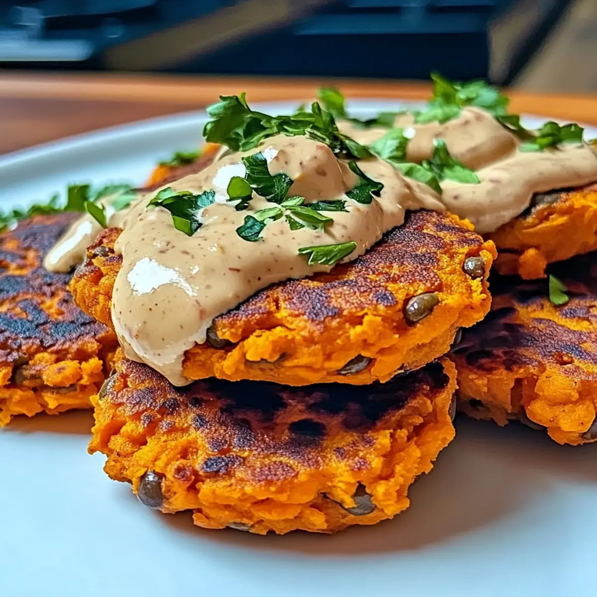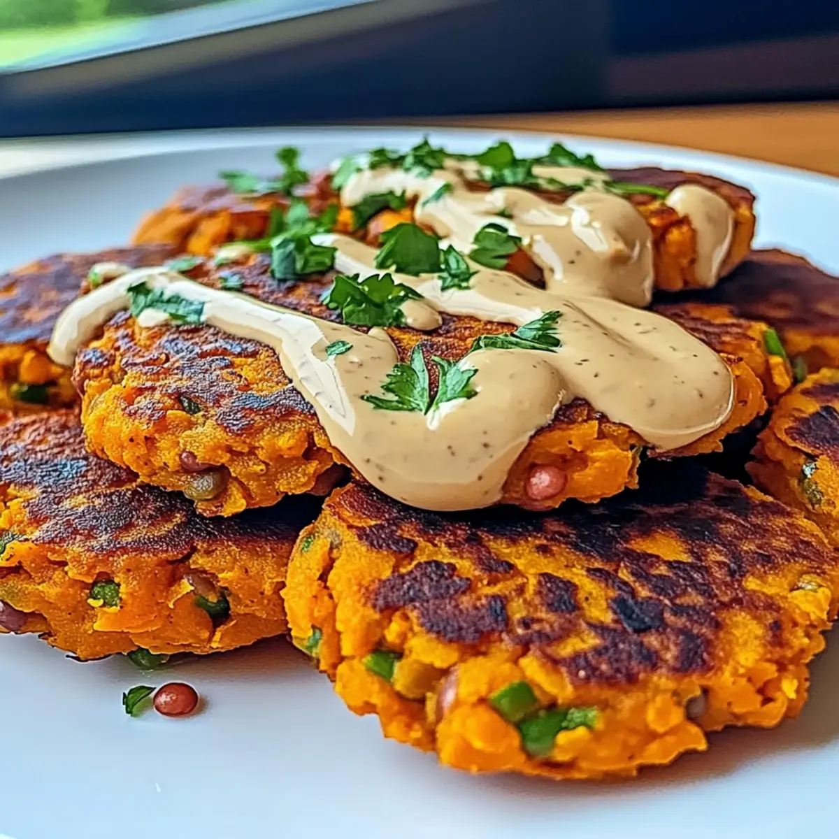 As the sun sets, the tantalizing aroma of sizzling pans fills my kitchen, beckoning everyone to gather around. These Sweet Potato Patties with Red Lentils bring warmth and joy to our dinner table, showcasing the perfect blend of flavors and textures—crispy on the outside and soft within. Designed for busy families, this recipe not only promises a nutritious meal but also quick prep time, so you can spend more moments enjoying dinner and less time cooking. Plus, the tangy tahini dressing elevates these patties into a delightful crowd-pleaser. Ready to discover just how simple it is to whip up this wholesome dish? Let’s dive in! Why are these patties a must-try? Nutritious and Wholesome: These Sweet Potato Patties with Red Lentils are not just tasty—they’re packed with protein and essential nutrients, making them a smart choice for health-conscious eaters. Quick Prep Time: In just 30 minutes, you can whip up a delicious meal, perfect for busy weeknights or a last-minute dinner gathering. Flavorful Harmony: Expect a delightful balance of sweet and savory in each bite, complemented by a creamy, zesty tahini dressing that transforms an ordinary dish into something extraordinary. Versatile Serving Options: Enjoy them alone, on a bed of fresh salad or quinoa, or even as sliders—these patties adapt to any occasion! Kid-Friendly: Even the pickiest eaters will love these; their crispy exterior and flavorful interior make them an instant favorite among kids and adults alike. For more tasty meal ideas, don’t miss our Sweet Potato Beef Bowl with Hot Honey or Cheesy Mashed Potato Puff Bites! Sweet Potato Patties with Red Lentils Ingredients For the Patties • Sweet Potatoes – provide natural sweetness and a creamy texture; use orange-fleshed sweet potatoes for the best flavor. • Red Lentils – serve as a protein source and add texture; can substitute with green lentils if needed, though cooking time may vary. • Onion – adds aromatic flavor; substitute with shallots for a milder taste. • Garlic – enhances the overall flavor profile; use roasted garlic for a sweeter taste if desired. • Ground Cumin – provides warm, earthy notes; coriander can be used for a different spice profile. • Smoked Paprika – adds depth and smokiness; regular paprika can replace it if preferred. • Ground Turmeric – adds color and health benefits; omit for a milder flavor. • Salt and Pepper – essential for seasoning; adjust to taste. • Chickpea Flour – binds the patties together; can substitute with all-purpose flour if gluten is not a concern. For the Dressing • Tahini – key ingredient that provides creaminess and nuttiness; sunflower seed paste is a nut-free alternative. • Lemon Juice – brightens the flavor of the dressing; vinegar can be an alternative but will change the tang profile. • Apple Cider Vinegar – adds acidity to the dressing; can substitute with white wine vinegar. • Maple Syrup – provides sweetness; honey can be used as an alternative for non-vegan diets. • Cayenne Pepper – gives a spicy kick; omit for a milder dressing. These Sweet Potato Patties with Red Lentils are sure to become a household favorite that combines flavor, nutrition, and convenience all in one delightful dish! Step‑by‑Step Instructions for Sweet Potato Patties with Red Lentils Step 1: Cook Sweet Potatoes and Lentils Begin by peeling and dicing 2 medium sweet potatoes into small cubes. Place them in a pot with 1 cup of rinsed red lentils and cover with water. Bring to a boil and then reduce the heat, simmering for 15-18 minutes until both ingredients are tender. Drain the mixture and let it cool for a few minutes in a colander. Step 2: Mash Mixture Once the sweet potato and lentil mixture has cooled slightly, transfer it to a large bowl. Using a fork or a potato masher, mash the ingredients together, leaving some texture for added bite. This will be the base for your Sweet Potato Patties with Red Lentils, so ensure it’s well combined but not completely smooth. Step 3: Add Flavorings In the bowl with your mashed mixture, stir in one finely chopped onion and 2 minced garlic cloves. Add 1 tsp of ground cumin, 1 tsp of smoked paprika, ¼ tsp of ground turmeric, and salt and pepper to taste. Mix thoroughly to incorporate all your spices evenly, enhancing the overall flavor of your patties. Step 4: Bind Patties Next, sprinkle in about ½ cup of chickpea flour to help bind the mixture together. Stir well until the mixture holds together and can form a patty shape without falling apart. If it’s too wet, gradually add more chickpea flour until the texture is just right for forming patties. Step 5: Form Patties With your mixture ready, take a portion (about the size of a golf ball) and shape it into a patty approximately 2.5 inches wide and ½ inch thick. Repeat the process until you have formed roughly 8 to 10 patties, placing them on a plate or parchment paper as you go. Step 6: Chill Cover the formed patties and refrigerate them for about 15-20 minutes. Chilling helps them firm up, making them easier to handle when it’s time to cook your Sweet Potato Patties with Red Lentils. Step 7: Make Dressing While the patties chill, prepare the tangy tahini dressing. In a small bowl, whisk together ¼ cup of tahini, the juice of one lemon, 1 tbsp of apple cider vinegar, 1 tbsp of maple syrup, 1 minced garlic clove, and a pinch of cayenne pepper. Gradually add water until the dressing reaches a creamy, drizzable consistency. Step 8: Cook Patties Heat a skillet over medium heat and add enough oil to coat the bottom. Once the oil is hot, carefully place the chilled patties in the skillet, cooking for 3-4 minutes on each side. They should turn golden brown and crispy. Flip gently using a spatula to avoid breaking them. Step 9: Serve After cooking, transfer the patties to a serving plate. Drizzle generously with the tahini dressing and garnish with fresh herbs or lemon wedges for added brightne
