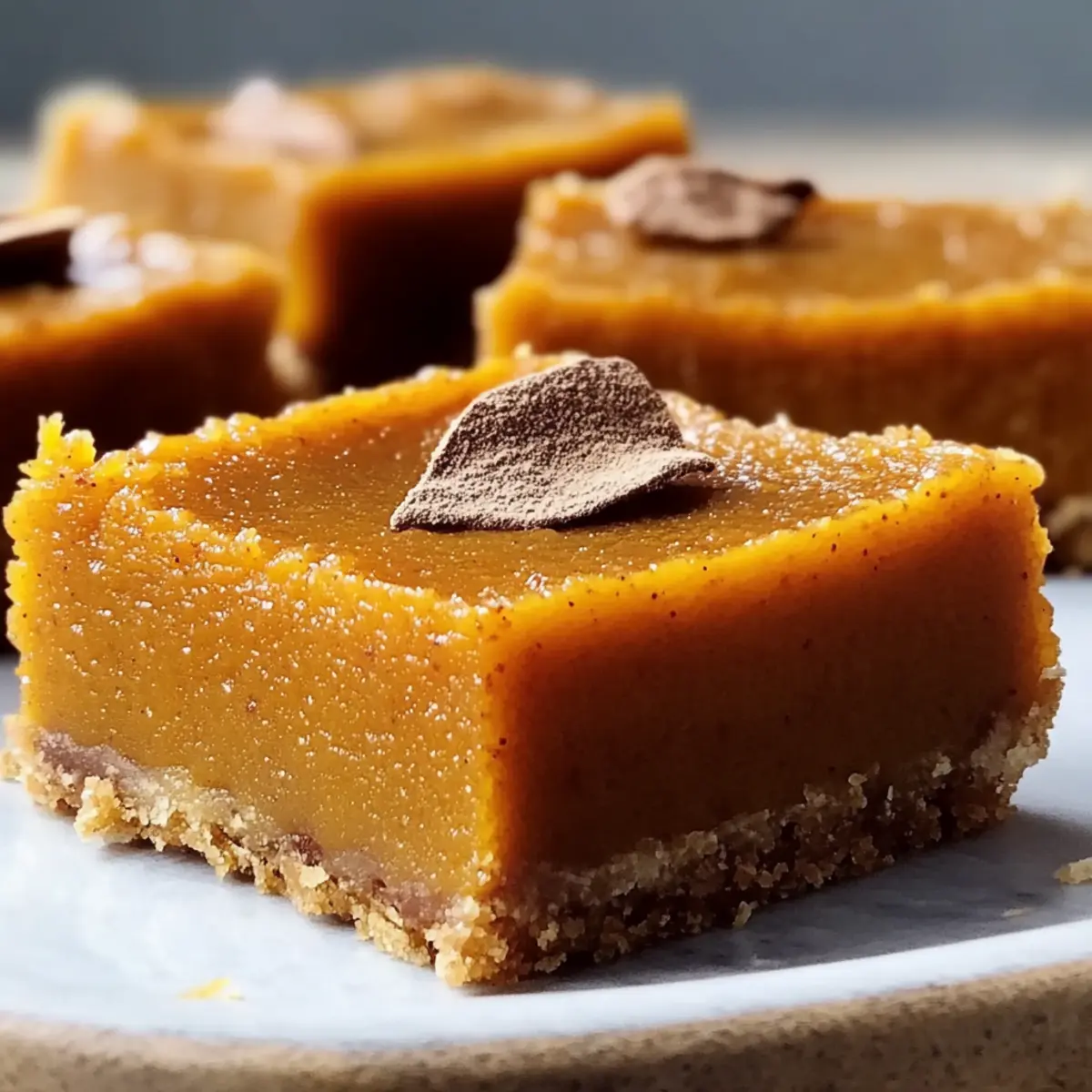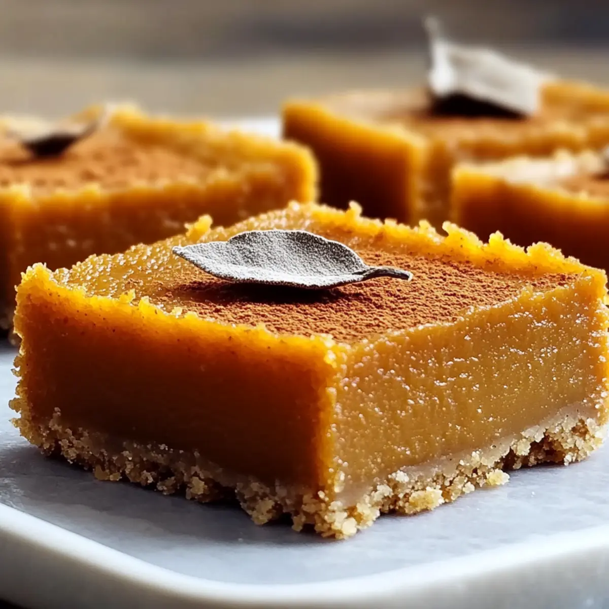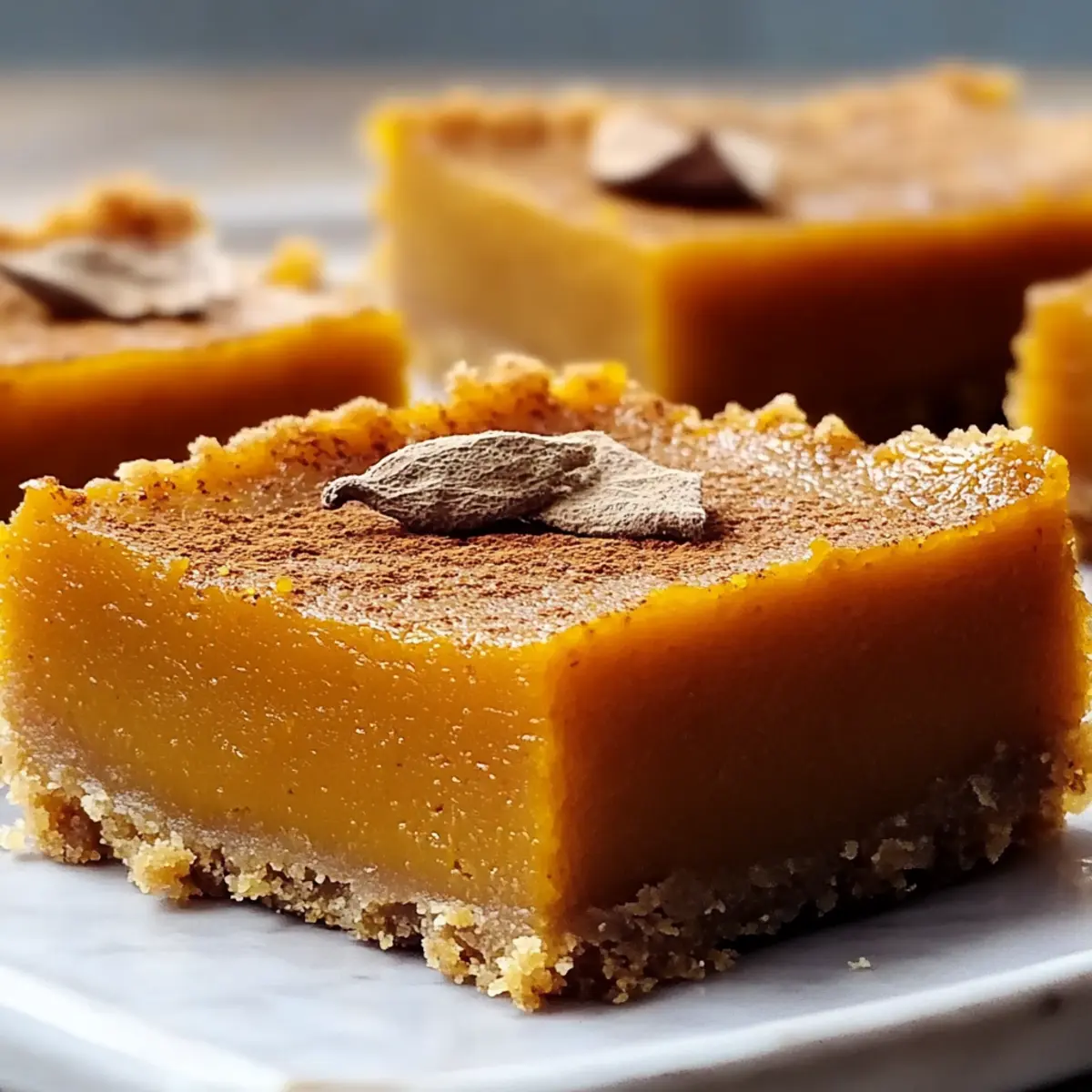 As I sat sipping warm cider on a brisk autumn day, a delightful thought struck me: what could be more comforting than a twist on the classic sweet potato pie? Enter these irresistible Sweet Potato Pie Bars, a unique treat that perfectly captures the essence of the season in a convenient, shareable format. With their creamy filling and buttery graham cracker crust, they make for a fantastic make-ahead dessert that’s as easy to whip up as it is impressive to serve. Whether it’s for a potluck or a cozy family gathering, these bars are sure to be a hit. Curious about how to make this cozy delight? Let’s dive in and savor the flavors of fall together! Why Are Sweet Potato Pie Bars Perfect? Comforting, warm flavors: These Sweet Potato Pie Bars bring the essence of fall to your table with every delightful bite. Effortless preparation: With just a few simple steps, you’ll have a stunning dessert that’s perfect for gatherings. Versatile option: Gluten-free alternatives exist, ensuring everyone can enjoy these delicious treats, just like you’d find in my Sweet Potato Beef recipe. Make-ahead goodness: Prep these bars up to two days in advance, making entertaining easy and stress-free. Crowd-pleasing appeal: Their unique bar format makes serving a breeze, whether you’re at a potluck or hosting a family dinner. Sweet Potato Pie Bars Ingredients For the Crust Graham Cracker Crumbs – Acts as the crust base; substitute with gluten-free graham crackers if needed. Granulated Sugar – Adds sweetness to the crust. Ground Cinnamon – Enhances warmth and spice in the crust. Melted Butter – Binds crust ingredients together for structure. For the Filling Mashed Sweet Potato – Main filling ingredient; ensure it’s smooth for a creamy texture. You can use canned sweet potato puree as a shortcut. Brown Sugar – Provides additional caramel notes in the filling. Large Eggs – Functions as a binder for the custard-like texture. Evaporated Milk – Contributes creaminess to the filling. Vanilla Extract – Enhances the flavor profile with warmth. Ground Nutmeg and Ginger – Add depth and aromatic qualities to the filling. Salt – Balances the sweetness of the filling. Step‑by‑Step Instructions for Sweet Potato Pie Bars Step 1: Preheat the Oven Begin by preheating your oven to 350°F (175°C). While the oven warms up, line an 8×8-inch baking pan with parchment paper, allowing some overhang for easy removal later. This step sets the foundation for your Sweet Potato Pie Bars, creating the perfect environment for baking. Step 2: Prepare the Crust In a medium bowl, combine graham cracker crumbs, granulated sugar, and ground cinnamon. Pour in the melted butter and mix until the mixture resembles damp sand. Press this mixture evenly into the bottom of the prepared pan, creating a solid crust that will hold your creamy filling beautifully. Step 3: Bake the Crust Place the crust in the preheated oven and bake for 8-10 minutes, or until it turns golden and fragrant. Keep an eye on it to ensure it doesn’t burn. Once baked, remove the pan and allow the crust to cool slightly while you prepare the luscious filling for your Sweet Potato Pie Bars. Step 4: Make the Filling In a large mixing bowl, whisk together the mashed sweet potato, brown sugar, eggs, evaporated milk, and vanilla extract. Sprinkle in ground cinnamon, nutmeg, ginger, and salt. Blend until the mixture is smooth and creamy, ensuring the sweet potato is free of lumps for a velvety texture. Step 5: Combine and Bake Carefully pour the smooth filling over the cooled crust, spreading it evenly with a spatula. Place the entire pan back in the oven and bake for 35-40 minutes. The filling should be just set—check for doneness by inserting a toothpick in the center; it should come out clean or with a few moist crumbs. Step 6: Cool and Refrigerate After baking, let the Sweet Potato Pie Bars cool completely in the pan on a wire rack. Once cool, cover the pan and refrigerate for at least 1 hour to firm up the filling. This chilling period enhances the flavors and makes cutting the bars easier. Step 7: Cut and Serve Once chilled, lift the bars out of the pan using the parchment paper overhang. Place them on a cutting board and slice into your desired portion sizes. These deliciously creamy Sweet Potato Pie Bars are now ready to be served, perhaps with a dollop of whipped cream for an extra touch! How to Store and Freeze Sweet Potato Pie Bars Fridge: Store your delicious Sweet Potato Pie Bars in an airtight container for up to 4-5 days, keeping them fresh and ready to enjoy. Freezer: For longer storage, individually wrap each bar in plastic wrap and place them in a freezer-safe container. They will stay fresh for up to 2 months. Thawing: To enjoy frozen bars, simply transfer them to the fridge for a few hours or overnight before serving. This keeps the texture creamy and delightful. Reheating: If you prefer them warm, gently reheat the bars in the microwave for about 10-15 seconds, just enough to take the chill off without losing their delightful texture. Make Ahead Options These Sweet Potato Pie Bars are a fantastic option for meal prep, allowing you to savor the flavors of fall without the last-minute stress. You can prepare the crust and filling separately up to 24 hours in advance. Just combine the graham cracker crust and bake it, then store it covered at room temperature. Prepare the sweet potato filling and refrigerate it in an airtight container. When you’re ready to serve, pour the chilled filling over the crust and bake as instructed. This method ensures your bars are just as delicious and save you precious time on busy days, allowing you to focus on enjoying the company of loved ones! Expert Tips for Sweet Potato Pie Bars Smooth Filling: Ensure your mashed sweet potato is completely lump-free by using a ricer or food processor for a silky filling. Storage Solutions: Keep bars in an airtight container in the refrigerator for up to 4-