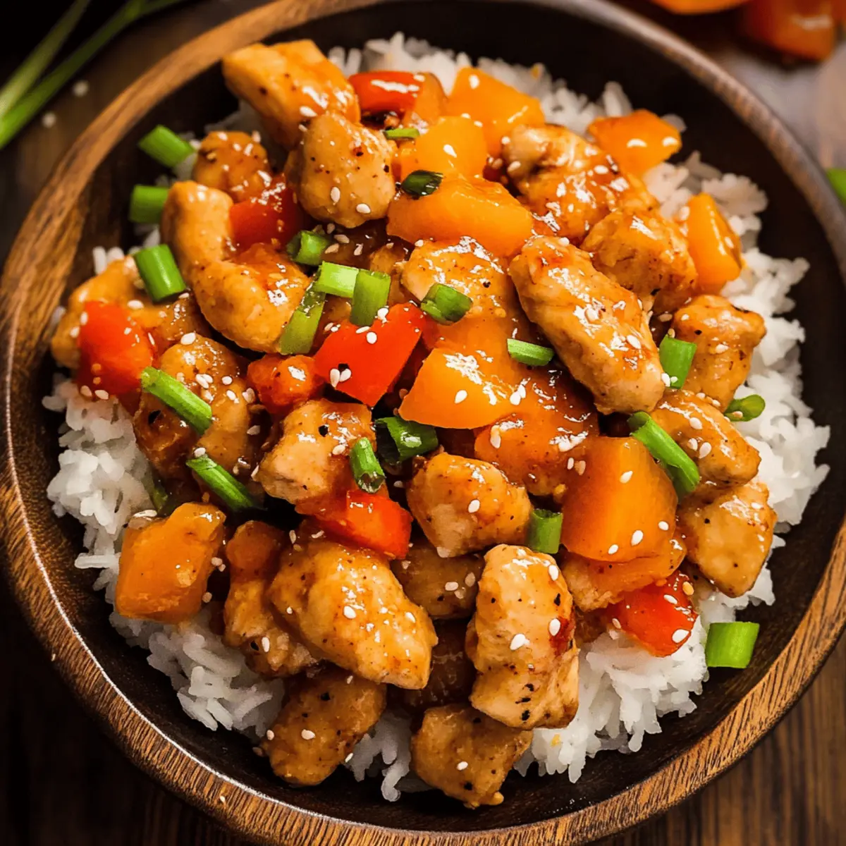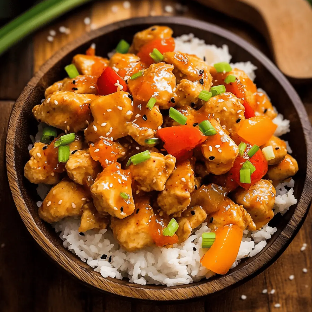 I stood in my kitchen, the air thick with anticipation, as the aroma of Spicy Tangerine Chicken began to fill the room. It’s one of those recipes that transforms a simple weeknight dinner into an unforgettable feast. This easy, one-pan wonder features juicy chicken swimming in a perfectly balanced sweet and savory tangerine sauce that rivals your favorite takeout. Not only is it gluten-free, but it also comes together in a flash—a lifesaver for those busy evenings when fast food might tempt you. Plus, this dish guarantees a clean plate at the dinner table, making it a crowd-pleaser for family and friends alike. Are you ready to elevate your dinner game with a burst of flavor that’s as satisfying as it is quick? Why is Tangerine Chicken so irresistible? Juicy Flavor: The tender chicken soaks up the sweet and tangy tangerine sauce, creating a mouthwatering experience with every bite. Quick & Easy: In just 30 minutes, you can whip up this one-pan dish, making it the perfect go-to for busy weeknights. Gluten-Free Delight: Enjoy a delicious meal without dietary worries! This dish caters to gluten-free diets while still packing a flavor punch. Crowd-Pleasing Appeal: It’s no secret that everyone loves a good stir fry! Served over rice or noodles, this dish is bound to disappear in no time, just like our Buffalo Chicken Tacos or Grilled BBQ Chicken Skewer Salad. Versatile Twist: Feel free to switch out chicken for tofu or your favorite veggies—everyone can enjoy this scrumptious recipe! Tangerine Chicken Ingredients • A delightful blend of flavors awaits! For the Chicken Chicken Breasts – Juicy lean meat that absorbs the tangerine sauce; use boneless, skinless for the best results. Eggs – Used to coat the chicken, creating a crispy texture when fried. Cornstarch – Adds a crunch to the chicken and thickens the sauce. For the Sauce Tangerine Juice – Adds sweetness and tanginess, tenderizing chicken; fresh or 100% bottled juice works perfectly. Hoisin Sauce – Provides a sweet and savory component to the sauce; a rich addition of flavor. Soy Sauce – Contributes umami flavor and saltiness, enhancing the taste of tangerine chicken. Red Chili Paste – Adds the spice; adjust according to your taste preference for the perfect kick. Brown Sugar – Balances the acidity with sweetness in the sauce, enhancing its flavor profile. Garlic and Ginger Paste – Boosts the overall flavor with aromatic notes; a must-have for depth! For Garnish and Texture Green Onions – For garnish, adds freshness and a pop of color to your dish. Red Bell Pepper – Offers sweetness and a colorful addition, brightening the presentation. Tangerine Segments – Add texture and intensify the citrus flavor; perfect for an eye-catching finish. Red Pepper Flakes – Optional for added heat; sprinkle on before serving if you’re craving spice! Now that you have all the ingredients in front of you, get ready to create your very own delicious tangerine chicken that’s sure to impress! Step‑by‑Step Instructions for Spicy Tangerine Chicken Stir Fry Step 1: Marinate Chicken Begin by cutting the chicken breasts into 1-inch cubes and placing them in a bowl. Pour fresh tangerine juice over the chicken, ensuring each piece is coated. Cover the bowl with plastic wrap and let it marinate in the refrigerator for at least 2 hours. This will enhance the flavors and tenderize the chicken, making it perfect for your Spicy Tangerine Chicken. Step 2: Prepare Sauce In a medium saucepan, combine tangerine juice, soy sauce, hoisin sauce, red chili paste, brown sugar, garlic and ginger pastes, and red pepper flakes. Whisk everything together until smooth. Bring the mixture to a simmer over medium heat, allowing it to bubble gently for about 10 minutes. This will create a rich sauce that blends sweet, savory, and spicy notes, perfect for the next step. Step 3: Coat Chicken In a large mixing bowl, whisk together eggs, cornstarch, salt, and pepper until well combined. Remove the marinated chicken from the refrigerator and coat each piece thoroughly in the egg-cornstarch mixture. This step ensures that your chicken will have a crispy, golden-brown exterior once fried, adding delightful texture to your Spicy Tangerine Chicken dish. Step 4: Fry Chicken Heat canola oil in a wok or large frying pan over medium-high heat until it reaches 300°F. Carefully add the coated chicken pieces in batches, frying them for about 5 minutes or until golden brown and crisp. Use a slotted spoon to transfer the fried chicken onto a wire rack to drain excess oil. This step is critical for achieving that perfect crunch that makes Spicy Tangerine Chicken so delightful. Step 5: Thicken Sauce While the chicken is frying, prepare a cornstarch slurry by mixing 1 tablespoon of cornstarch with 2 tablespoons of water in a small bowl. Once the sauce has simmered for 10 minutes, stir the slurry into the sauce. Continue to simmer while stirring for an additional 2-3 minutes, or until it thickens to a nice coating consistency. This luscious sauce is what will bring the flavors together in your Spicy Tangerine Chicken. Step 6: Combine After thickening the sauce, add the crispy fried chicken, tangerine segments, and diced red bell pepper to the pan. Gently toss everything together, ensuring each piece is well coated in the glossy sauce. Keep the heat on low while combining for about 2 minutes. This step helps to warm the chicken and vegetables through while enhancing the vibrant flavors of your Spicy Tangerine Chicken. Step 7: Garnish and Serve Once everything is well combined and heated, remove your Spicy Tangerine Chicken from the heat. Serve hot over fluffy white rice or Asian-style noodles for a satisfying meal. Lastly, top each serving with a sprinkling of diced green onions and optional sesame seeds for added flavor and visual appeal. Enjoy the burst of flavors that your homemade dish brings! What to Serve with Spicy Tangerine Chicken Stir Fry Elevate your dini