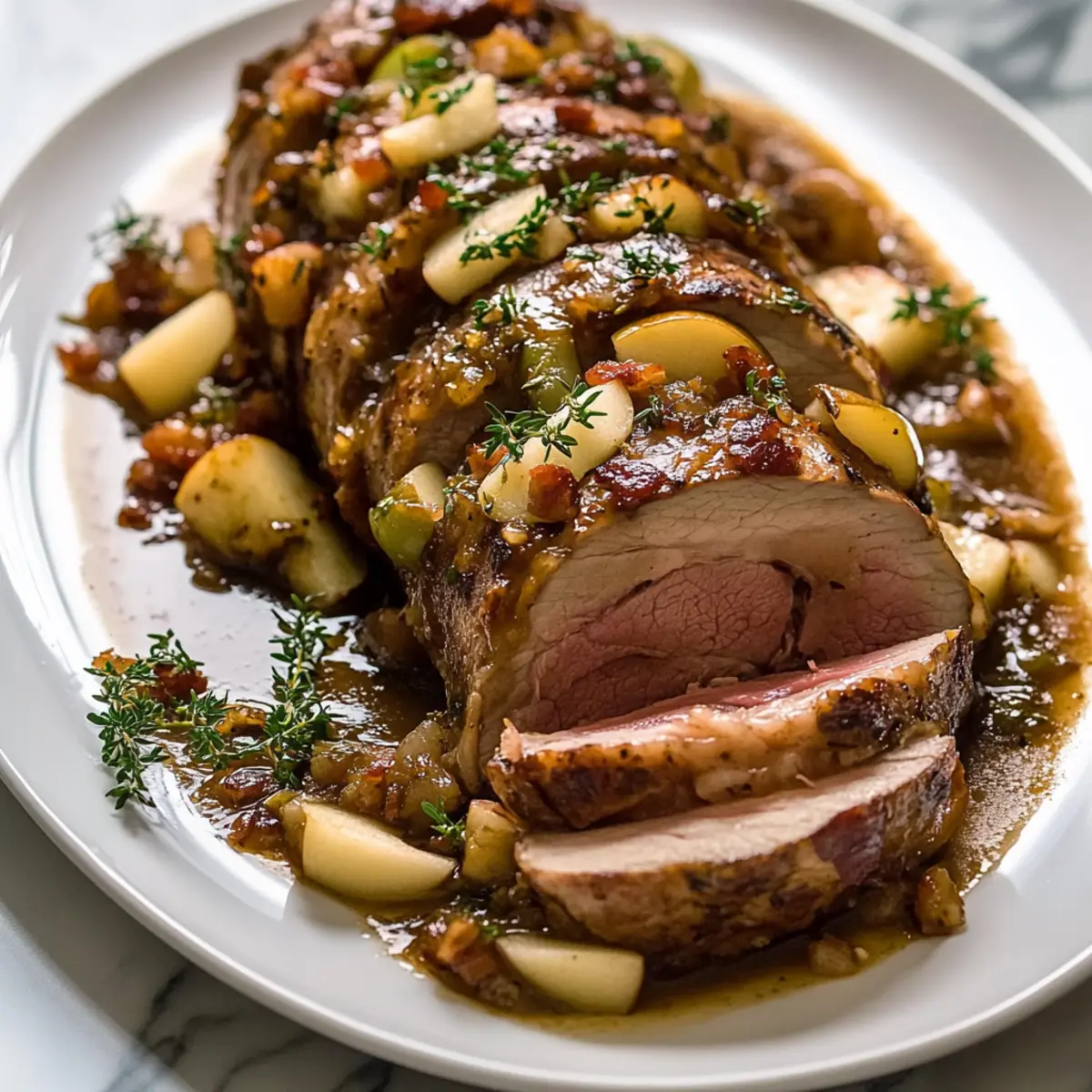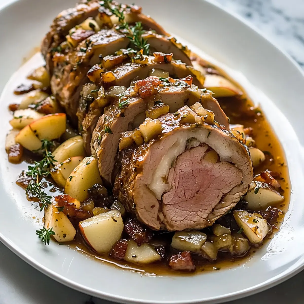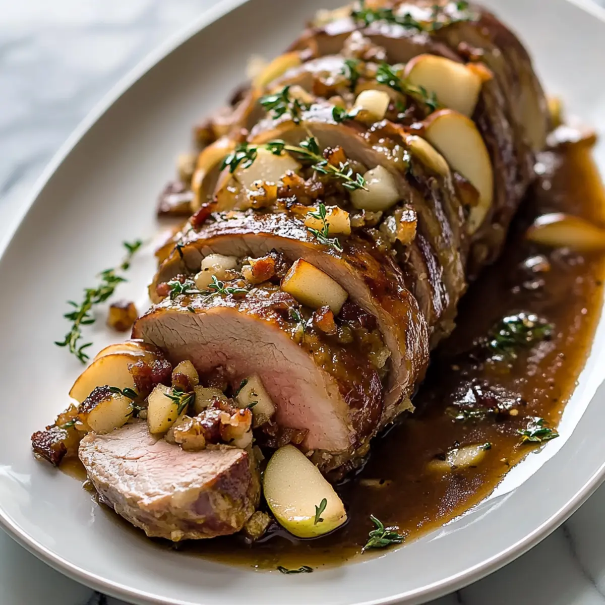 As the savory aroma of a special meal wafts through my kitchen, my heart dances with anticipation. Today, I’m excited to share my Tender Stuffed Beef Tenderloin with Apple Bourbon Extract Gravy, a dish that transforms an ordinary evening into an extraordinary celebration. Picture succulent beef wrapped around a delightful stuffing of bacon, apples, and fresh herbs, each bite promising warmth and comfort. Not only is this recipe a crowd-pleaser, but it also offers a gourmet touch—perfect for impressing guests or treating yourself to something truly special. The addition of apple bourbon extract in the rich gravy provides a delightful twist that elevates this dish from the every day to the unforgettable. Ready to discover how to make this impressive centerpiece for your next gathering? Let’s dive in! Why is This Beef Tenderloin Special? Unmatched Flavor: The combination of apple and bourbon creates an enticing flavor profile that your taste buds will adore. Simple Gourmet: You don’t need a culinary degree to impress—this recipe is accessible yet elegant, making it perfect for any home cook. Versatile Stuffing: Feel free to customize the stuffing with your favorite ingredients, like dried cranberries or different herbs, for a unique twist. Perfect Presentation: The beautiful rolling technique results in an eye-catching dish that’s as impressive on the plate as it is in taste. Make-Ahead Friendly: Spend less time in the kitchen on special occasions by preparing the beef tenderloin a day in advance, allowing you to relax and enjoy with guests. Enhance your dining experience with this tender beef, and if you’re looking for more comforting beef recipes, check out my delicious Italian Beef Sandwich or the flavorful Savory Ground Beef Stir Fry. Tender Stuffed Beef Tenderloin Ingredients For the Tenderloin • Beef Tenderloin – The star of the dish, known for its tenderness and rich flavor, trimmed and butterflied for easy stuffing. • Olive Oil – Used for searing the tenderloin to lock in moisture. • Salt & Black Pepper – Essential seasonings to enhance the natural flavors of the beef. For the Stuffing • Bacon – Adds a rich, smoky undertone to the stuffing mix. • Gala Apples – Provides sweetness and moisture; feel free to substitute with Fuji or Honeycrisp apples for varying sweetness. • Yellow Onion – Forms the flavor base for the stuffing, adding depth. • Garlic – Enhances the savory notes in the stuffing mix. • Fresh Sage, Rosemary, Thyme – Select fresh herbs for maximum flavor; dried herbs can be used in a pinch. • Light Brown Sugar – Balances out the savory flavors in the stuffing. • Smoked Paprika & Garlic Powder – Supplies warmth and an extra layer of flavor to the stuffing. For the Gravy • Beef Broth – Key for deglazing and adding depth to your rich gravy. • Apple Bourbon Extract – This crucial ingredient gives the gravy its uniquely delicious flavor; apple cider is a good substitute if needed. • Worcestershire Sauce & Dijon Mustard – Add umami richness to your gravy. • Cornstarch – Essential for thickening the gravy to a luscious consistency. • Unsalted Butter – Brings a glossy richness to the finished gravy. • Salt and Pepper (for gravy) – To taste, adjusting based on the saltiness of the broth. Ready to dive into a delicious culinary experience with this Tender Stuffed Beef Tenderloin & Apple Bourbon Extract Gravy? You’re just a few steps away from a meal that will impress family and friends alike! Step‑by‑Step Instructions for Tender Stuffed Beef Tenderloin & Apple Bourbon Extract Gravy Step 1: Prepare the Stuffing Start by cooking approximately 6 ounces of diced bacon in a skillet over medium heat until crispy; remove and set aside, keeping the bacon fat in the pan. Sauté one chopped yellow onion in the bacon fat until translucent, about 4-5 minutes. Next, add 2 diced Gala apples and 2 minced garlic cloves, cooking for an additional 3-4 minutes. Finally, stir in 1 teaspoon each of fresh sage, rosemary, and thyme, along with 1 tablespoon of light brown sugar, smoked paprika, and garlic powder. Cool slightly and mix in the reserved bacon. Step 2: Butterfly the Tenderloin Take a 2-pound beef tenderloin, trimming any excess fat if necessary. Use a sharp knife to slice the tenderloin lengthwise, creating a hinge but not cutting all the way through. Gently pound the tenderloin to an even thickness, ensuring it’s about 1 inch thick, making it easier to roll and stuff. Set the butterflied tenderloin on a clean surface, ready for the stuffing. Step 3: Fill and Roll Spread the stuffing mixture evenly over the open tenderloin, leaving a small border around the edges. Carefully roll the tenderloin tightly, securing the filling inside. Use kitchen twine to tie the rolled tenderloin at intervals to maintain its shape during cooking. Once secured, rub the outside with olive oil and generously season with salt and black pepper, ensuring every side is well-coated for enhanced flavor. Step 4: Sear and Roast Preheat your oven to 400°F (200°C). In a large, oven-safe skillet, heat some olive oil over medium-high heat until shimmering. Sear the stuffed tenderloin for about 3-4 minutes on each side until it’s browned and caramelized, ensuring to flip and brown all sides. Once seared, transfer the skillet to the preheated oven and roast the tenderloin for about 20-25 minutes, or until a meat thermometer reads 125-140°F for medium-rare to medium doneness. Step 5: Rest the Meat Once done, carefully remove the skillet from the oven and tent the tenderloin with aluminum foil. Let it rest for 10-15 minutes to allow the juices to redistribute, ensuring tender, juicy slices when you cut into the stuffed beef tenderloin. This important step allows the flavors to meld beautifully while keeping the meat moist. Step 6: Make the Gravy In the same skillet that you used for the tenderloin, pour in 1 cup of beef broth over medium heat