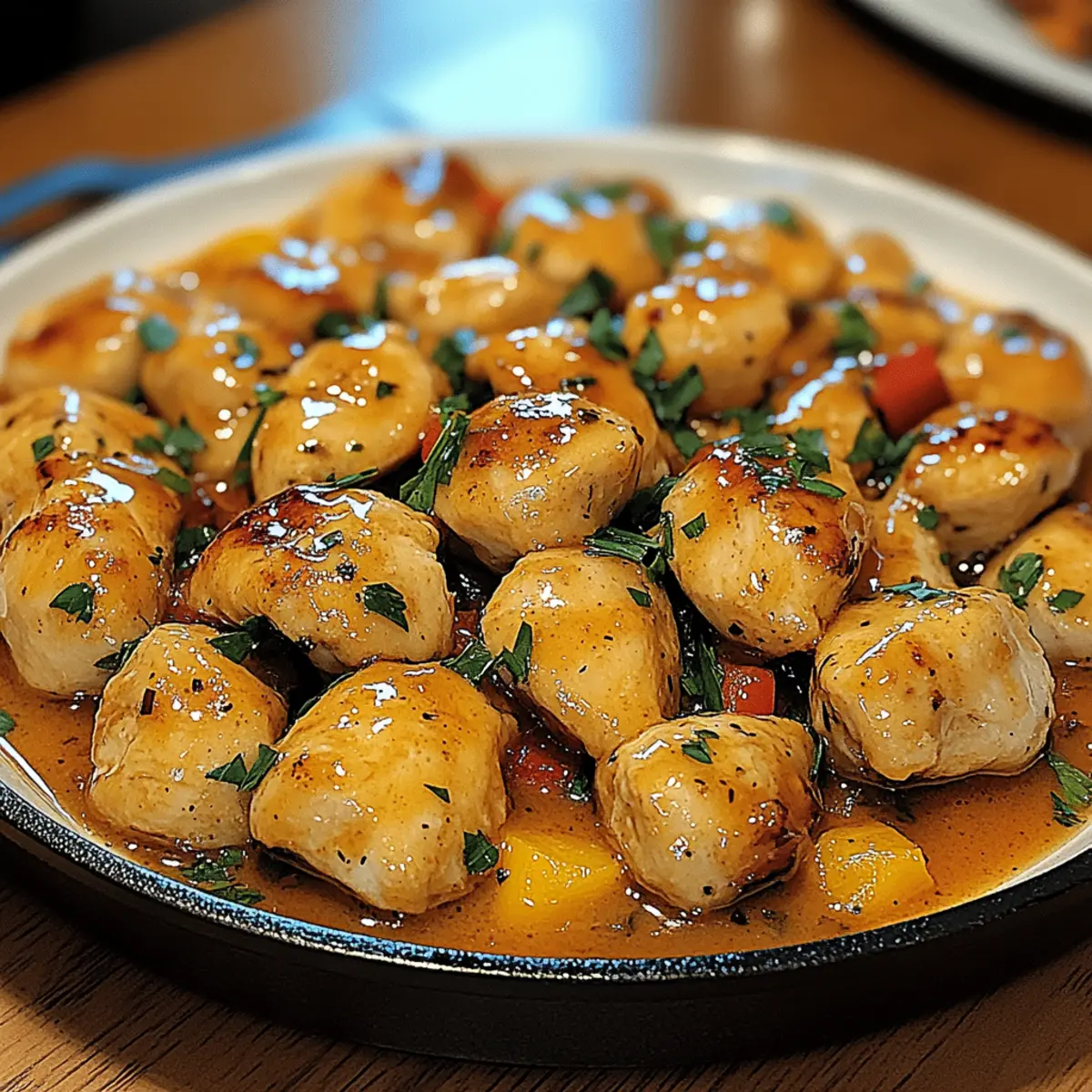 The aroma of sautéed onions and garlic filled my kitchen, instantly transporting me to a bustling Texas Roadhouse restaurant. Today, I’m sharing my take on the beloved Texas Roadhouse Butter Chicken Skillet Recipe, where tender chicken meets a luscious, creamy butter sauce that feels like a comforting hug. One of the best perks of this dish? It’s incredibly easy to whip up, making it perfect for a weeknight family meal or an impressive dinner for guests. Plus, the colorful veggies add a delightful crunch that enhances each bite. Are you ready to dive into a homemade journey that balances indulgence with simplicity? Let’s get cooking! Why is this dish a must-try? Comforting, indulgent goodness: This Texas Roadhouse Butter Chicken Skillet wraps juicy chicken in a dreamy, creamy sauce, making it a favorite for comfort food lovers. Easy prep: With straightforward steps, you’ll have a delicious meal ready in no time—perfect after a long day! Vibrant flavors: The sautéed vegetables bring a pop of color and crunch that perfectly balances the richness of the sauce. Impressive presentation: Serve it straight from the skillet to wow your guests, just like you would find at a Texas Roadhouse! For a hearty side, consider pairing it with some garlic bread or roasted vegetables for a meal everyone will rave about! Texas Roadhouse Butter Chicken Skillet Ingredients For the Chicken Boneless, Skinless Chicken Breasts (4) – The star of the dish that provides lean protein. For extra juiciness, consider using thighs instead! Salt and Pepper – Essential for seasoning to bring out the full flavor of the chicken. For the Sauce Unsalted Butter (3 tablespoons, divided) – Adds rich flavor and creaminess to the sauce while cooking the chicken. Olive Oil (1 tablespoon) – Helps prevent butter from browning too quickly and adds a touch of richness. Heavy Cream (1 cup) – The key to that indulgent, creamy sauce that makes this dish so delightful. For the Vegetables Medium Onion (1, chopped) – Provides sweetness and depth, balancing the richness of the sauce. Red Bell Pepper (1, chopped) – Adds vibrant color and a hint of sweetness. Yellow Bell Pepper (1, chopped) – Enhances flavor and adds a beautiful pop of color. Garlic Cloves (2, minced) – Essential for that aromatic flavor, just be careful not to let it burn! For Seasoning Paprika (1 teaspoon) – Adds a smokey flavor that enhances the overall taste. Dried Thyme (1 teaspoon) – Introduces an earthy note that complements the chicken beautifully. Dried Oregano (1 teaspoon) – Gives a hint of Mediterranean flair. Ground Cumin (½ teaspoon) – Provides warmth and depth to the dish. Dijon Mustard (1 tablespoon, optional) – For a tangy contrast that cuts through the creaminess. For Garnish Fresh Parsley (for garnish) – Adds a pop of color and a fresh finish to your dish. Dive into this Texas Roadhouse Butter Chicken Skillet and bring the comforting flavors of home right into your kitchen! Step‑by‑Step Instructions for Texas Roadhouse Butter Chicken Skillet Recipe Step 1: Season Chicken Begin by patting the boneless, skinless chicken breasts dry with paper towels to promote browning. Season both sides generously with salt, pepper, paprika, thyme, oregano, and cumin. Allow the chicken to rest for about 10 minutes so the flavors can meld, while you prepare your cooking equipment: a large skillet and cooking utensils. Step 2: Cook Chicken In the prepared skillet, melt 2 tablespoons of unsalted butter with 1 tablespoon of olive oil over medium-high heat. When the butter is bubbling and fragrant, carefully add the seasoned chicken breasts. Cook for 6-7 minutes on each side until golden brown and the internal temperature reaches 165°F. Once done, transfer the chicken to a plate and set aside. Step 3: Sauté Vegetables In the same skillet, reduce heat to medium and add the remaining 1 tablespoon of unsalted butter. Once melted, toss in the chopped onion, red bell pepper, and yellow bell pepper. Sauté for 5-7 minutes, stirring occasionally, until the veggies soften and begin to caramelize, then add the minced garlic. Cook for another 1-2 minutes until fragrant, ensuring the garlic doesn’t burn. Step 4: Prepare Sauce Pour in 1 cup of heavy cream into the skillet with the sautéed vegetables, stirring well to combine. If you’re opting for a tangy twist, mix in the optional 1 tablespoon of Dijon mustard. Season the sauce with salt and pepper to taste, and let it simmer for about 5 minutes, stirring occasionally, until it thickens slightly and becomes luscious. Step 5: Combine Return the cooked chicken breasts to the skillet, nestling them into the creamy sauce. Allow everything to simmer together for an additional 2-3 minutes, ensuring the chicken warms through and absorbs some flavor from the sauce. The components will blend beautifully, creating a rich texture in your Texas Roadhouse Butter Chicken Skillet. Step 6: Garnish & Serve Once finished, remove the skillet from heat. Sprinkle freshly chopped parsley on top for an inviting touch of color. Serve the Texas Roadhouse Butter Chicken Skillet immediately, either directly from the skillet for an impressive presentation, or on plates alongside your favorite side dishes. Enjoy the comforting flavors crafted with love in your home kitchen! What to Serve with Texas Roadhouse Butter Chicken Skillet When crafting the perfect meal, consider delightful accompaniments that harmonize with the rich, creamy flavors of your skillet dish. Creamy Mashed Potatoes: Their buttery texture complements the savory butter chicken sauce perfectly, soaking up every delicious drop. Garlic Bread: This classic side dish adds a crispy, crunchy element, making it perfect for sopping up the rich sauce. Steamed Broccoli: The vibrant green adds a fresh note and contrasts well with the creaminess, while providing a satisfying crunch. Rice Pilaf: Light and fluffy, it serves as a fantastic base that absorbs the savory s