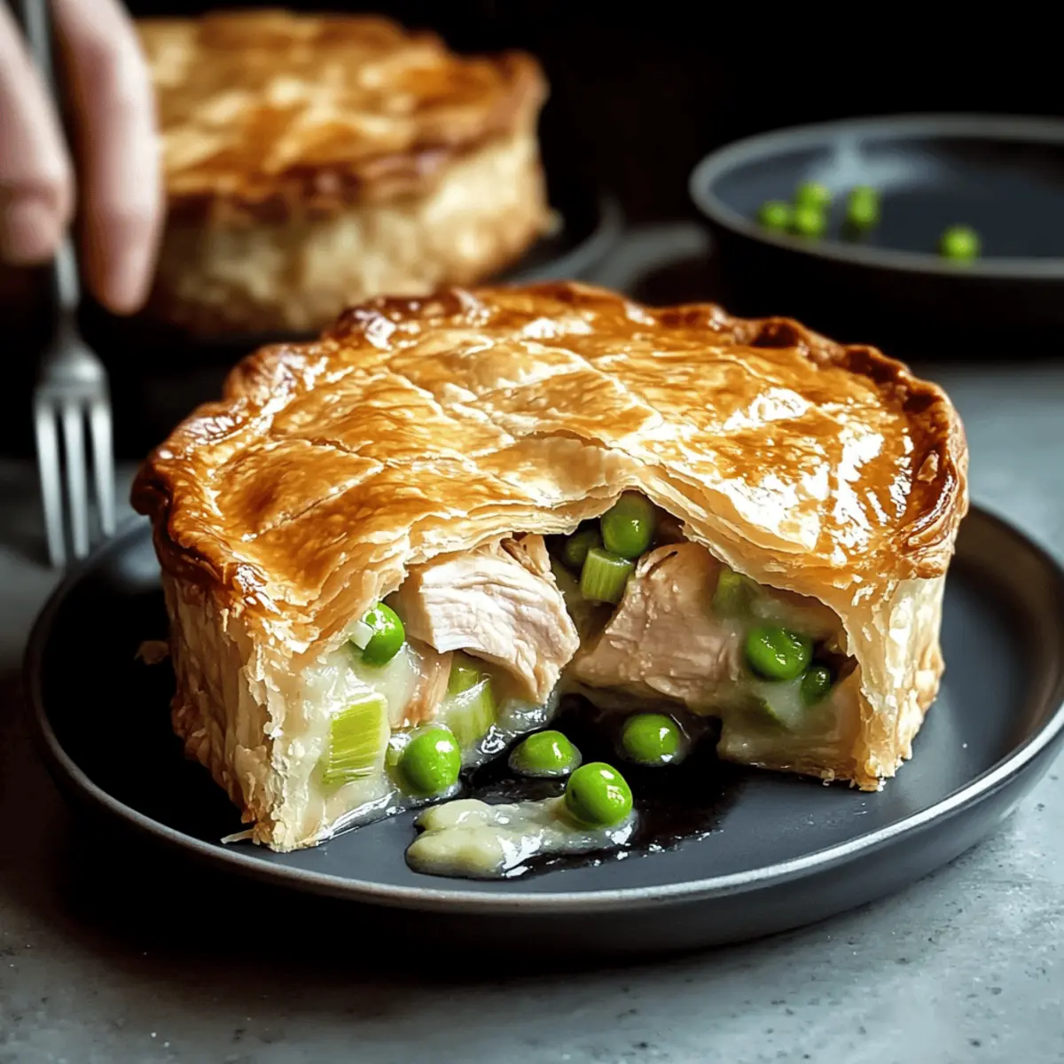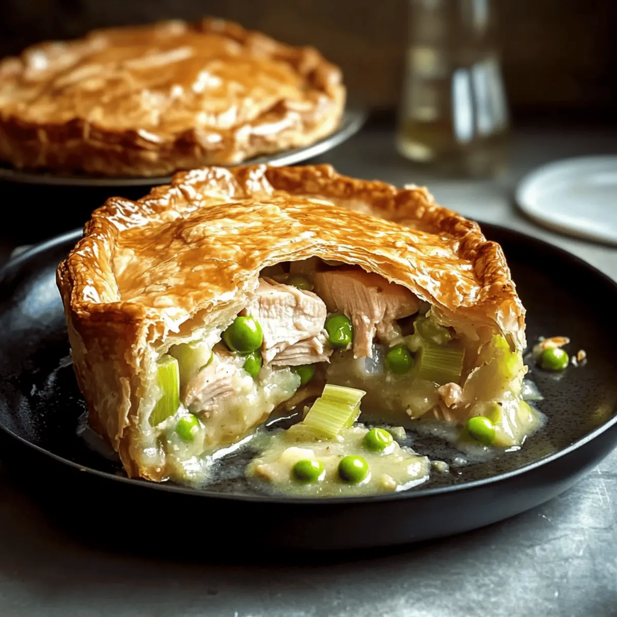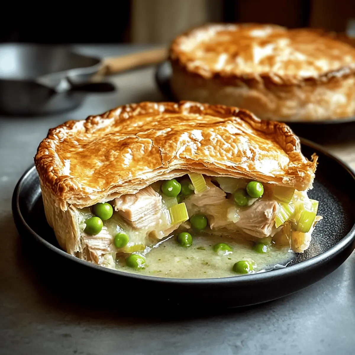 As I savored the last warm slice of Tom Kerridge’s Roast Chicken & Leek Pie, I couldn’t help but feel enveloped in a wave of nostalgia. This dish encapsulates home-cooked comfort, combining tender chicken and sweet leeks beneath a luxuriously flaky crust, which is simply irresistible! The beauty of this recipe lies not just in its gourmet essence but in its ease—using ready-rolled all-butter pastry means you can whip it up quickly, even on a busy weeknight. Plus, it’s perfect for sharing at gatherings, bringing everyone together for a hearty meal. And if you’re looking for a creative twist, feel free to swap out ingredients! I wonder, what seasonal vegetables would you add to make this pie your own? Why Is This Pie So Irresistible? Comforting, homemade goodness: Every bite of Tom Kerridge’s Roast Chicken & Leek Pie transports you to a cozy kitchen, filled with warm aromas and happy memories. Time-saving convenience: Using ready-rolled all-butter pastry lets you create a gourmet dish in no time—ideal for busy evenings! Versatile ingredients: Feel free to swap chicken for turkey or mix in seasonal vegetables like carrots or spinach for extra flair. Crowd-pleasing flavors: This dish combines savory, creamy filling and a flaky crust, making it a surefire hit at gatherings or family meals. Make-ahead friendly: Prepare the filling in advance and enjoy delicious comfort food with minimal effort on busy days. Tom Kerridge’s Roast Chicken & Leek Pie Ingredients For the Filling • Butter – Adds rich flavor and is essential for sautéing. • Smoked Bacon Lardons (150g) – Provides depth and a delightful smokiness to the filling. • Leeks (2) – Contributes sweetness and a tender texture; choose firm, vibrant leeks for best results. • Dry White Wine (100ml) – Enhances the flavor complexity of the filling. • Plain Flour (50g) – Thickens the filling for a luscious consistency. • Whole Milk (250ml) – Offers a rich creaminess to the savory filling. • Chicken Stock (250ml) – Adds depth to the overall flavor, making it savory and satisfying. • Double Cream (2 tbsp) – Intensifies the richness of the filling, making every bite delightful. • Wholegrain Mustard (1.5 tbsp) – Contributes tanginess to balance the flavors perfectly. • Boneless Cooked Roast Chicken (500g) – The star of the dish, providing substance and heartiness. • Frozen Peas (100g) – Adds sweetness and vibrant color, perfect for a comforting dish. • Flat-leaf Parsley, finely chopped (2 tbsp) – Brightens up the dish with freshness for balanced flavors. For the Pastry • Ready-rolled All-butter Puff Pastry (320g) – Offers convenience and creates a delightful flaky crust without the effort. • Egg, lightly beaten (1) – Used to glaze the pastry for a beautiful, golden finish. For Seasoning • Salt and Freshly Ground Black Pepper – Essential for enhancing overall flavor; adjust to taste. Feel inspired to indulge in Tom Kerridge’s Roast Chicken & Leek Pie, and let each bite warm your heart! Step‑by‑Step Instructions for Tom Kerridge’s Roast Chicken & Leek Pie Step 1: Sauté Base Ingredients Begin by melting 20g of butter in a medium frying pan over medium heat. Add the smoked bacon lardons and cook until beautifully caramelized, about 5 minutes. Next, toss in the chopped leeks and sauté for another 5 minutes until they soften and become translucent. Pour in the dry white wine, allowing it to reduce slightly before removing it from the heat to cool. Step 2: Create Roux In a separate saucepan, melt the remaining 30g of butter over low heat. Gradually whisk in 50g of plain flour to create a roux, ensuring it combines smoothly. Slowly add 250ml of whole milk and 250ml of chicken stock while whisking vigorously. Continue stirring for 2–3 minutes until the mixture thickens and becomes creamy, then remove from heat. Step 3: Combine Filling Off the heat, gently fold in 2 tablespoons of double cream and 1.5 tablespoons of wholegrain mustard into the roux mixture. Then, incorporate the cooled chicken and leeks, seasoning with salt and freshly ground black pepper to taste. Stir in 100g of frozen peas and 2 tablespoons of finely chopped flat-leaf parsley for a burst of freshness, ensuring everything is well combined. Step 4: Assemble Pie Preheat your oven to 200°C (Fan 180°C/Gas 6). Spoon the delightful filling into a 28x18cm pie dish, spreading it out evenly. Roll out the ready-rolled all-butter puff pastry to cover the dish, ensuring it overhangs a little. Brush the edges with the beaten egg to help seal, then press firmly to secure. Cut a small steam hole in the center of the pastry to allow steam to escape during baking. Step 5: Chill and Bake Once assembled, chill the pie in the refrigerator for about 30 minutes to firm up the pastry. While it chills, the oven will be preheating. After chilling, place the pie in the oven and bake for approximately 40 minutes or until the pastry turns a glorious golden brown and is flaky. Allow it to cool for 10 minutes before slicing and serving, letting the flavors settle beautifully. How to Store and Freeze Tom Kerridge’s Roast Chicken & Leek Pie Fridge: Store leftovers in an airtight container for up to 3 days. Reheat in the oven at 180°C until warmed through for the best flavor. Freezer: Wrap the pie tightly in plastic wrap before freezing. It can be stored for up to 3 months. Bake from frozen, allowing an extra 10-15 minutes of baking time to ensure it’s heated thoroughly. Assembling in Advance: If you prefer to prepare ahead, you can assemble the pie and refrigerate it for up to 3 days before baking, just be sure to cover it well to avoid drying out. Reheating: When reheating slices, place them in the oven instead of the microwave to maintain that delightful flaky crust! Expert Tips for Tom Kerridge’s Roast Chicken & Leek Pie Ingredient Quality: Choose fresh, organic ingredients whenever possible. This enhances the flavors and over