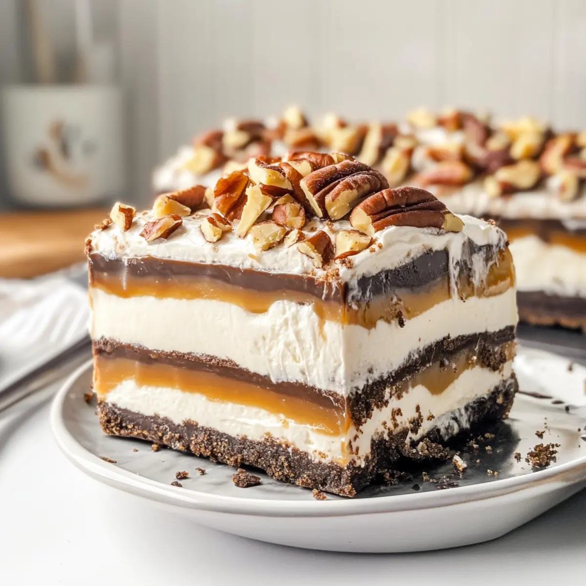 Decadent Layers: Experience the indulgence of creamy chocolate, rich caramel, and crunchy pecans all in one bite!
