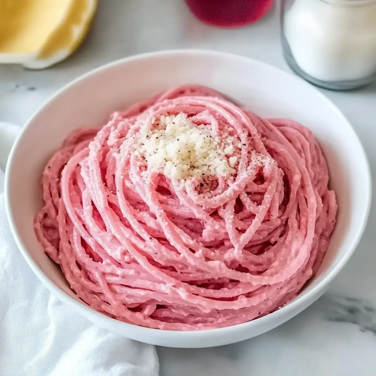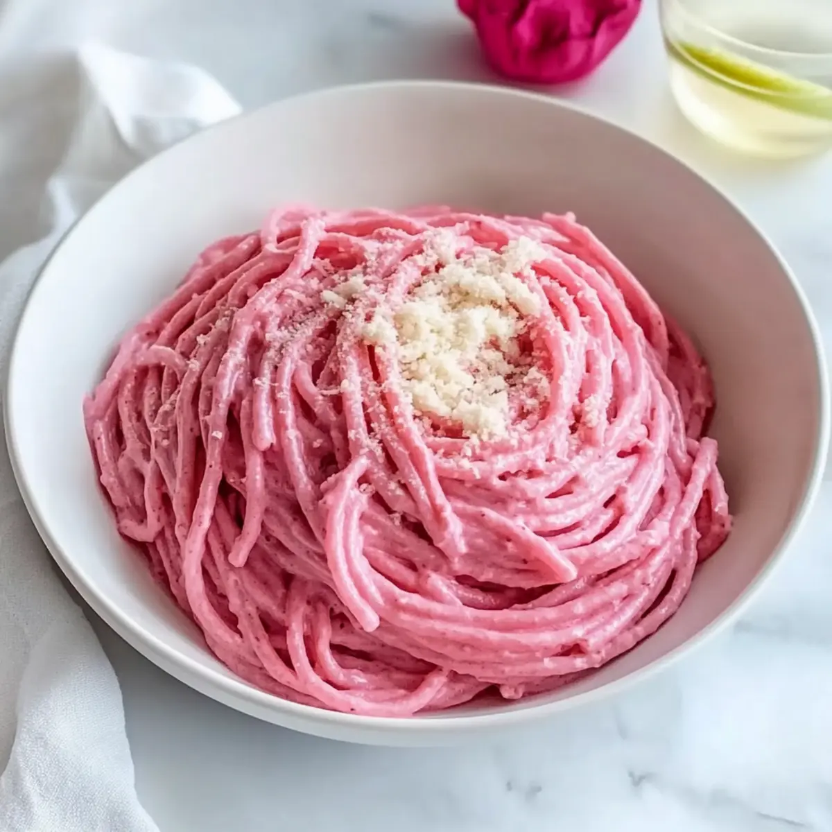 As I stood at my kitchen counter, the vibrant red of roasted beetroot caught my eye, instantly lifting my spirits. There’s something magical about transforming simple ingredients into a dish that dazzles both the eyes and the palate—enter my Healthy Vegan Pink Pasta! This recipe is a game-changer; it’s not only quick and easy to whip up, but it’s also a plant-based delight that’ll make your weeknight dinners feel special. Packed with creamy, cashew-based goodness and the natural sweetness of beets, it’s a comforting option everyone will rave about. Whether you’re a seasoned cook or just starting your culinary adventure, you’ll love how effortlessly this dish adapts to your tastes and dietary preferences. Ready to indulge in a bowl of vibrant pink pasta that’s as delicious as it is beautiful? Let’s dive into this wholesome joy that’s sure to impress! Why is Vegan Pink Pasta So Irresistible? Vibrant Color: The stunning pink hue of this pasta makes it a feast for the eyes and an excellent centerpiece for any dinner table. Creamy Texture: The smooth, cashew-based sauce brings a luxurious creaminess without any dairy, making it a perfect choice for those craving comfort food. Quick to Prepare: With a cooking time of just under an hour, this dish is ideal for busy weeknights when you want something delicious without the fuss. Versatile Ingredients: You can easily adjust the recipe by swapping in your favorite veggies or pasta type, just like you would with a delightful Garlic Parmesan Pasta. Crowd-Pleaser: Whether you’re cooking for family or hosting friends, this plant-based delight will impress even non-vegans, earning rave reviews every time! Make-Ahead Friendly: Prepare the sauce in advance, just like with the tasty Marry Chicken Pasta, and enjoy the convenience of a quick reheat for a last-minute meal. Vegan Pink Pasta Ingredients For the Sauce • Raw Cashews – A creamy base; soak for at least 4 hours or do a quick soak in hot water for 30 minutes before blending for the best texture. • Beetroot – The star ingredient that brings sweetness and vibrant color; roast in foil for optimal flavor and hue. • Shallots – Add a lovely depth of flavor; sauté them until translucent for the best results. • Garlic – Enhances the sauce’s overall deliciousness; cook briefly until fragrant. • Sugar – Balances the earthiness of the beetroot; ensure it dissolves fully for a smooth sauce. For the Pasta • Pasta – The carbohydrate foundation of this dish; cook until al dente, making sure to reserve a cup of pasta water for the sauce. For the Seasoning • Spices (black pepper, basil, oregano, red pepper) – A mix of flavors to elevate the sauce; season to taste for maximum flavor impact. With the vibrant ingredients set, you’re ready to create a wonderful Vegan Pink Pasta that will uplift your home-cooked meals! Step‑by‑Step Instructions for Vegan Pink Pasta Step 1: Roast the Beetroot Preheat your oven to 425°F (220°C). Carefully wrap the beetroot in foil, drizzling with a touch of olive oil and a sprinkle of salt. Place it on a baking sheet and roast for 50-60 minutes, or until a fork easily pierces through. This will bring out its natural sweetness and vibrant color, setting the perfect base for your Vegan Pink Pasta. Step 2: Soak the Cashews While the beetroot is roasting, soak the raw cashews in hot water for about 30 minutes, or if you prefer, you can soak them for 4 hours in cooler water. After soaking, drain and set them aside. This step ensures your cashews will blend smoothly into a creamy sauce that makes the Vegan Pink Pasta truly delicious. Step 3: Blend the Sauce Once the beetroot is ready and has cooled slightly, peel it and add to a blender along with the soaked cashews. Sprinkle in a pinch of salt and blend until the mixture is completely smooth and creamy. This vibrant blend serves as the rich sauce for your Vegan Pink Pasta. Set it aside while you prepare the other ingredients. Step 4: Cook the Pasta Bring a large pot of salted water to a boil and add your favorite pasta. Cook according to the package instructions until al dente, which typically takes around 8-10 minutes. Remember to reserve about 1 cup of the pasta water before draining. This starchy water will help enhance the sauce’s consistency when mixed together in your Vegan Pink Pasta. Step 5: Sauté Shallots and Garlic In a large skillet, melt a generous tablespoon of butter over medium heat. Add the chopped shallots and a few cracks of black pepper, sautéing for about 5 minutes until the shallots become translucent. Then, stir in minced garlic and continue to cook for an additional minute until fragrant. This aromatic base will elevate the flavor of your Vegan Pink Pasta. Step 6: Combine the Sauce Ingredients Pour in the creamy cashew and beet mixture into the skillet with the sautéed shallots and garlic. Add in the reserved pasta water, sugar, and spices such as basil, oregano, and a dash of red pepper for heat. Stir well and heat through for about 3-4 minutes, allowing the flavors to meld together beautifully in your Vegan Pink Pasta. Step 7: Mix in the Pasta Once your sauce is heated, gently fold the cooked pasta into the skillet, ensuring each strand is coated with the luscious sauce. If the sauce is too thick, add more reserved pasta water gradually until you reach your desired consistency. This step is crucial for achieving the perfect creamy texture in your Vegan Pink Pasta. Step 8: Serve and Garnish Remove from heat, and plate your Vegan Pink Pasta while it’s warm. Consider garnishing with fresh herbs, a drizzle of olive oil, or a sprinkle of nutritional yeast for a cheesy flavor. This vibrant dish is now ready to impress your family or friends, making any meal feel special! Expert Tips for Vegan Pink Pasta • Soak Cashews: Ensure cashews are soaked long enough for blending; this creates a truly creamy texture in your vegan pink pasta. • Roast for Flavor: Roa