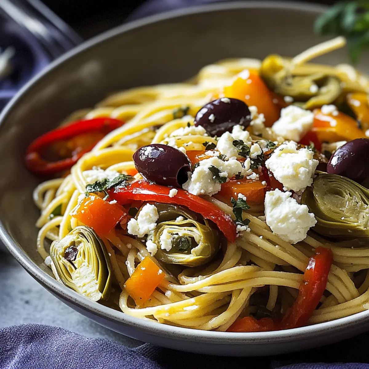 Flavor-Packed Vegetarian Mediterranean Pasta with Feta and Artichokes