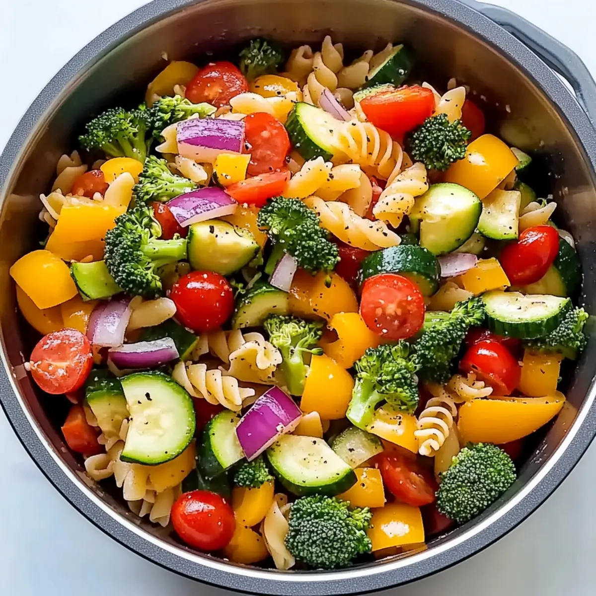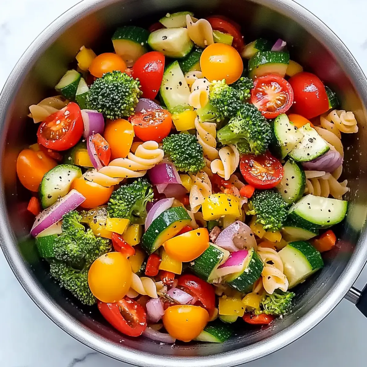 As I rummaged through my fridge one busy afternoon, a rainbow of veggies caught my eye, and the idea for a Healthy Veggie Pasta Salad sparked. This vibrant meal prep option is not only a feast for the eyes but also a fast favorite for my weeknight dinners. With every crunchy bite, this salad is an irresistible choice for anyone looking to ditch fast food and embrace healthy eating without sacrificing flavor. Plus, it’s perfect for meal prepping; whip it up in just a few minutes and enjoy fresh, satisfying lunches for days. Curious to discover how to create your own delicious twist on this classic dish? Let’s dive in! Why is Veggie Pasta Salad a Game Changer? Quick to Prepare: This salad comes together in just minutes, making it ideal for busy weeknights or last-minute gatherings. Endless Variations: With countless pasta shapes and vegetable options, you can tailor this recipe to your tastes or what you have on hand, ensuring it never gets boring. Meal Prep Friendly: Make a big batch ahead of time and enjoy healthy lunches throughout the week without any fuss. Fresh and Flavorful: Each crunchy bite provides a burst of nutrition and taste, proving that healthy doesn’t have to mean boring. Gluten-Free Options: Substitute chickpea or lentil pasta for a protein-packed alternative, catering to various dietary needs without sacrificing quality. Dive into this colorful dish and discover even more delightful recipes like Taco Pasta Bake or Mediterranean Chickpea Salad for endless meal inspiration! Veggie Pasta Salad Ingredients • Perfect for customizing your salad! For the Pasta Pasta (Farfalle, rotini, fusilli, penne) – Choose whole wheat or legume-based options for added fiber; cook al dente to keep the texture firm. For the Vegetables Zucchini – Adds crunch and moisture; can easily be substituted for yellow squash. Broccoli Florets – Packed with nutrition and great for texture; green beans or bell peppers also work well. Bell Peppers (varied colors) – Provide sweetness and vibrant color; swap for cucumber or snap peas if you prefer. Cherry Tomatoes – Offer freshness and visual appeal; add them just before serving to maintain their firmness. Red Onion – Adds a zesty bite; green onions can be used for a milder flavor. Garlic – Deepens flavor; omit for a milder salad. For the Dressing Olive Oil – Acts as the base for your dressing; a neutral oil is a good substitute if needed. Vinaigrette/Dressing – Use store-bought or homemade; citrus-based vinaigrettes brighten up the flavors. Parmesan Cheese (optional) – Adds a savory touch; for a vegan option, omit or use nutritional yeast instead. Customize your Veggie Pasta Salad with this base, and let your creativity shine! Step‑by‑Step Instructions for Healthy Veggie Pasta Salad Step 1: Boil the Pasta Fill a large stockpot with salted water and bring it to a rolling boil over high heat. Carefully add your choice of pasta, such as farfalle or rotini, and cook according to package instructions until al dente, usually around 8-10 minutes. You’ll know it’s ready when it is firm to the bite but not hard in the center. Step 2: Drain and Rinse Once your pasta reaches the desired doneness, use a colander to drain it thoroughly. Immediately rinse the pasta under cold water for about 20-30 seconds, ensuring to cool it down and halt the cooking process. This step is essential to keep your Healthy Veggie Pasta Salad from becoming mushy. Step 3: Sauté the Vegetables In a large sauté pan, heat 2 tablespoons of olive oil over medium-high heat until shimmering. Add the zucchini and broccoli florets, sautéing them for 3 minutes until they start to soften. Look for a vibrant color and a slight tenderness but ensure they retain some crunch for a delightful texture in your pasta salad. Step 4: Add More Veggies To the sautéed zucchini and broccoli, toss in the colorful bell peppers, halved cherry tomatoes, minced garlic, and a sprinkle of salt and pepper. Continue cooking for another 4-5 minutes, stirring occasionally, until all vegetables are tender and aromatic but still crisp. Their fresh flavors will enhance the overall taste of your Healthy Veggie Pasta Salad. Step 5: Combine Pasta and Vegetables In a large mixing bowl, combine your cooled pasta with the sautéed vegetable mixture. Drizzle everything with your favorite vinaigrette or dressing, gently tossing to ensure the pasta is well-coated and the flavors meld together beautifully. This step is crucial for achieving that delicious taste throughout the salad. Step 6: Finish with Parmesan If desired, sprinkle freshly grated Parmesan cheese over the top of the salad for an added savory layer. Gently toss once more to incorporate the cheese. You can serve this Healthy Veggie Pasta Salad immediately for a warm dish or let it chill for an hour to deepen the flavors, making it perfect for meal prep. Make Ahead Options These Healthy Veggie Pasta Salad recipes are perfect for meal prep enthusiasts! You can cook the pasta up to 24 hours in advance; simply rinse it under cold water, toss it in a bit of olive oil to prevent sticking, and refrigerate. The vegetables can also be sautéed ahead of time and stored in an airtight container for up to 3 days. When you’re ready to enjoy the salad, combine the chilled pasta and vegetables, drizzle with your vinaigrette, and mix until well coated. By prepping ahead, you’ll save precious time on busy weeknights while still enjoying a vibrant, fresh meal that’s just as delicious as when it was made! Veggie Pasta Salad Variations Feel free to take this delicious Veggie Pasta Salad and make it your own with these fun twists! Chickpea Pasta: Swap traditional pasta with chickpea pasta for a gluten-free, high-protein alternative. This change brings not just nutrition, but also a nutty flavor that elevates your dish. Zucchini Noodles: Replace pasta altogether with zucchini noodles for a refreshing low-carb option. Simply spiralize your zucchini for a 