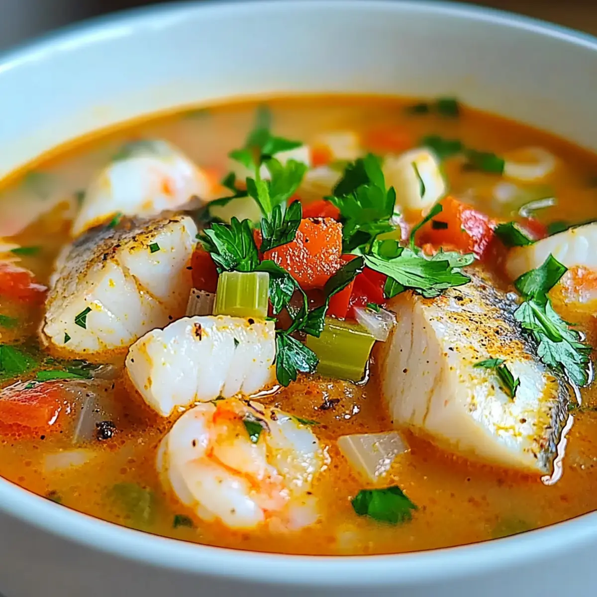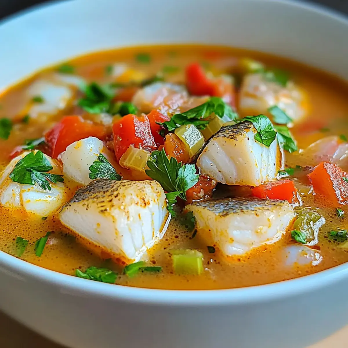 Flavor Explosion: Zesty Cajun Fish Soup packs a punch with its vibrant blend of spices and fresh ingredients that capture the essence of Louisiana cuisine.